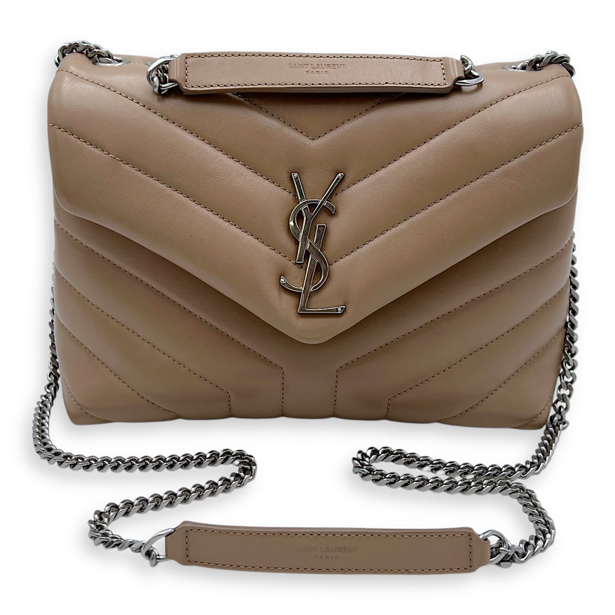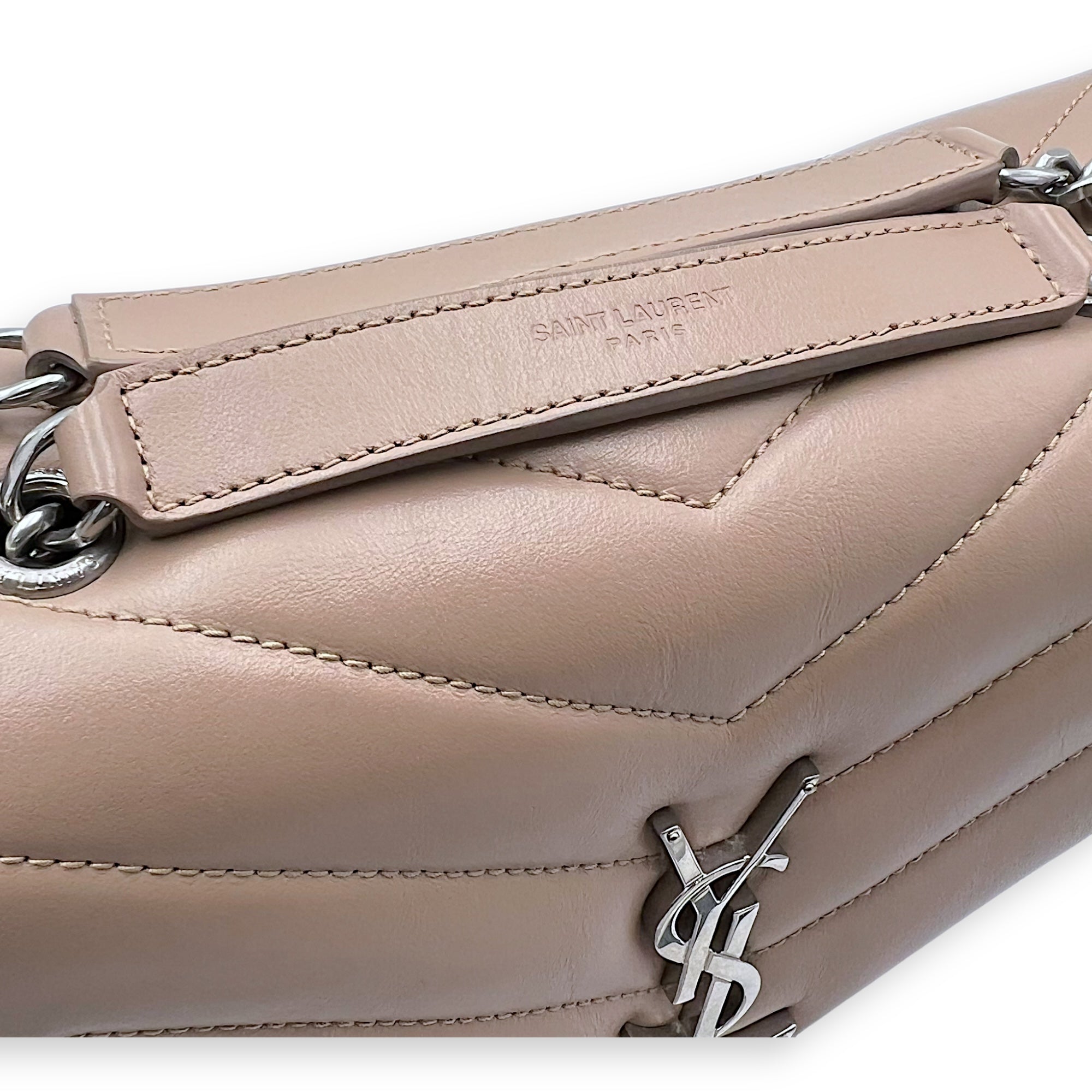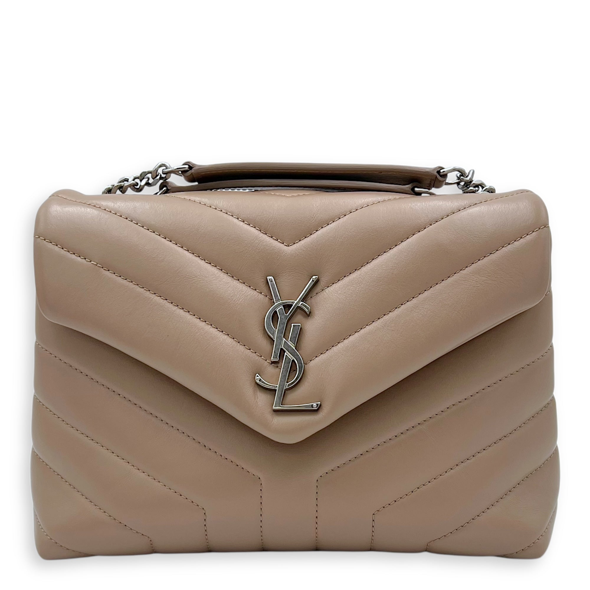Bags Saint Laurent Loulou Small Beige Shoulder Bag in Calfskin, Silver hardware Very Good Condition Beige Shoulder Bag Women Lady Girl