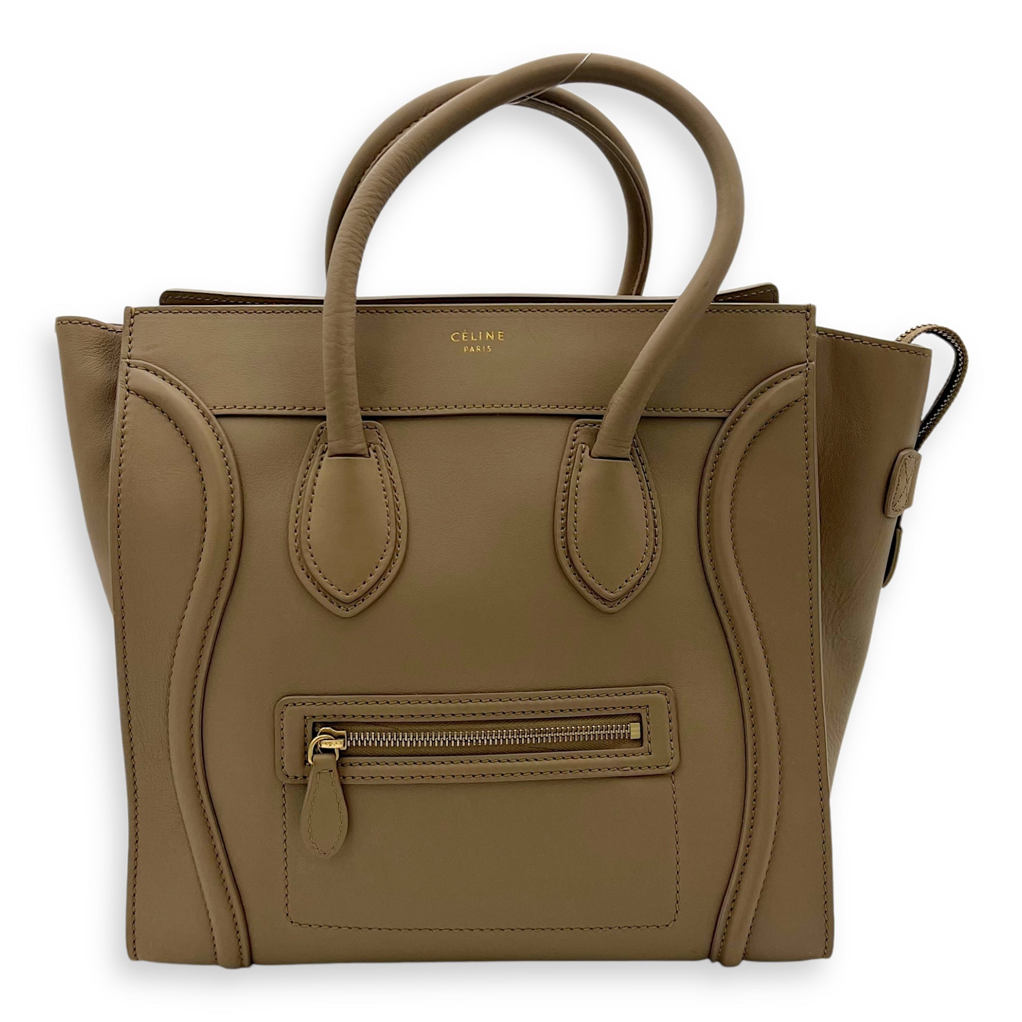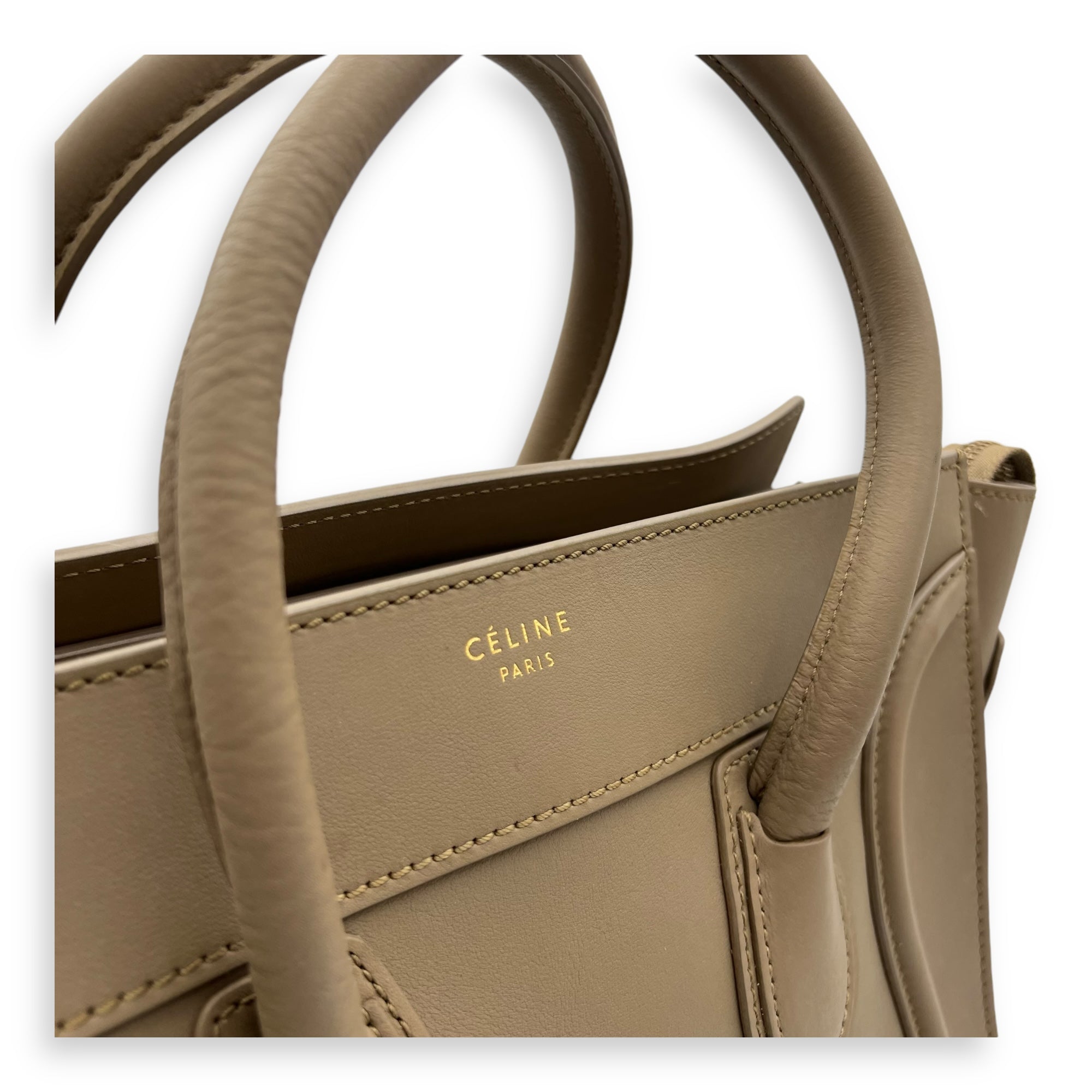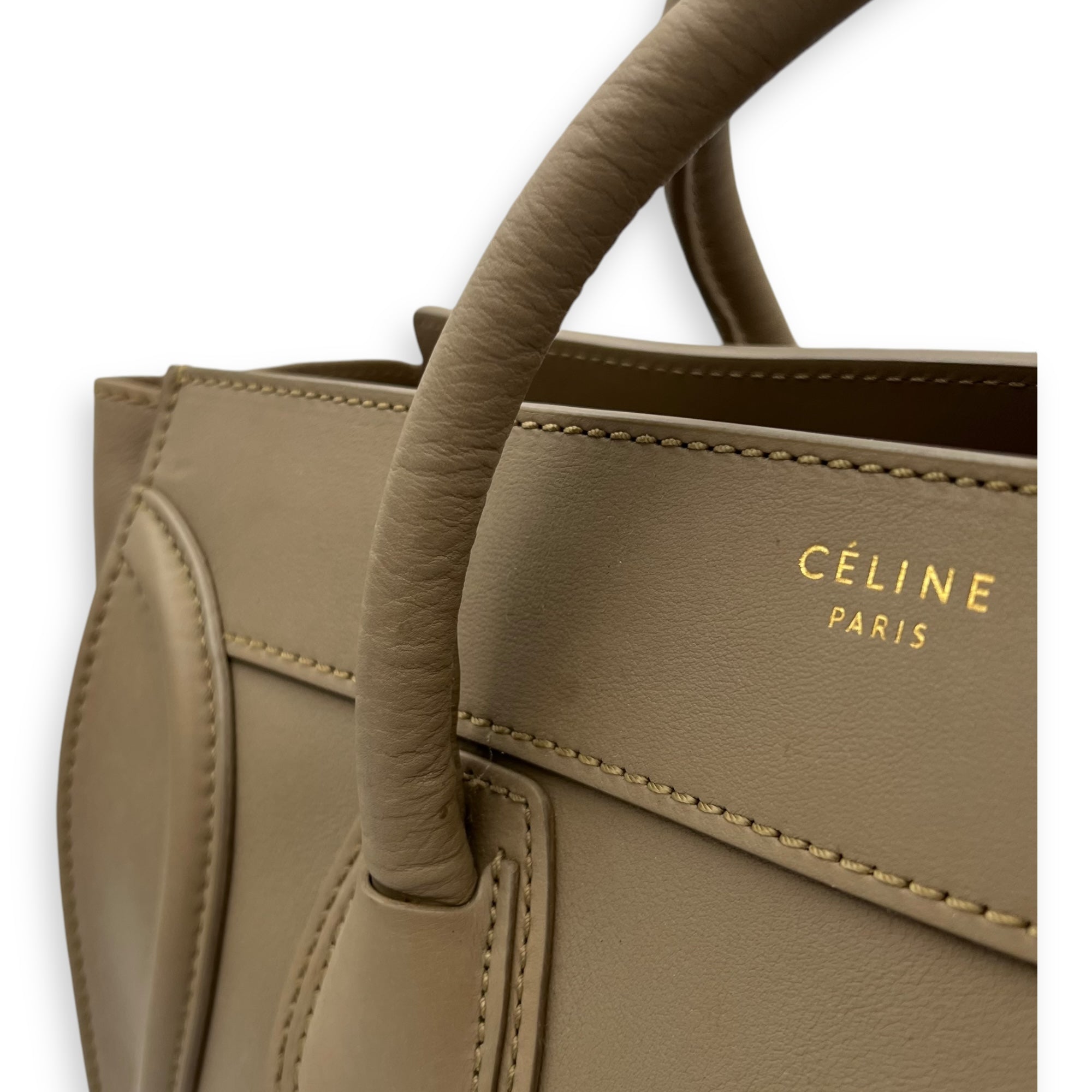 Bags Celine Luggage Top Handle Bag Mini Beige in Calfskin, Gold hardware Good Condition Beige Top Handle Bag Women Lady Girl
