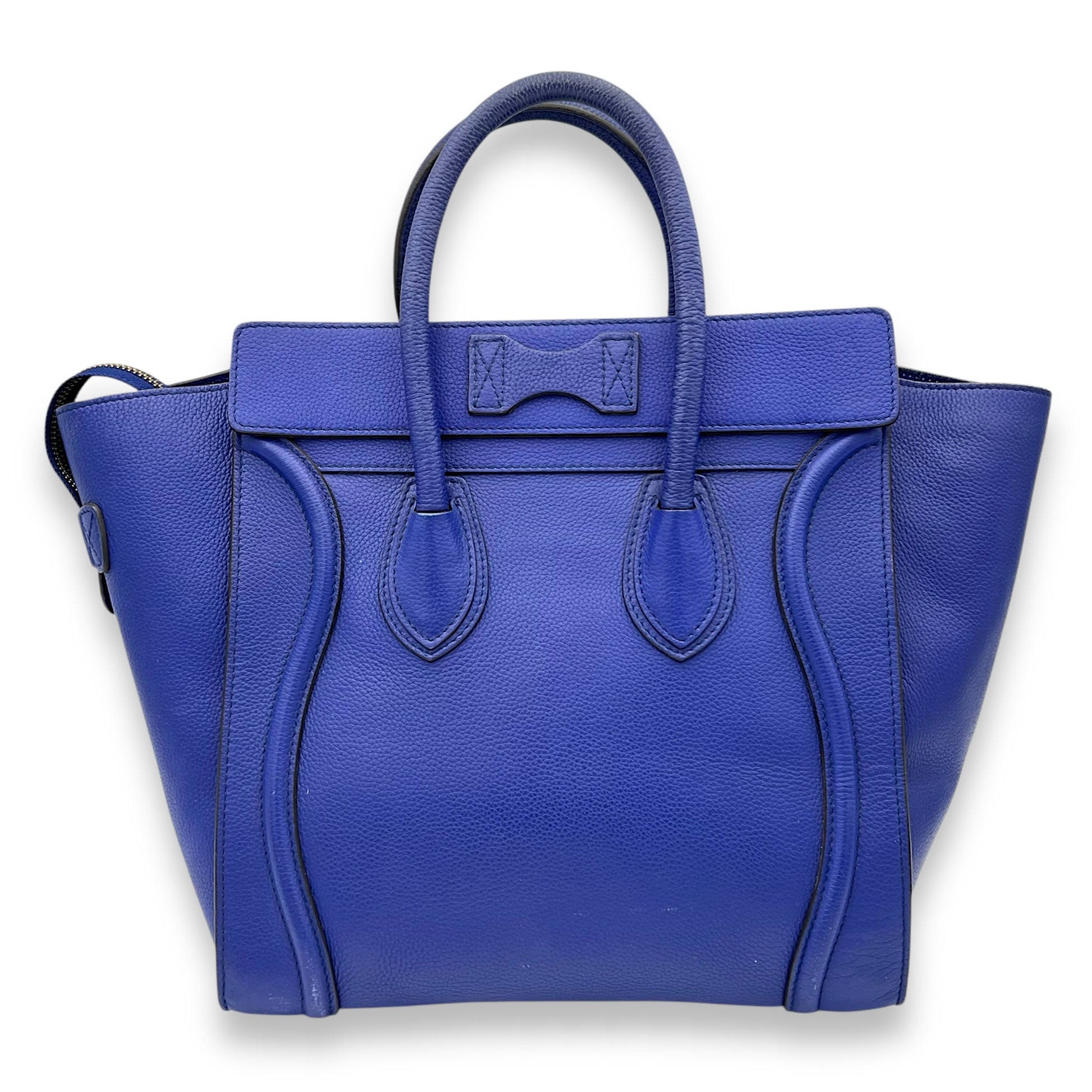 Bags Celine Luggage Top Handle Bag Mini Blue in Calfskin, Gold hardware Good Condition Blue Top Handle Bag Women Lady Girl