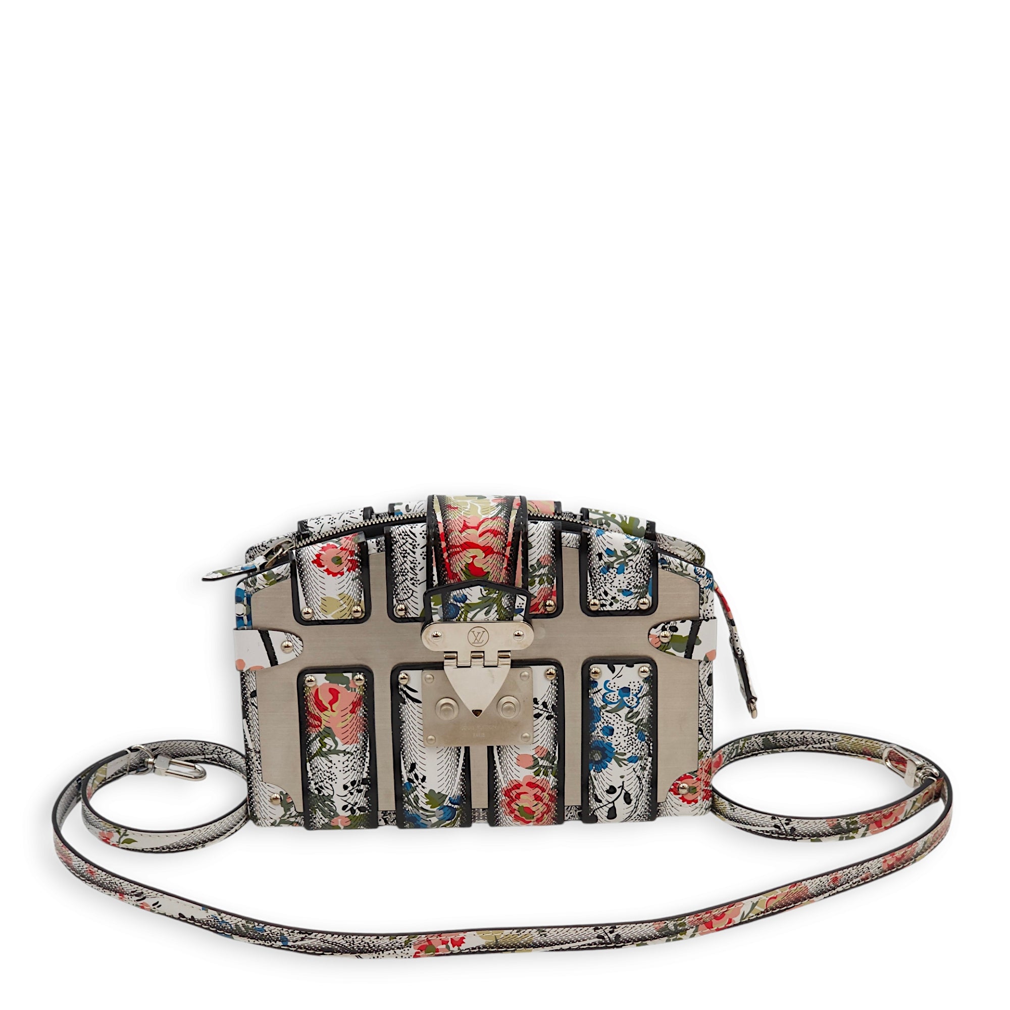 Louis Vuitton LV Petite Malle (SS 2018 Collection) Floral Print Clutch in Calf/Metal, Palladium hardware Bags Clutch Floral Print Multi-colour Good Condition
