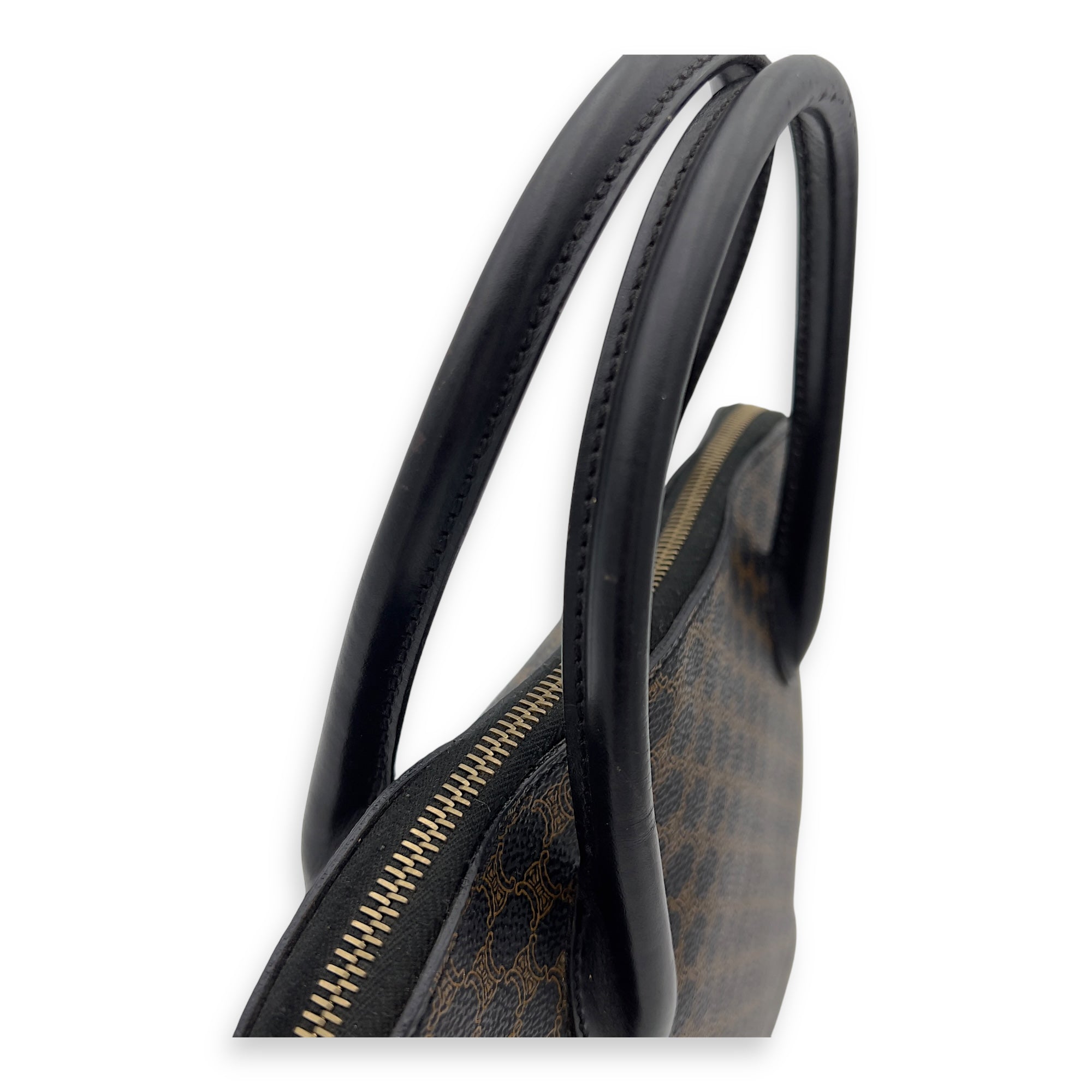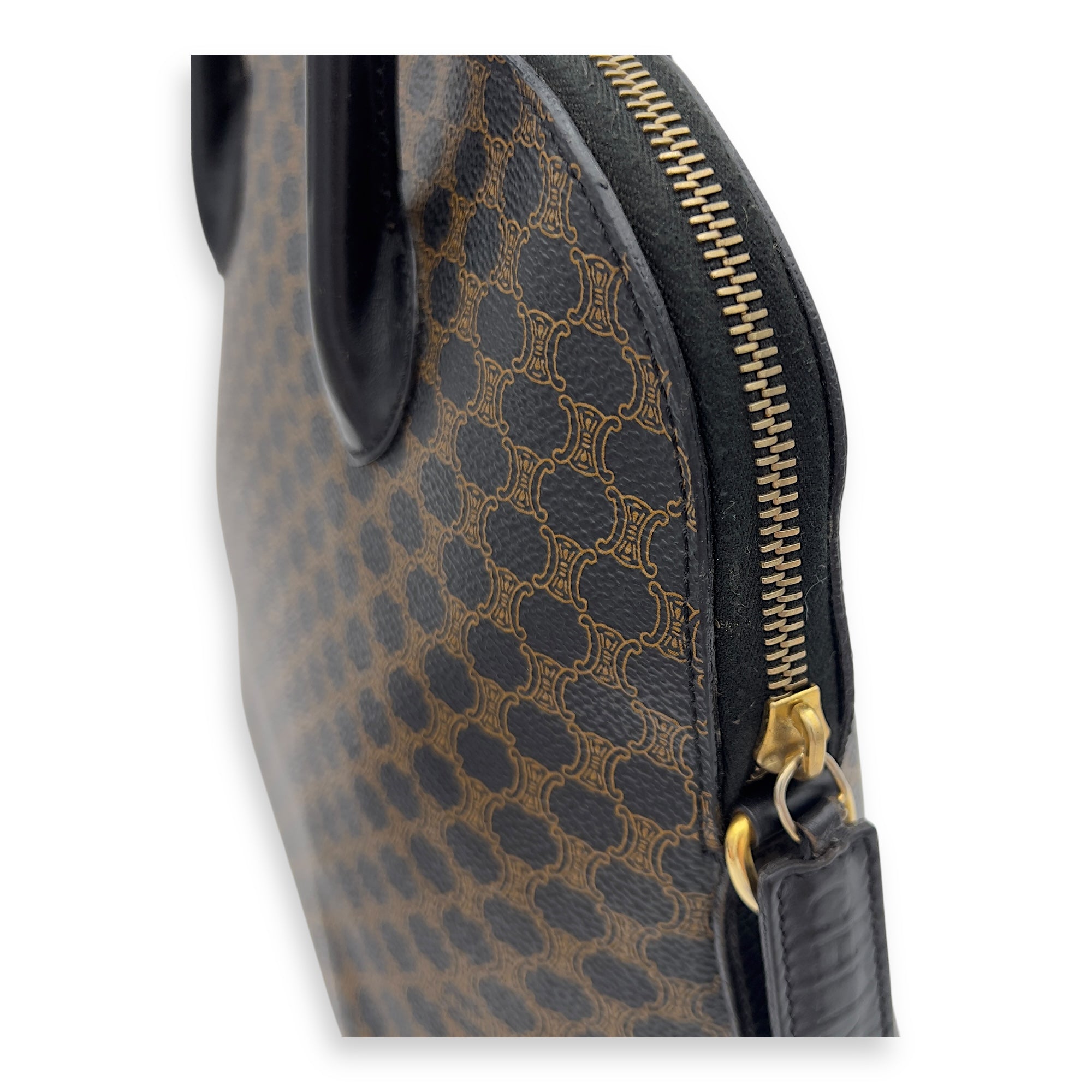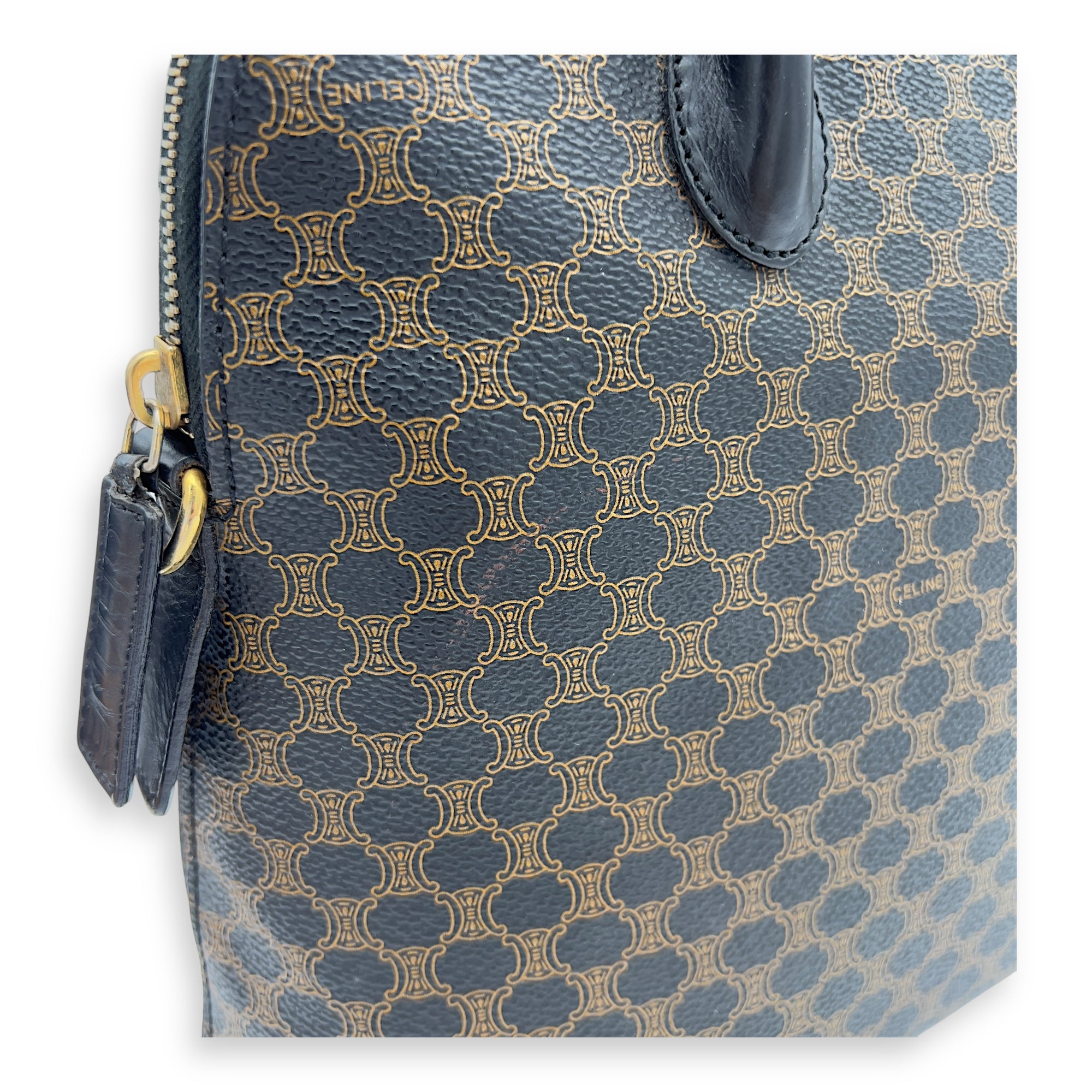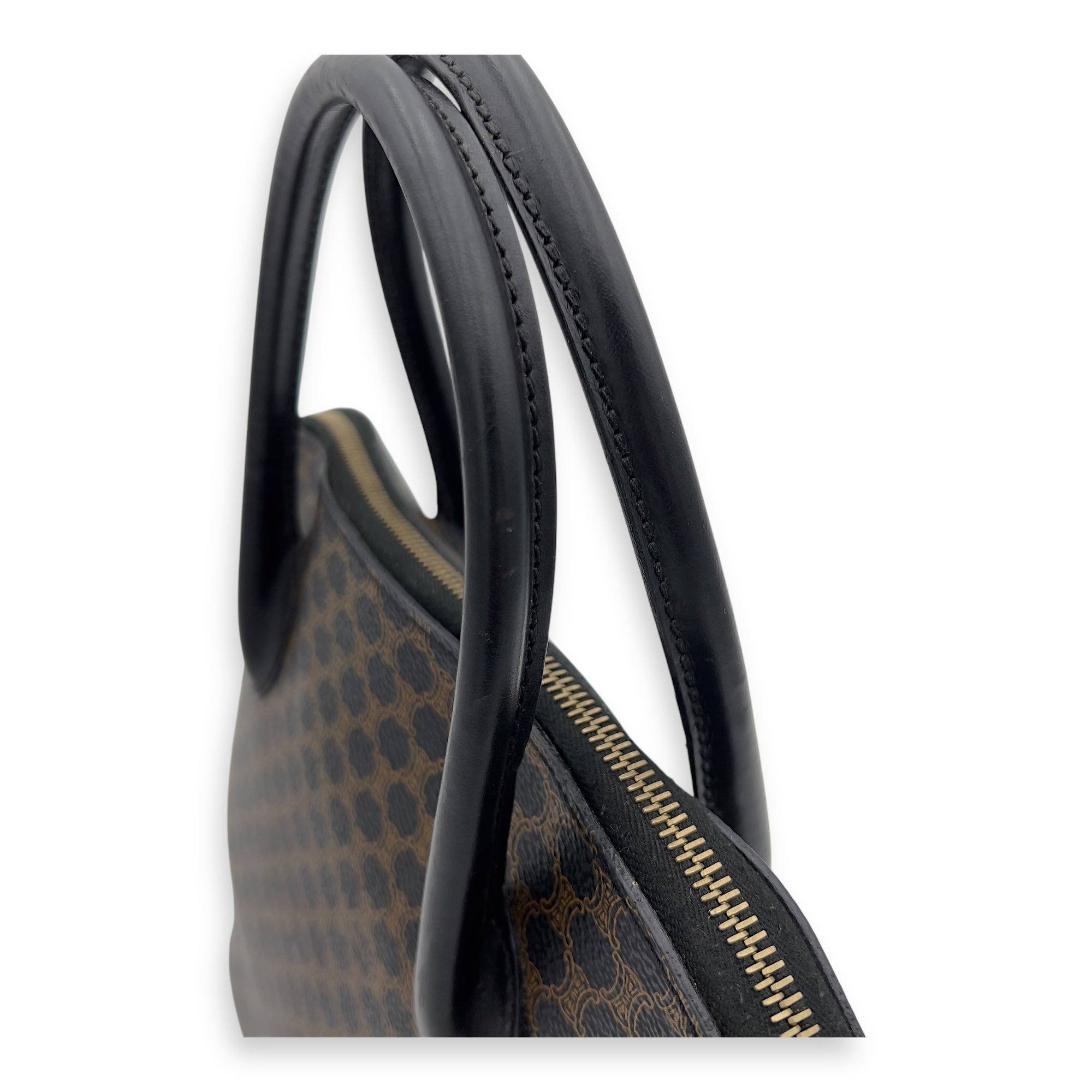 Bags Celine Macadam Top Handle Bag Blue in Coated Canvas, Gold hardware Good Condition Blue Top Handle Bag Women Lady Girl