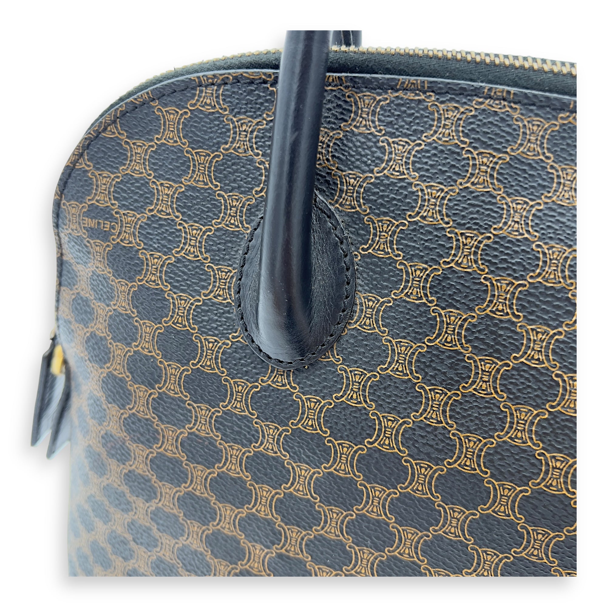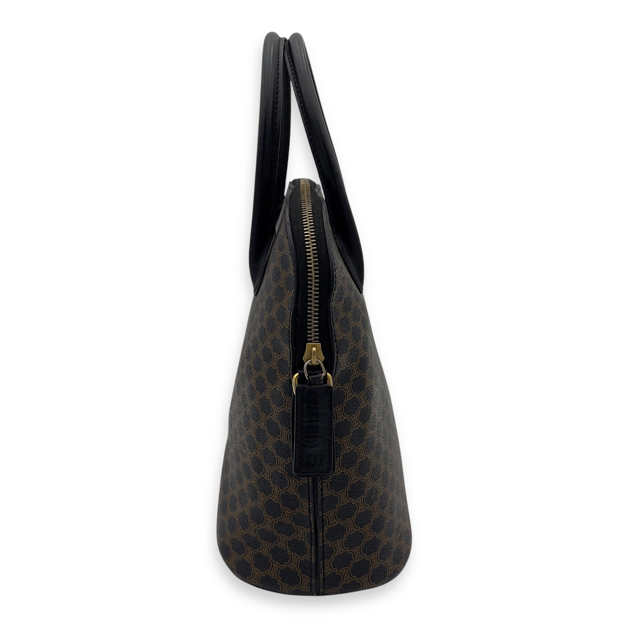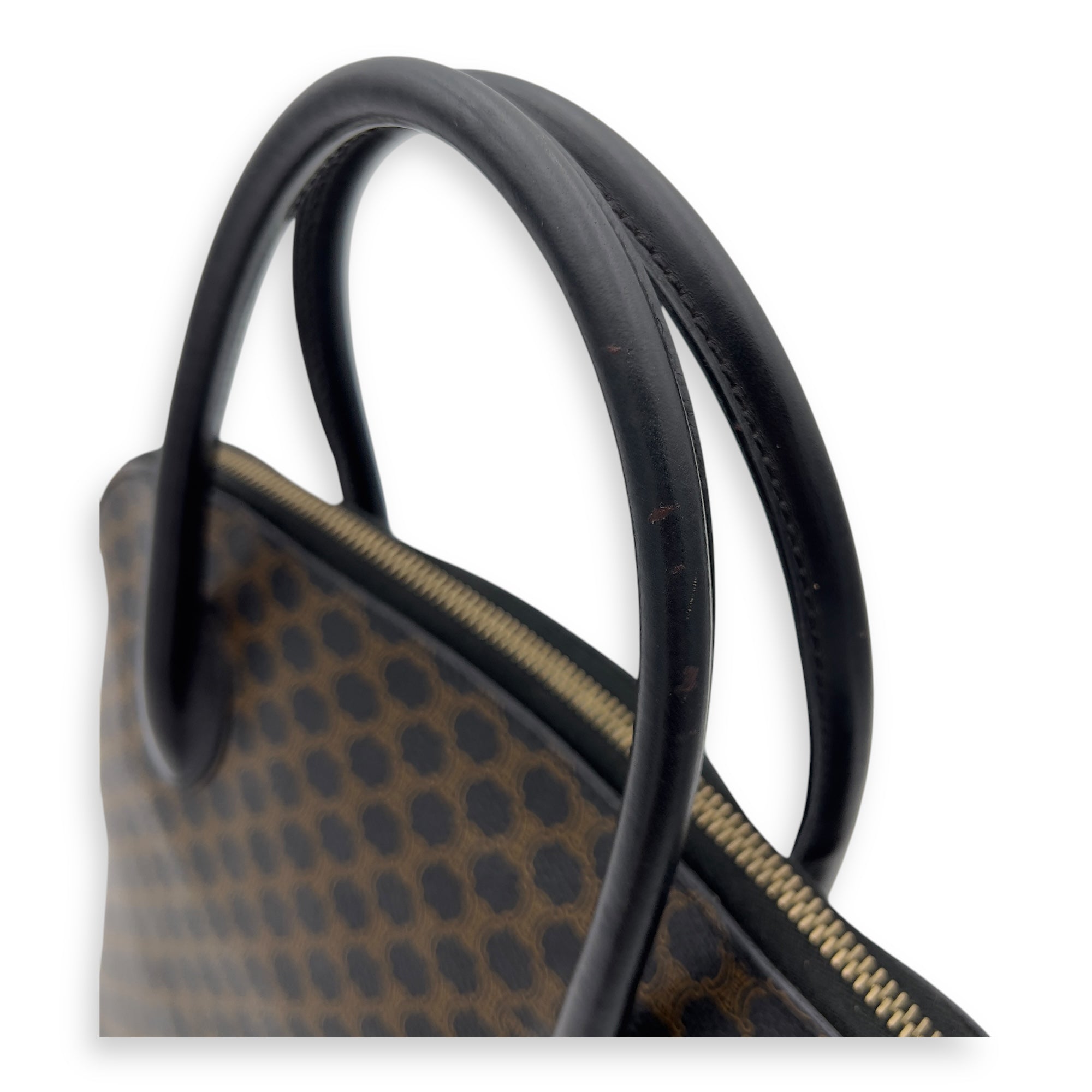 Bags Celine Macadam Top Handle Bag Blue in Coated Canvas, Gold hardware Good Condition Blue Top Handle Bag Women Lady Girl