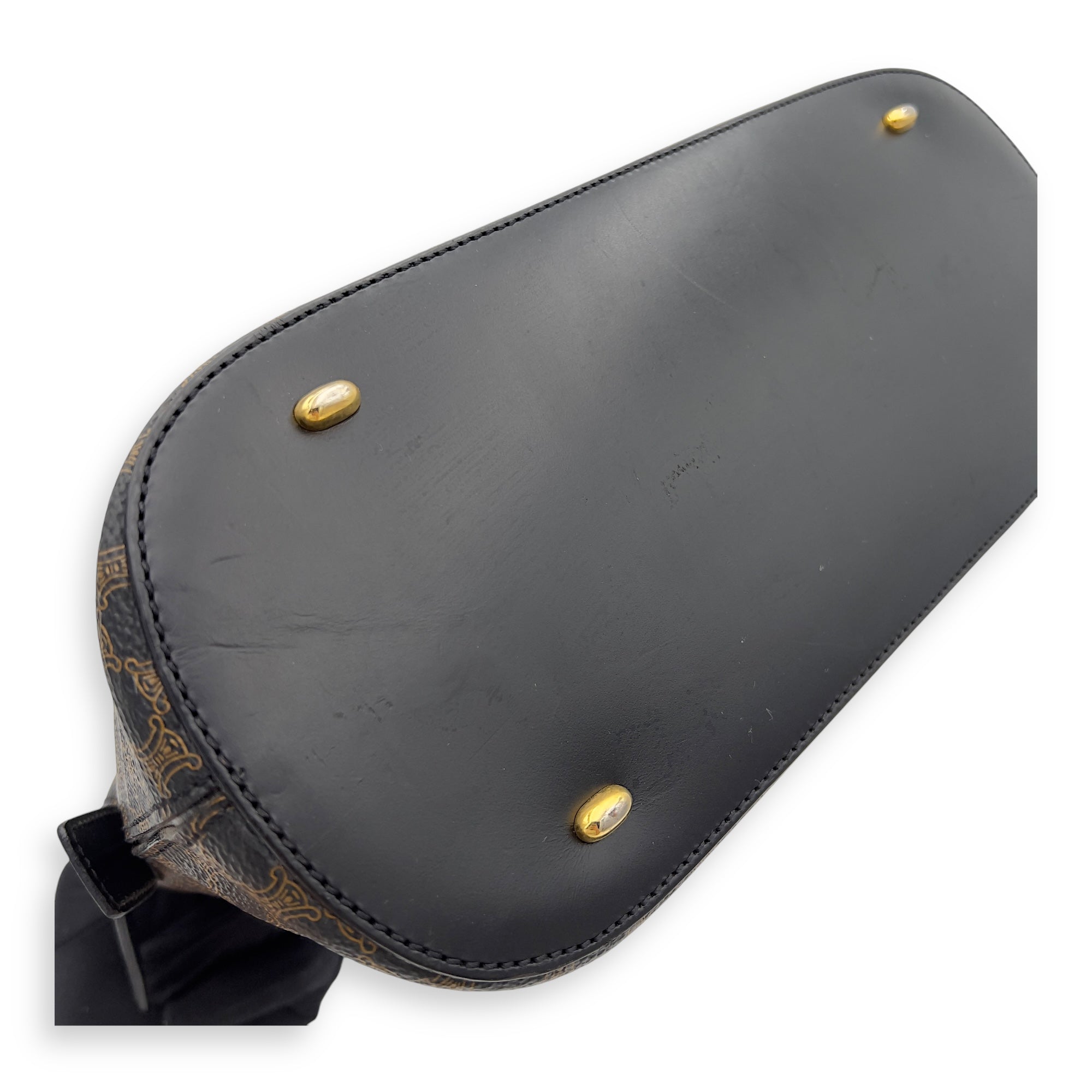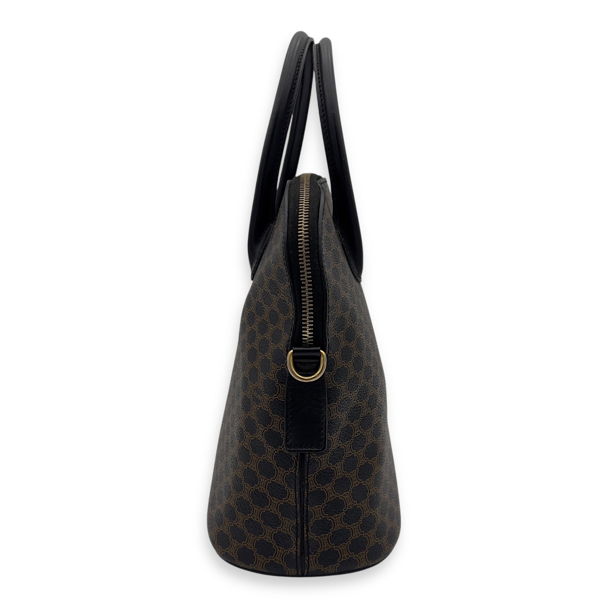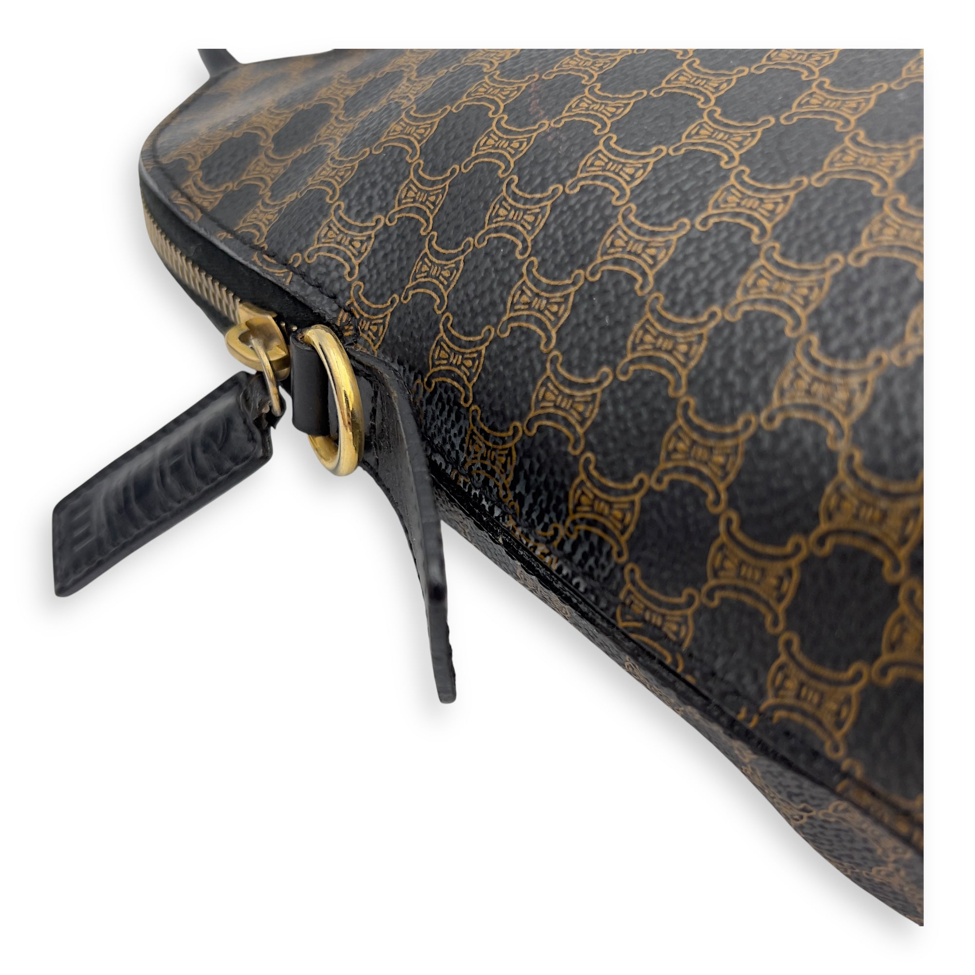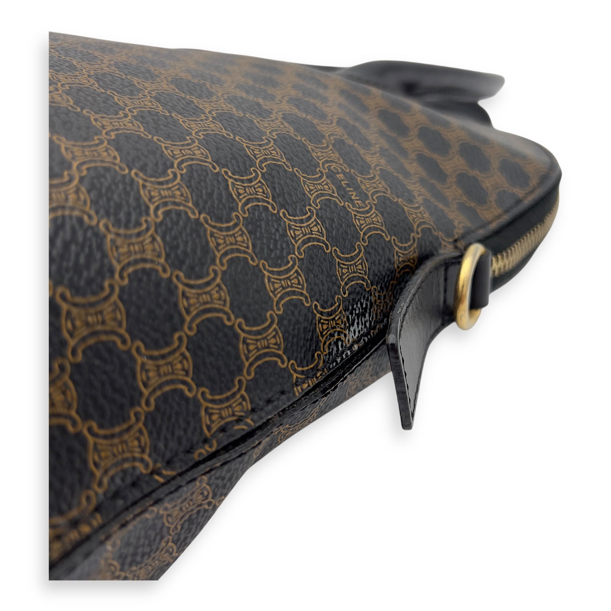 Bags Celine Macadam Top Handle Bag Blue in Coated Canvas, Gold hardware Good Condition Blue Top Handle Bag Women Lady Girl