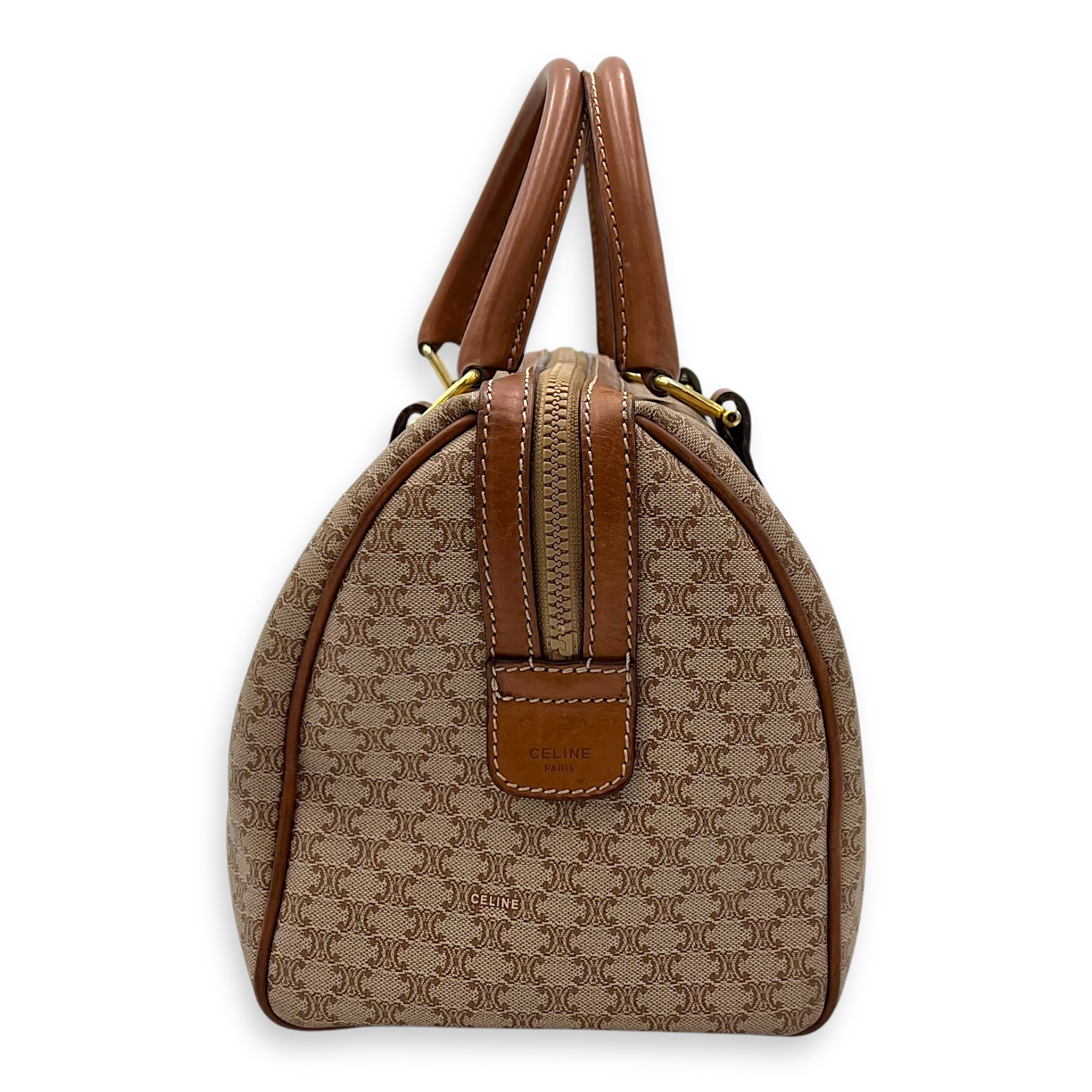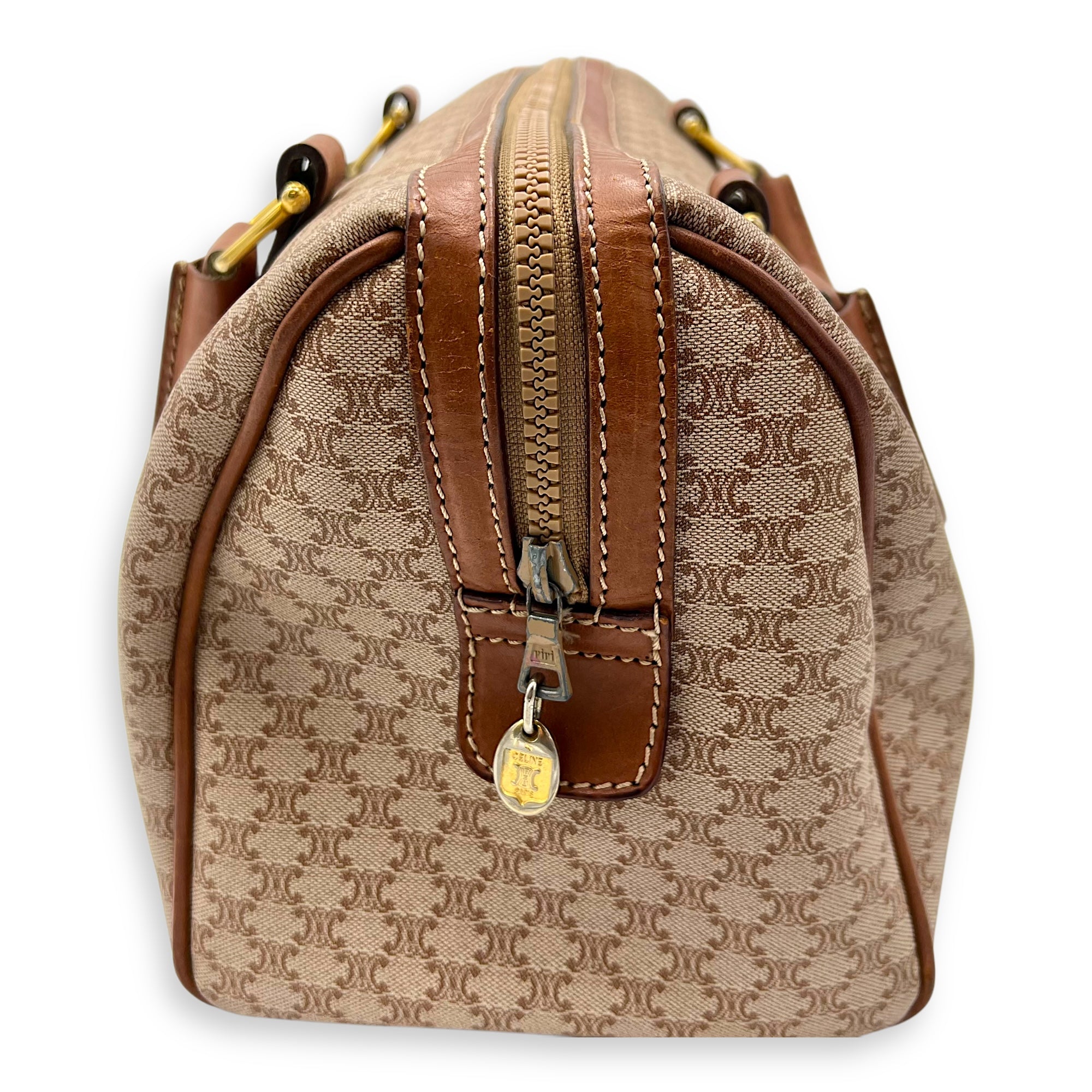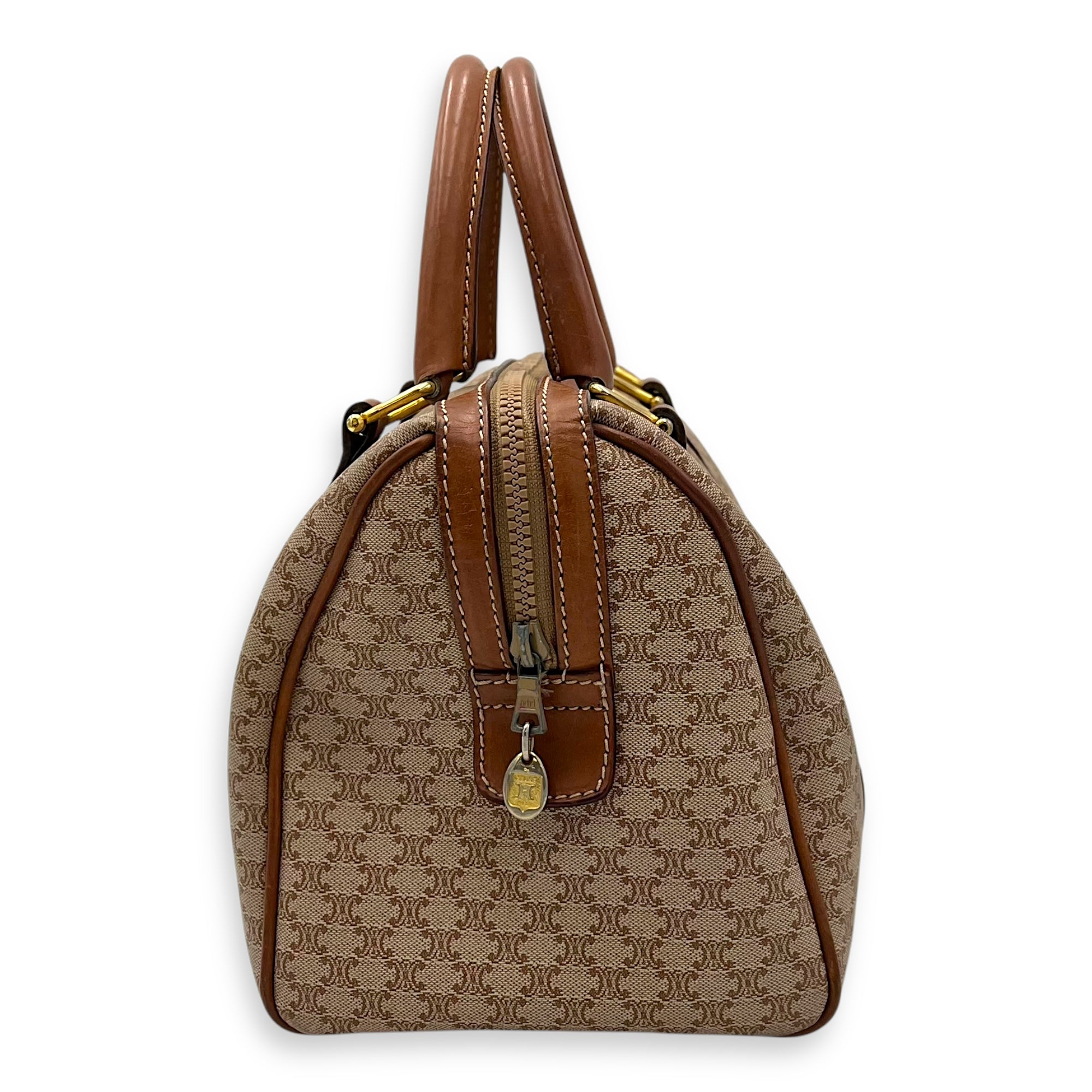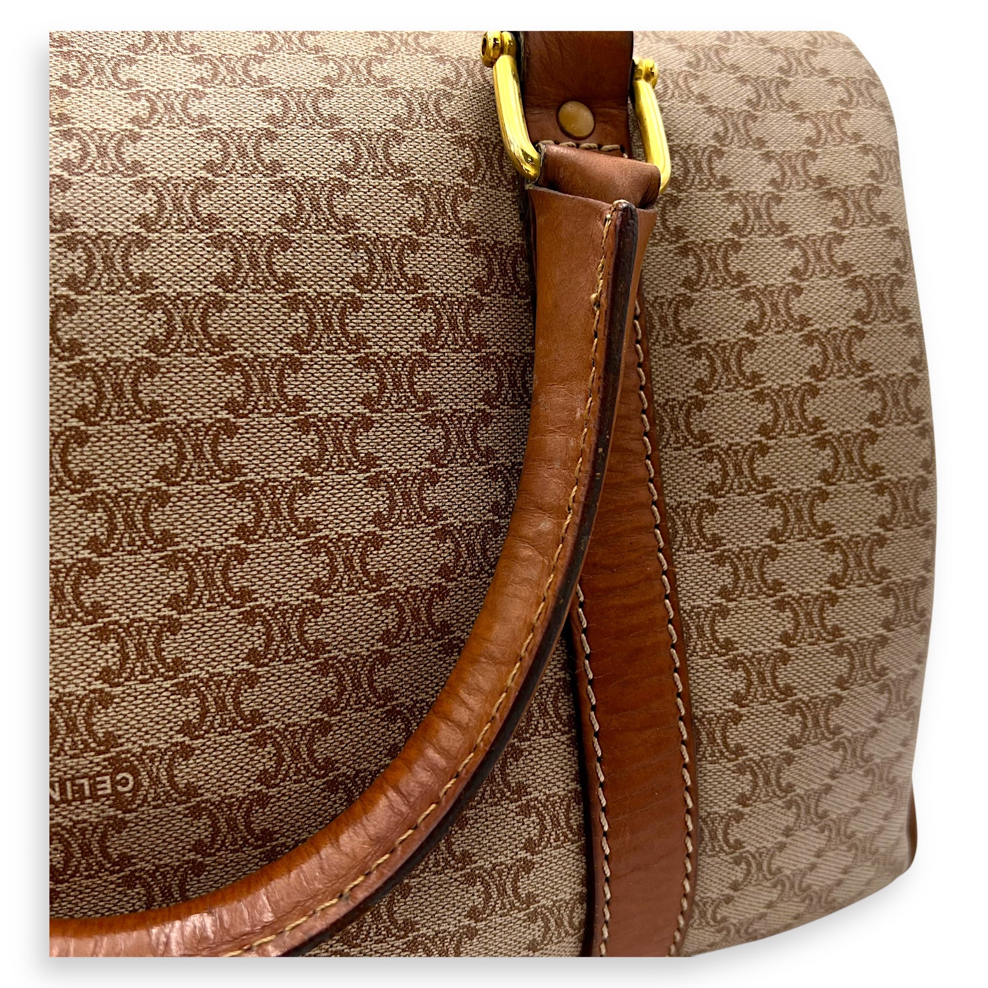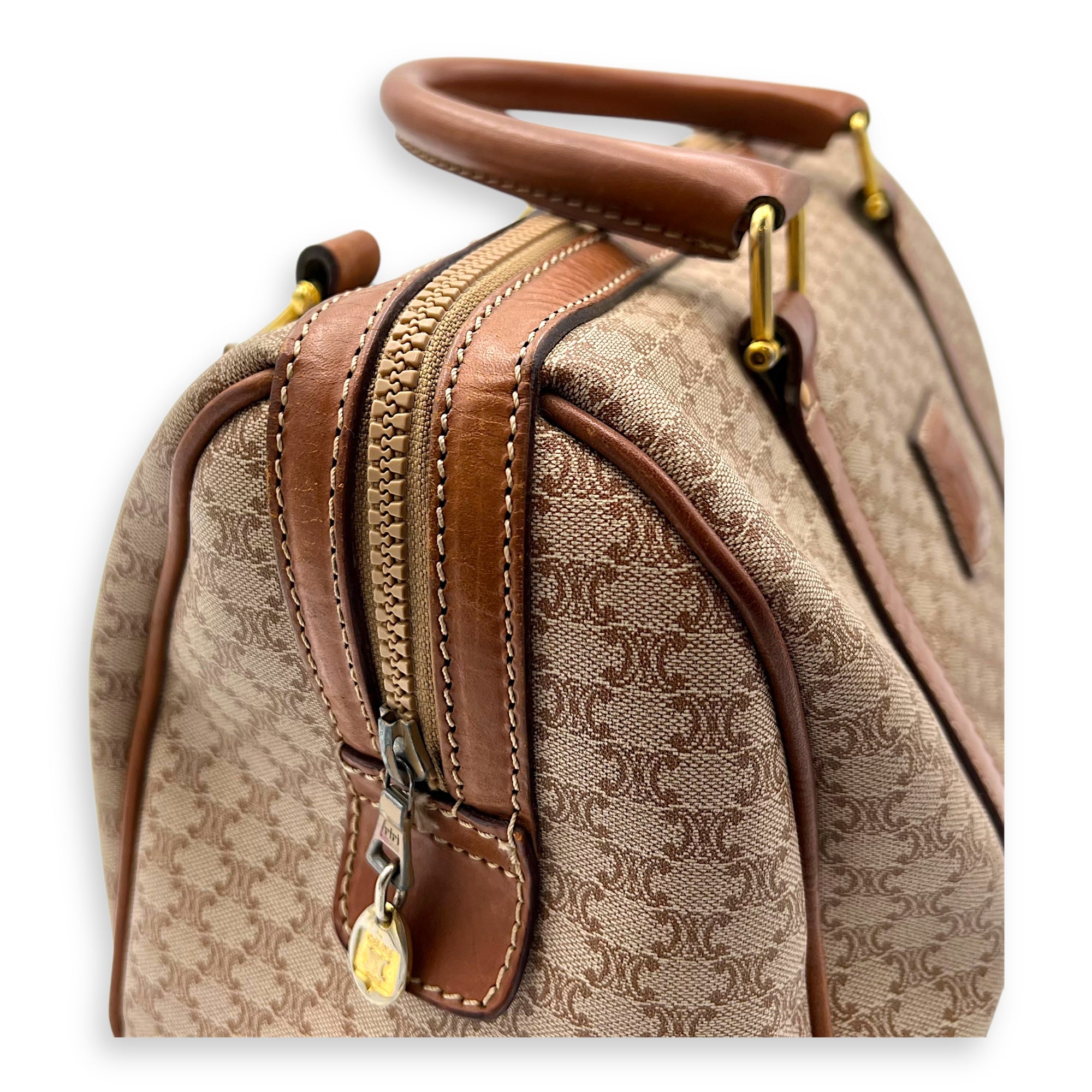 Bags Celine Macadam Boston Brown Top Handle Bag in Coated Canvas, Gold hardware Brown Top Handle Bag Women Lady Girl