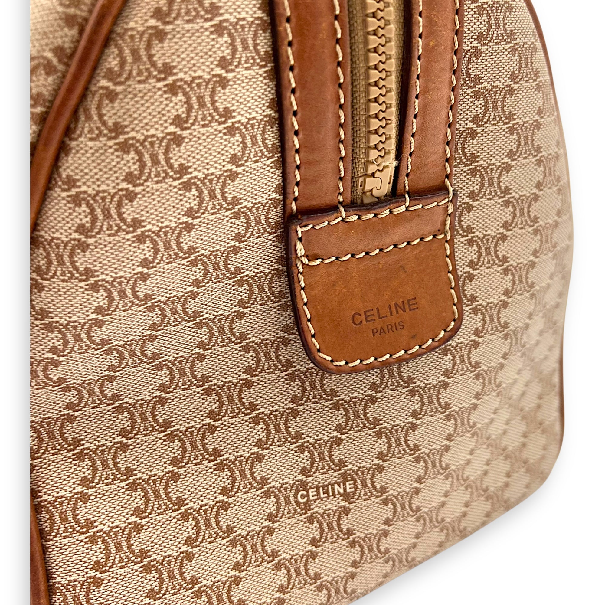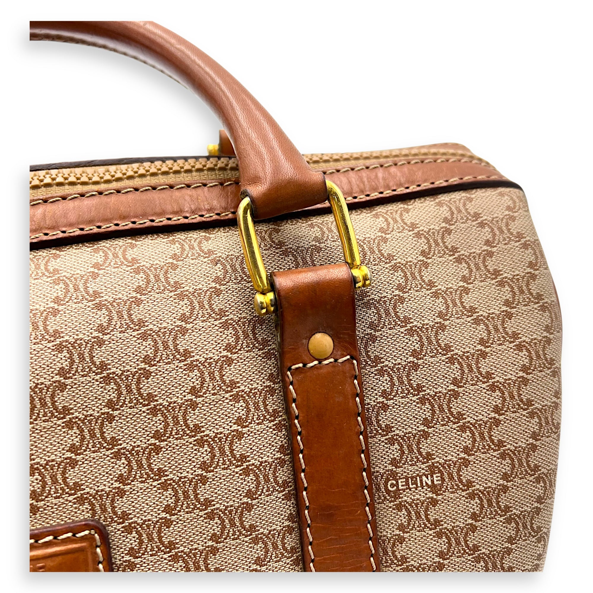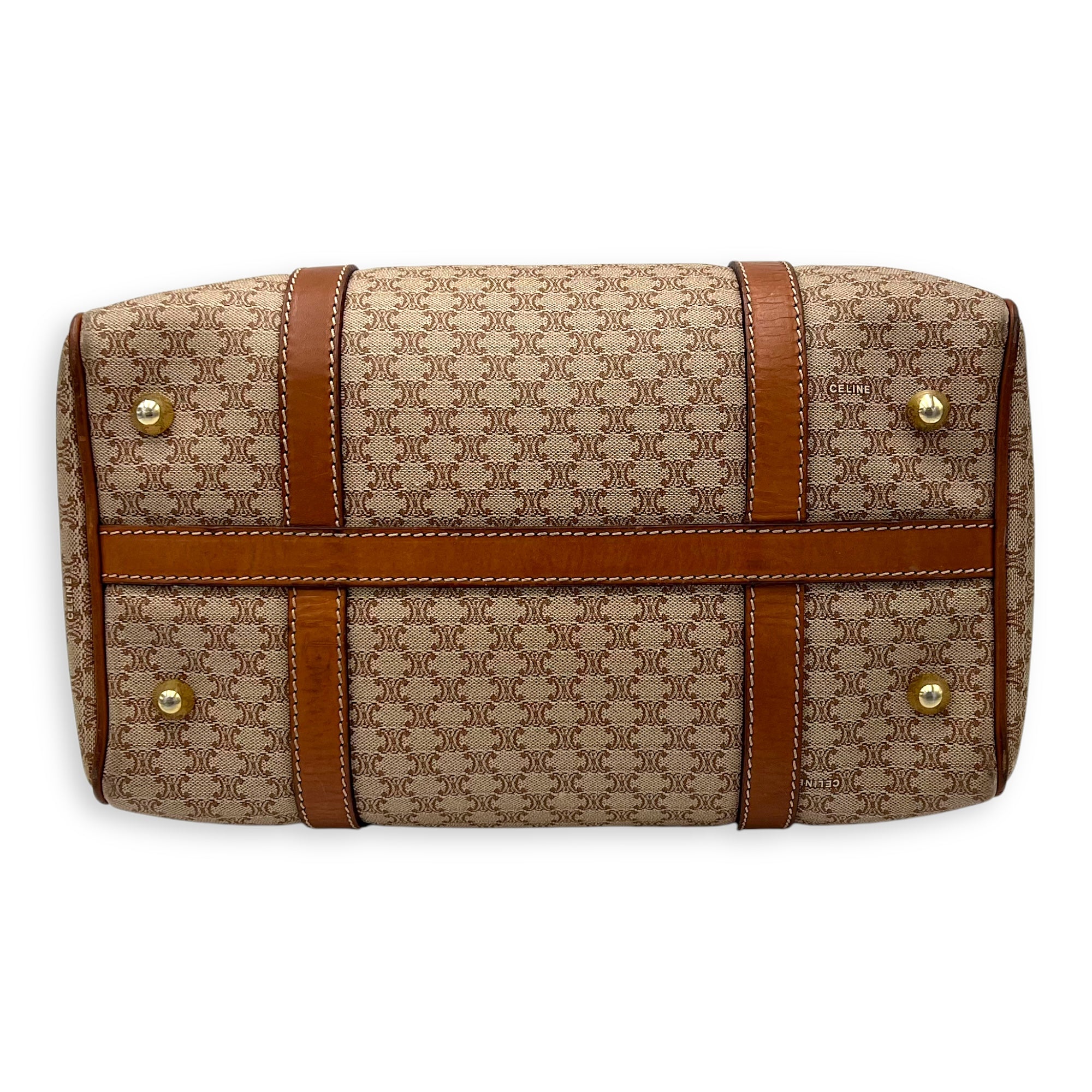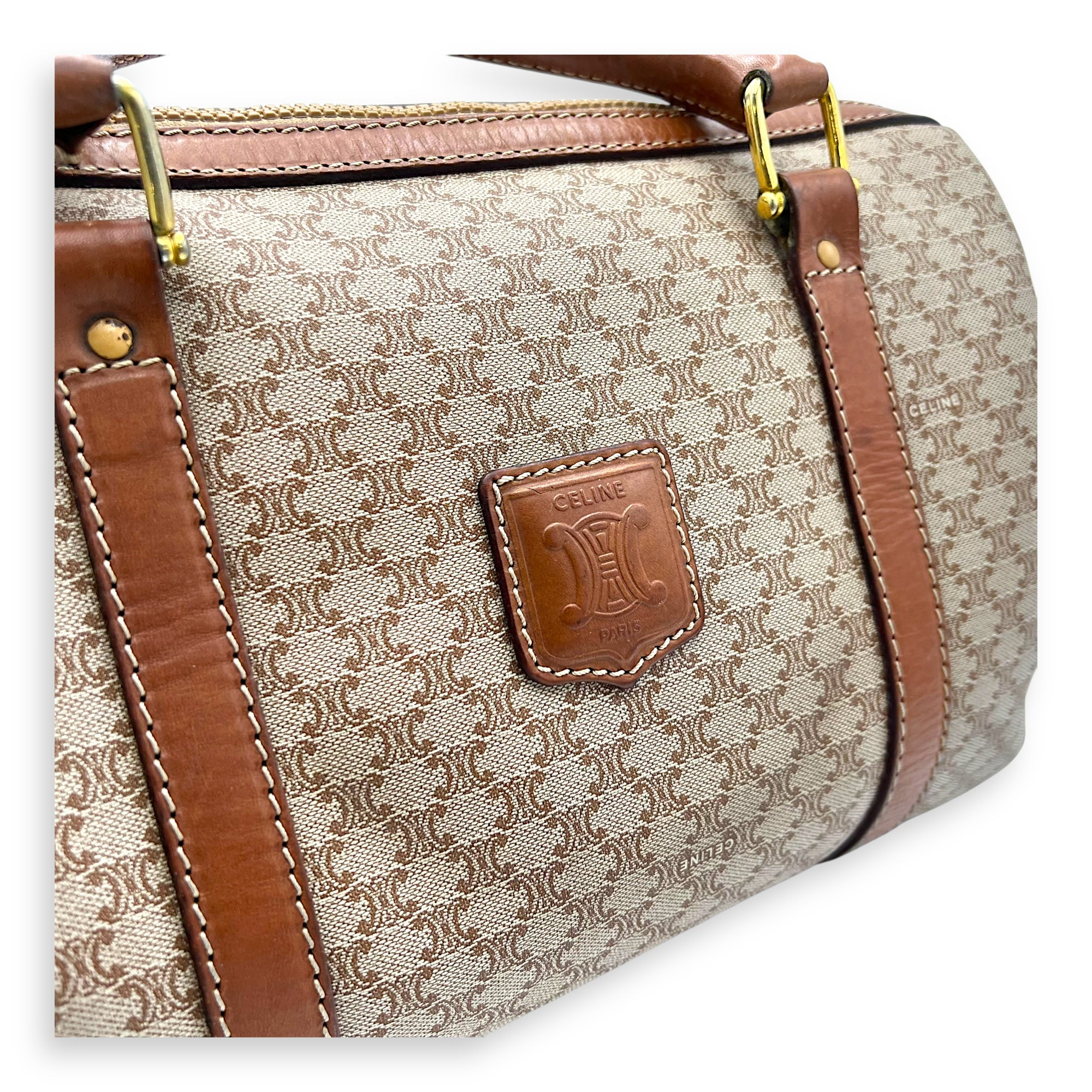 Bags Celine Macadam Boston Brown Top Handle Bag in Coated Canvas, Gold hardware Brown Top Handle Bag Women Lady Girl