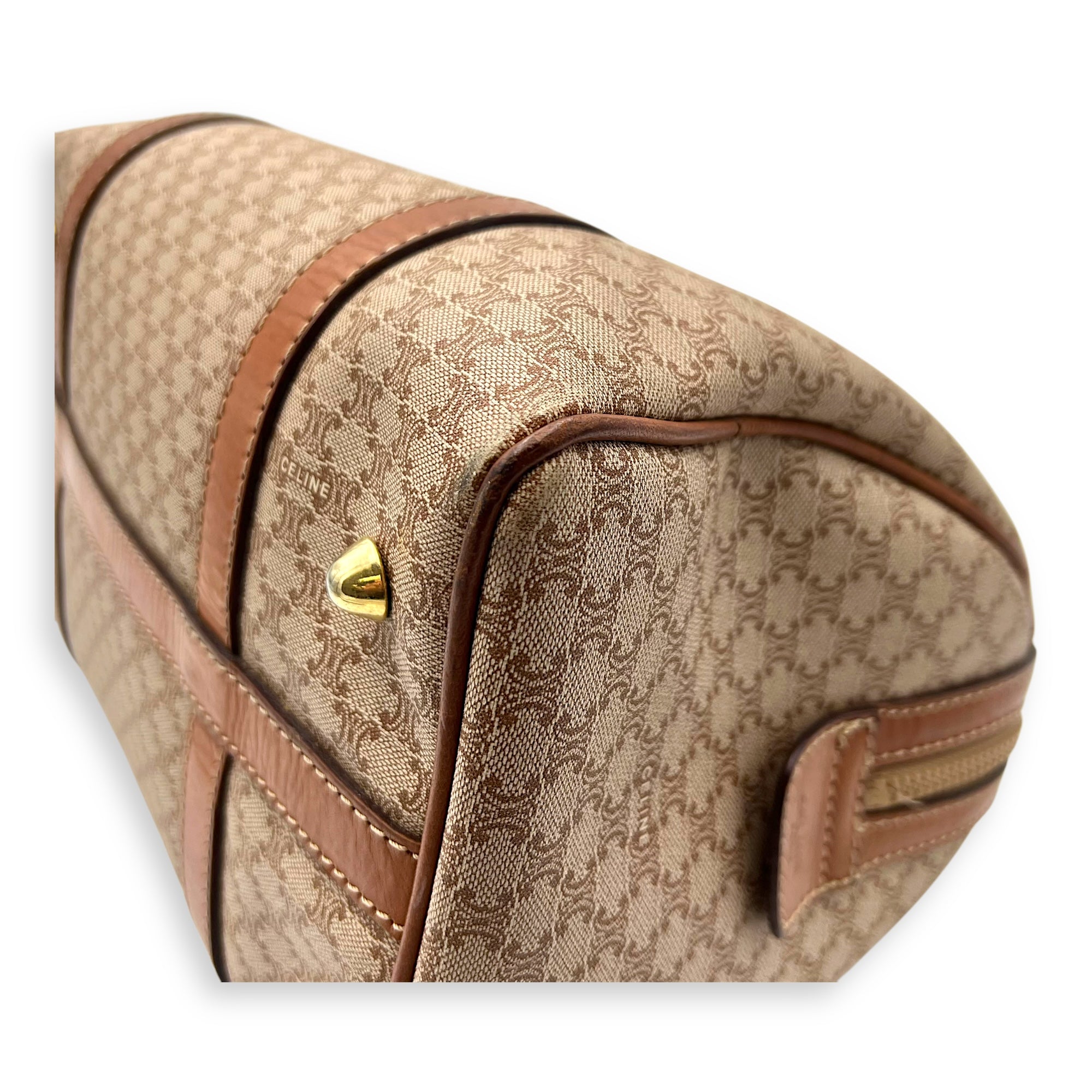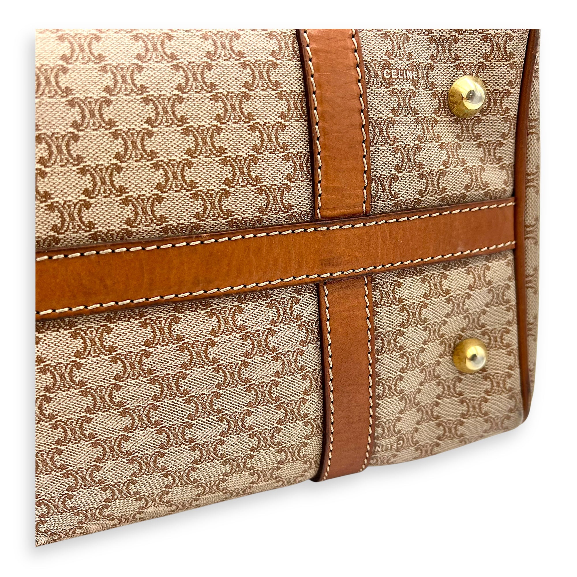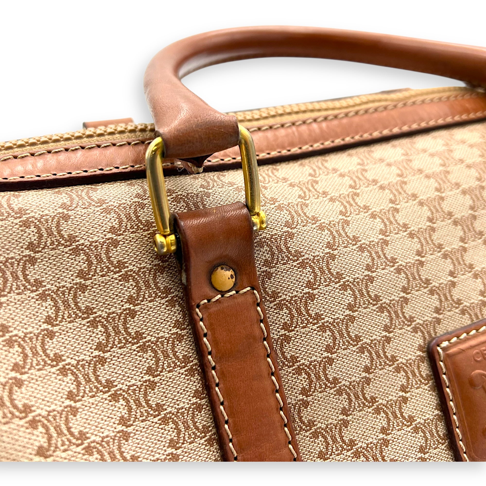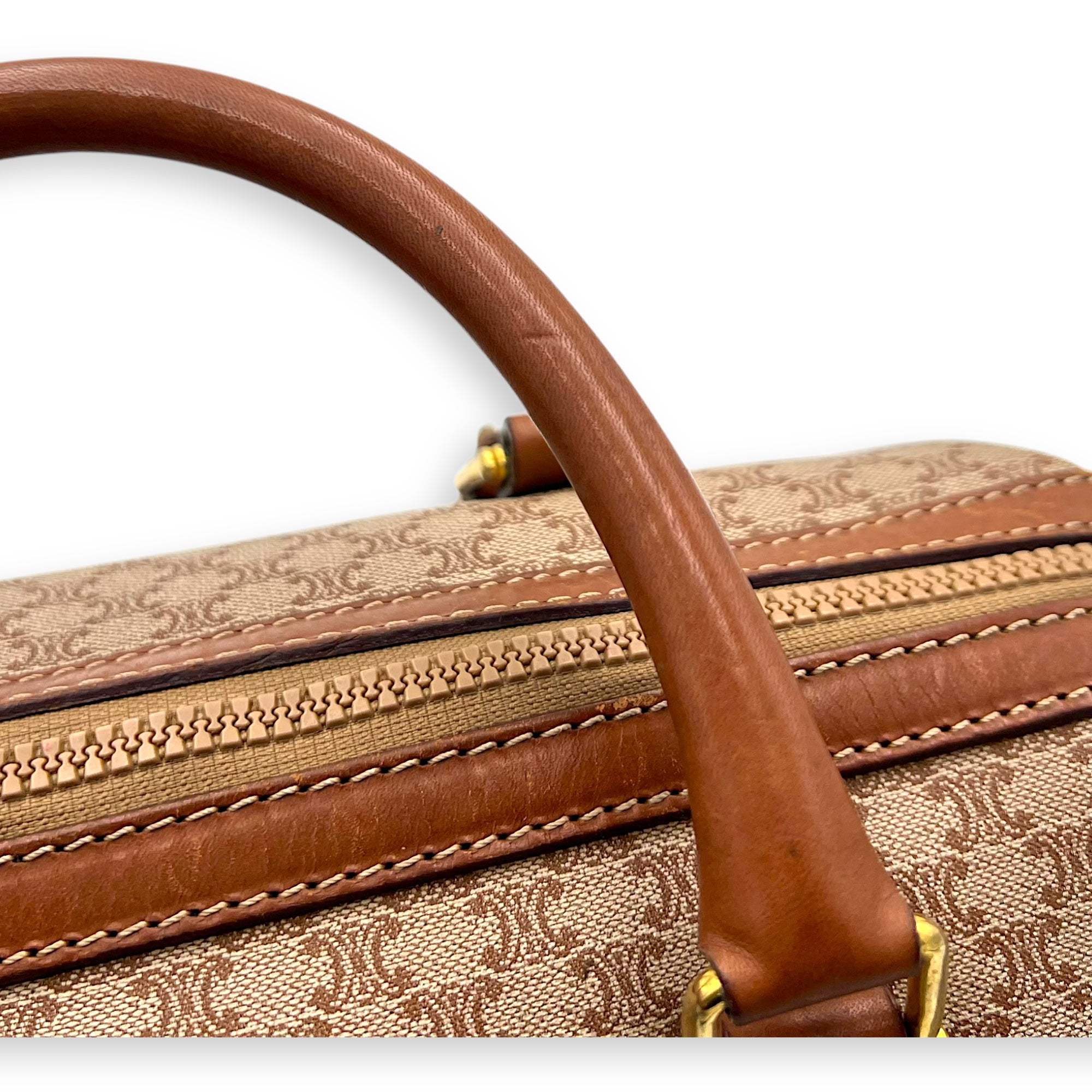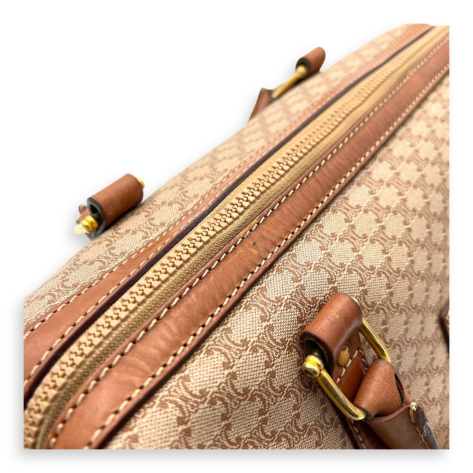 Bags Celine Macadam Boston Brown Top Handle Bag in Coated Canvas, Gold hardware Brown Top Handle Bag Women Lady Girl