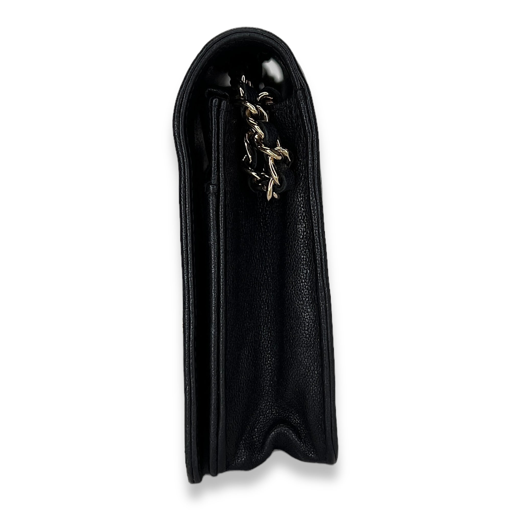 Mademoiselle Black Wallet on Chain in Calfskin, Gold hardware