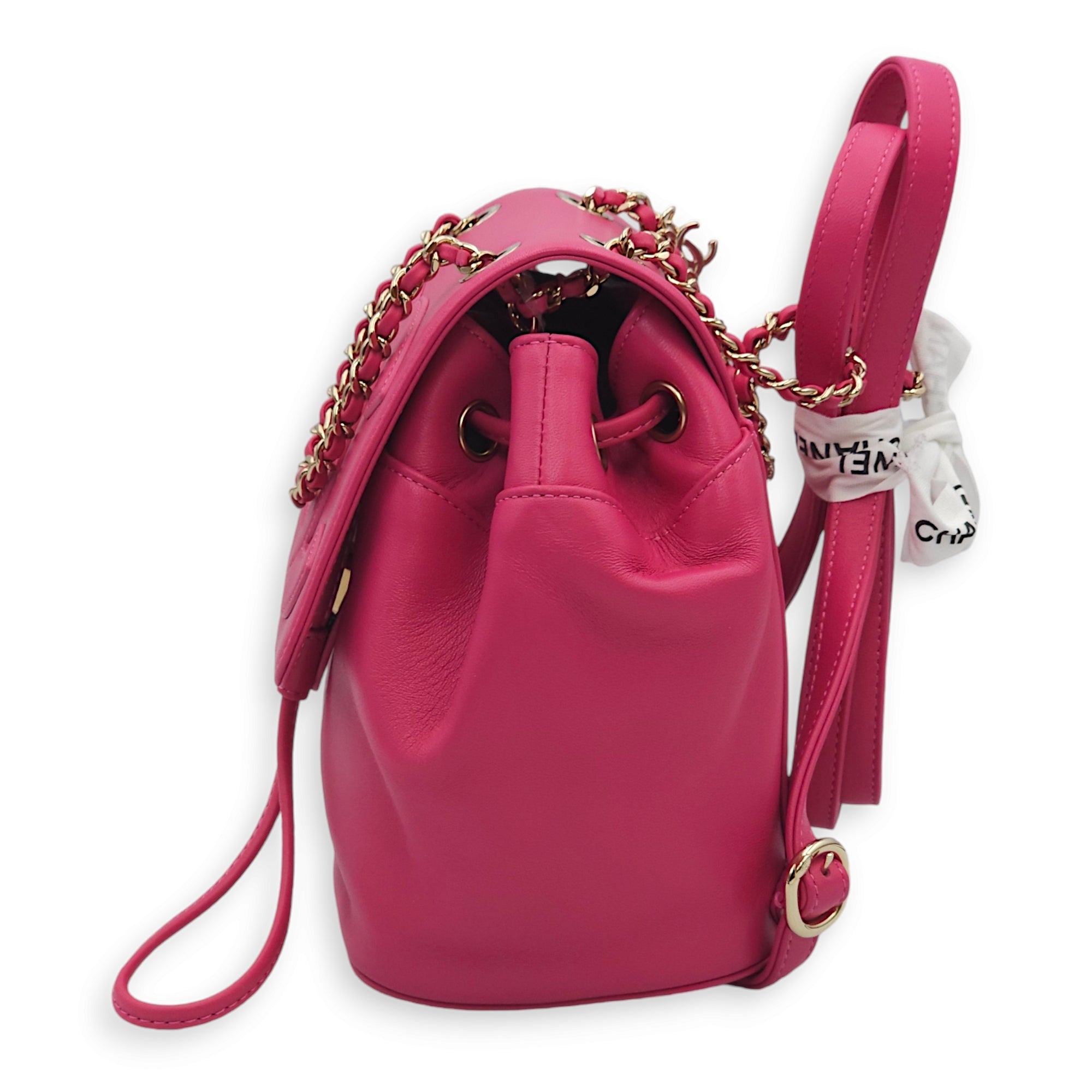 Chanel Mania Fuschia Pink Backpack in Lambskin, Gold hardware Bags Backpack Fuschia Pink Pink Very Good Condition