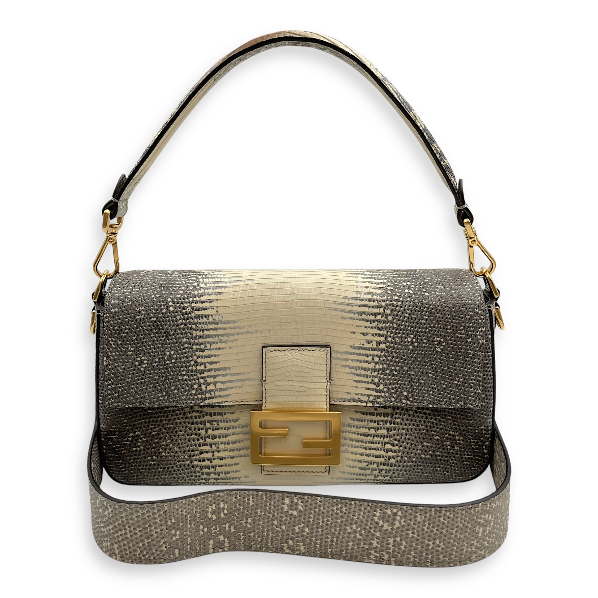 Fendi Medium Baguette 27x14x6cm Multi-colour Shoulder Bag in Lizard Varanus Salvator, Gold hardware Bags Shoulder Bag Multi-colour Brand New
