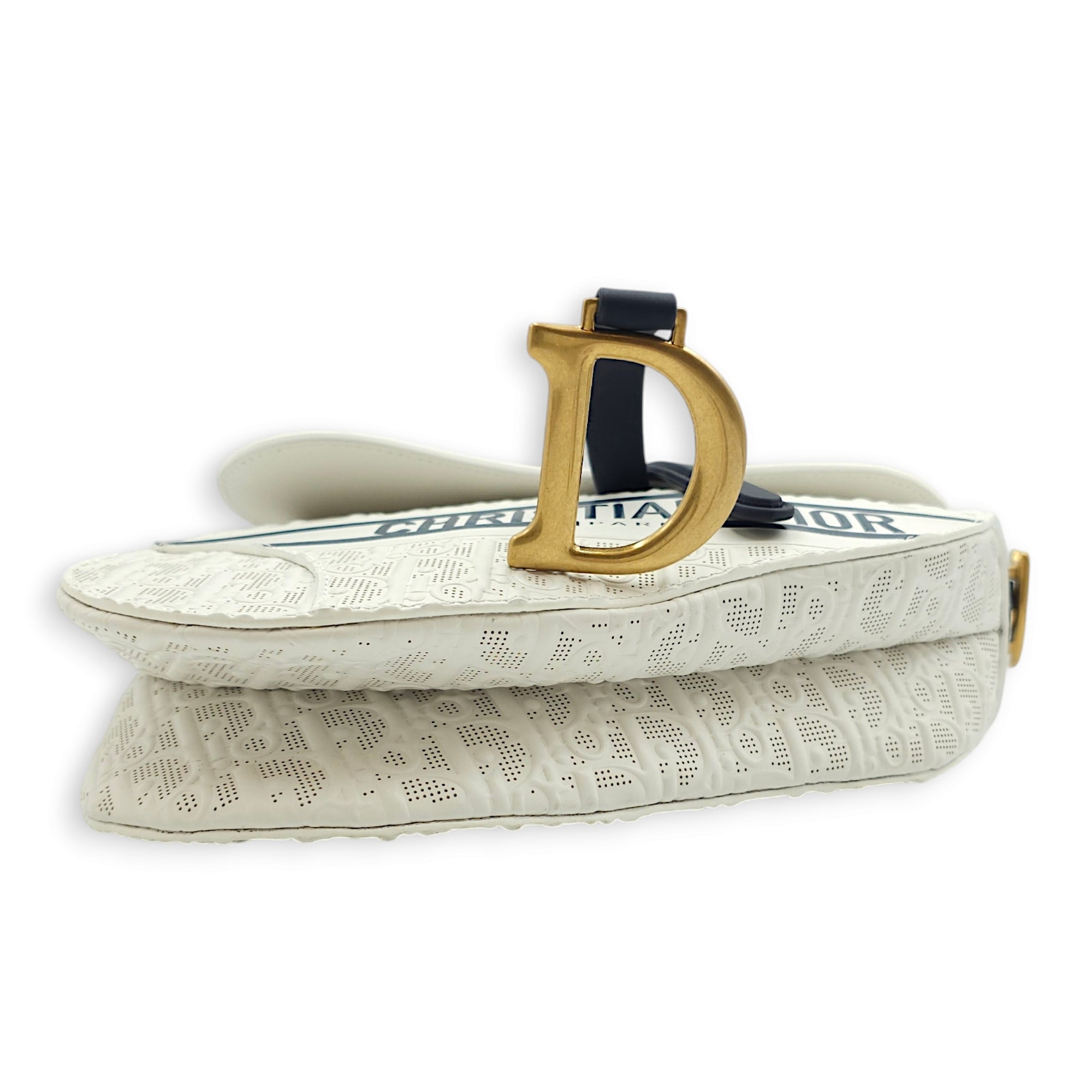 Christian Dior Medium Saddle with Strap Medium White, Dark Blue Crossbody Bag in Oblique Perforated Embossed Calf, Gold hardware Bags Crossbody Bag White, Dark Blue Multi-colour Very Good Condition