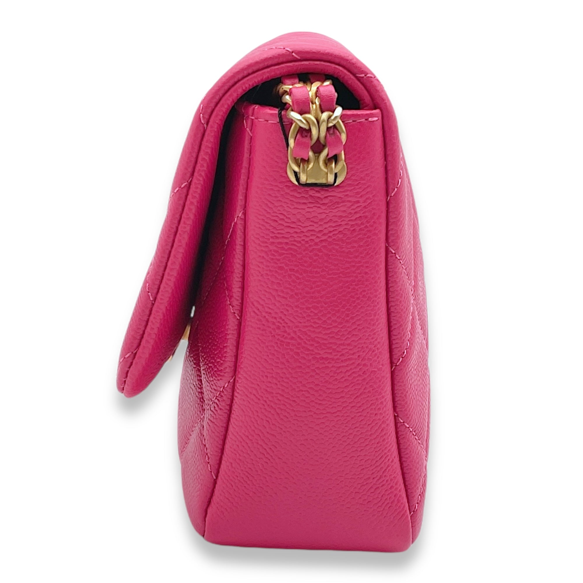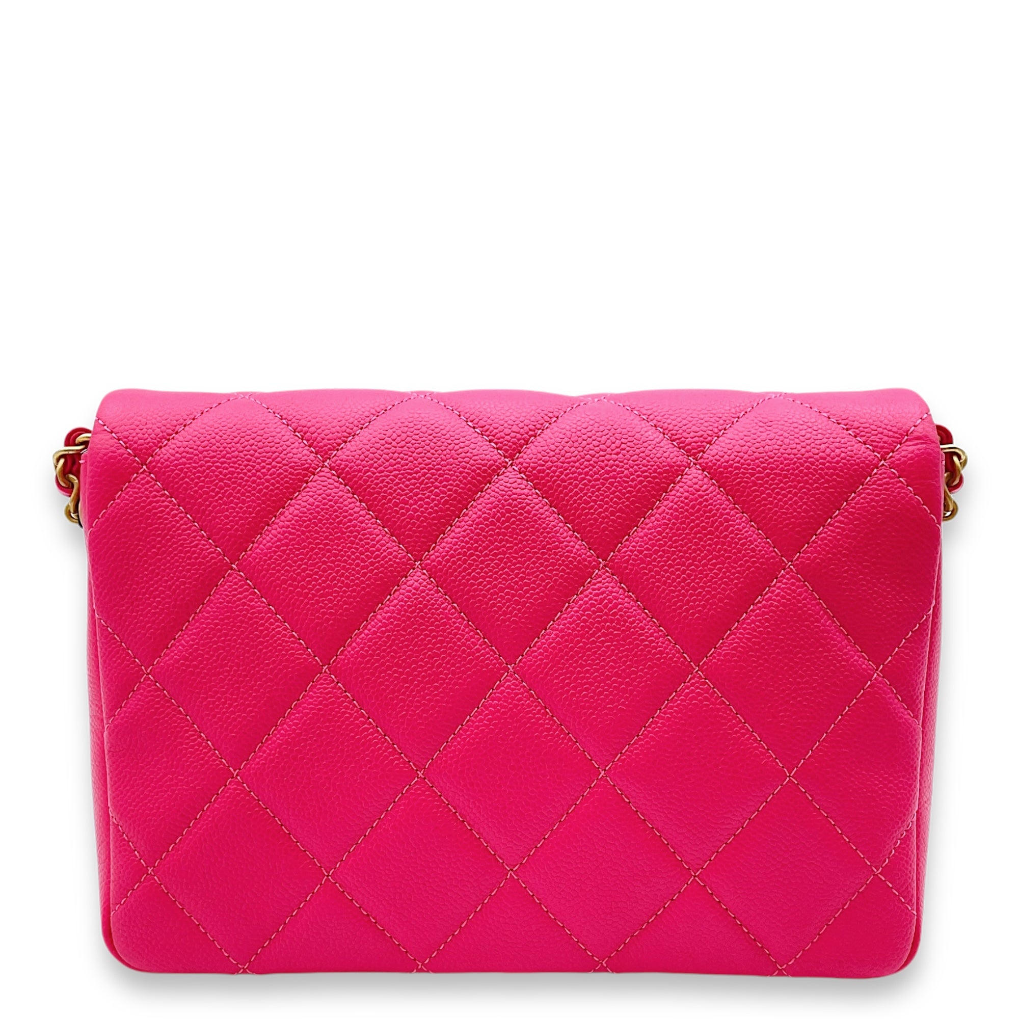 Chanel Melody Flap Pink Crossbody Bag in Caviar Leather, Gold hardware Bags Crossbody Bag Pink Like New