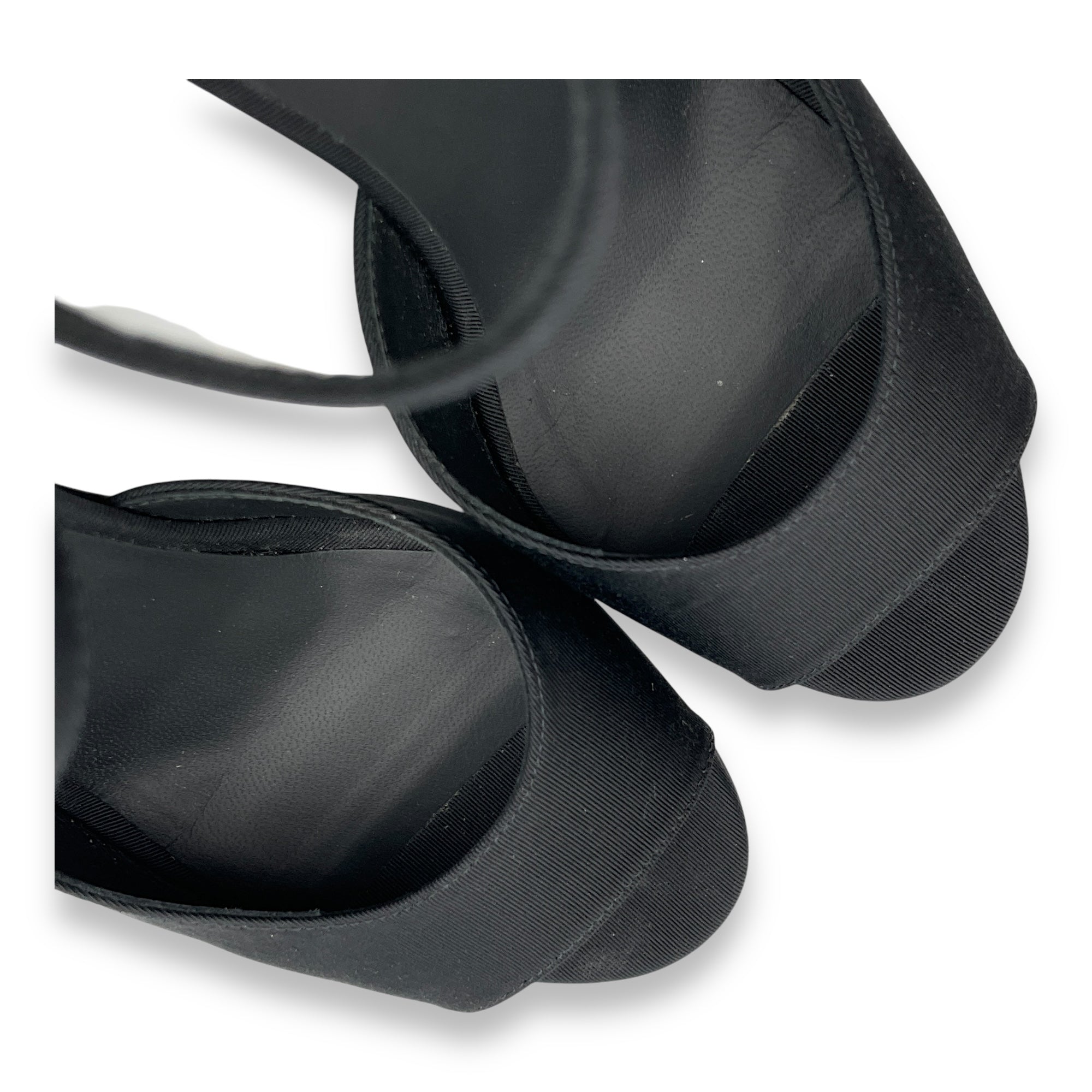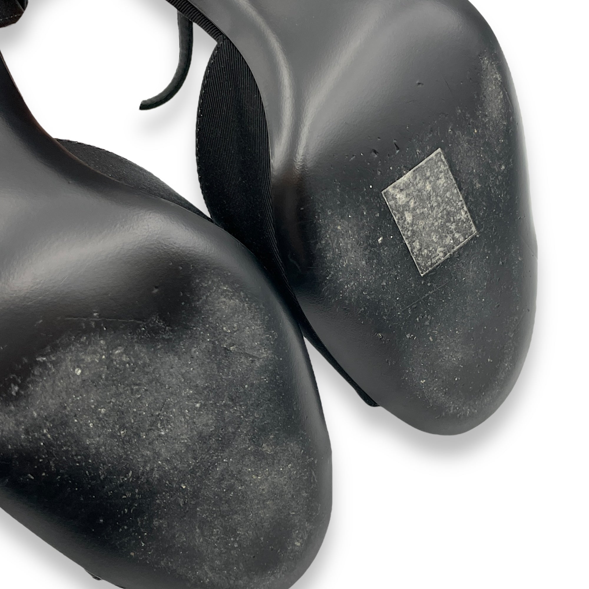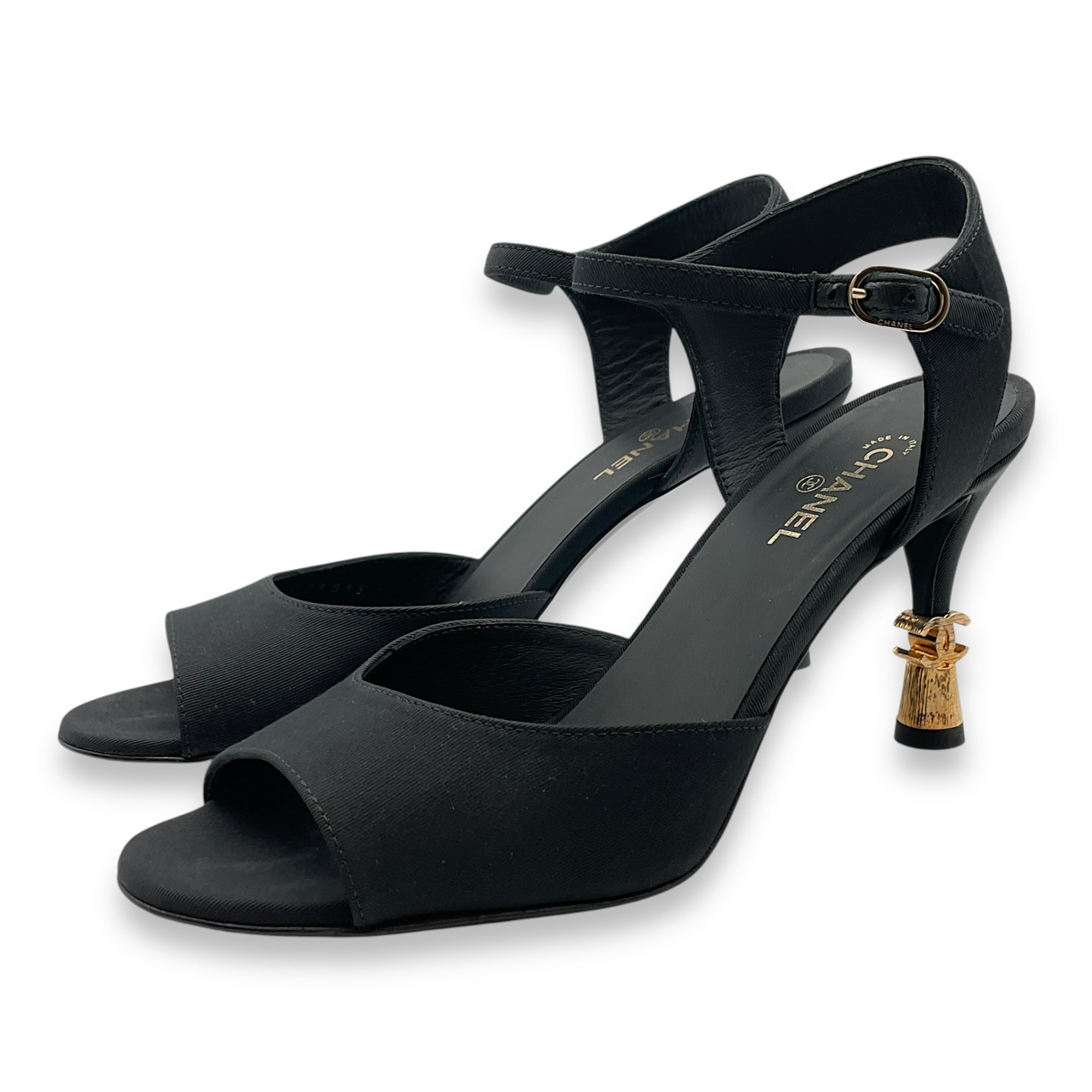 Chanel Metal CC Sandal(8.5cm) 37.5C Black Heels in Grosgrains, Gold hardware Shoes Heels Black Good Condition
