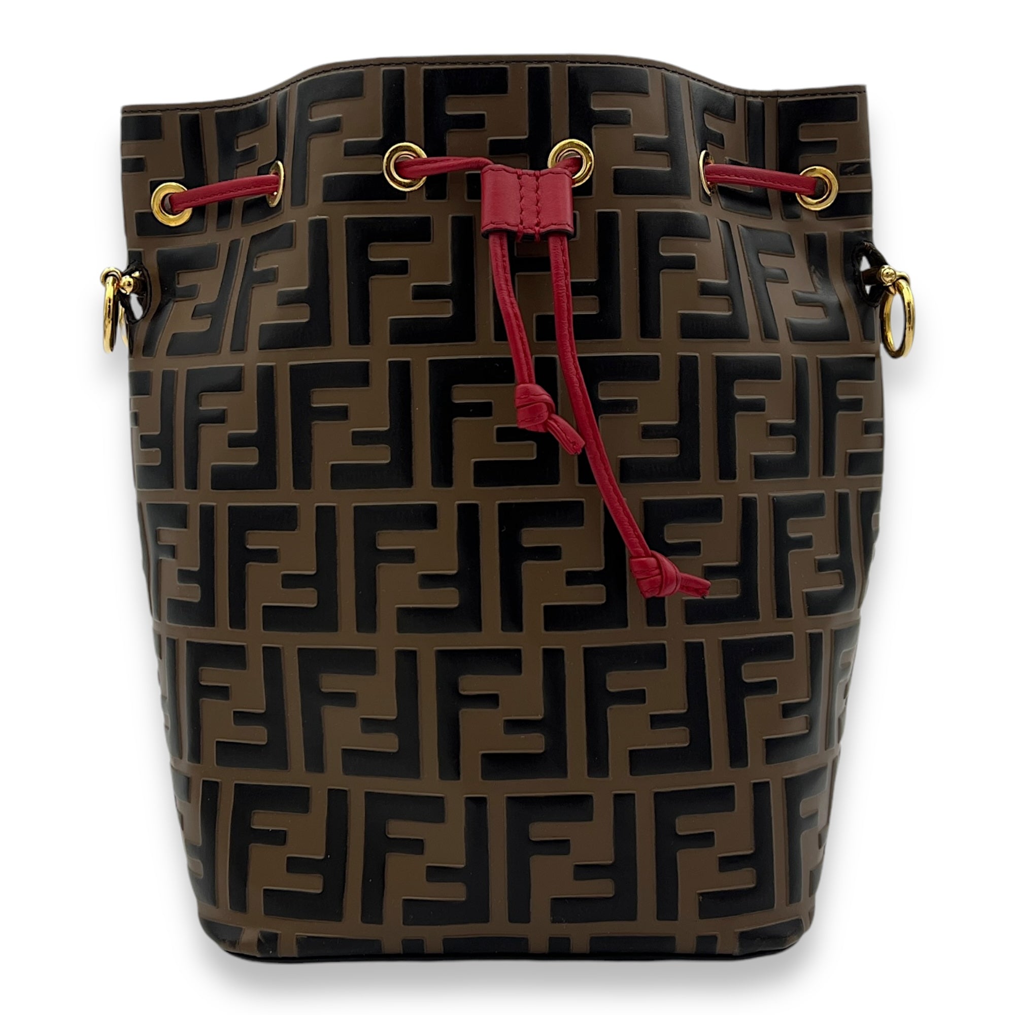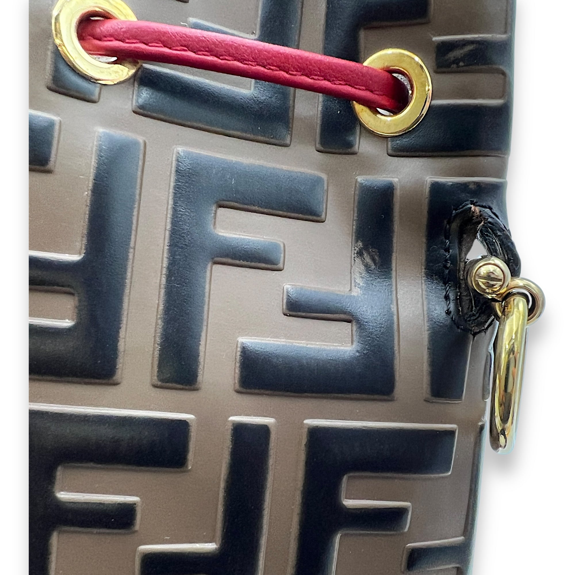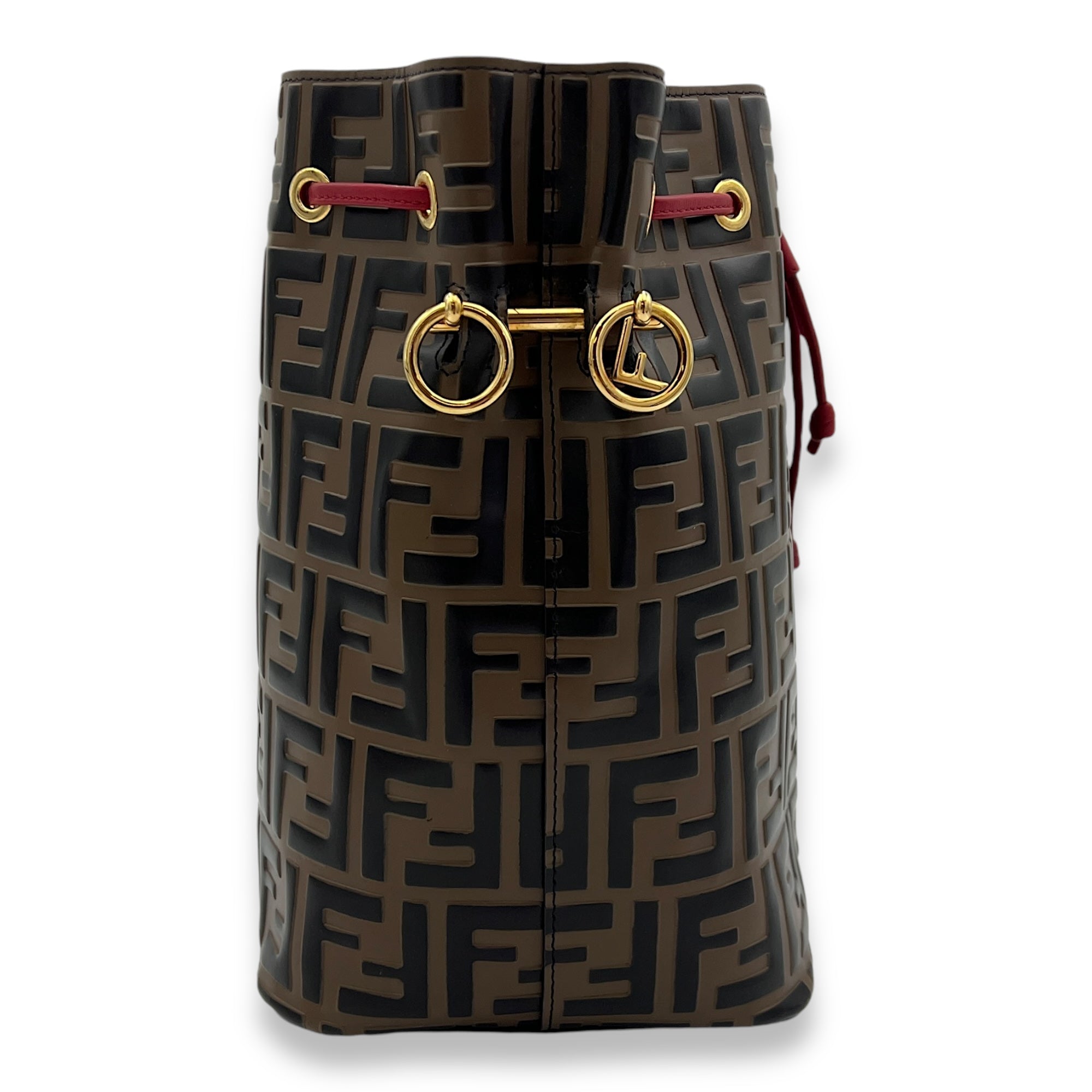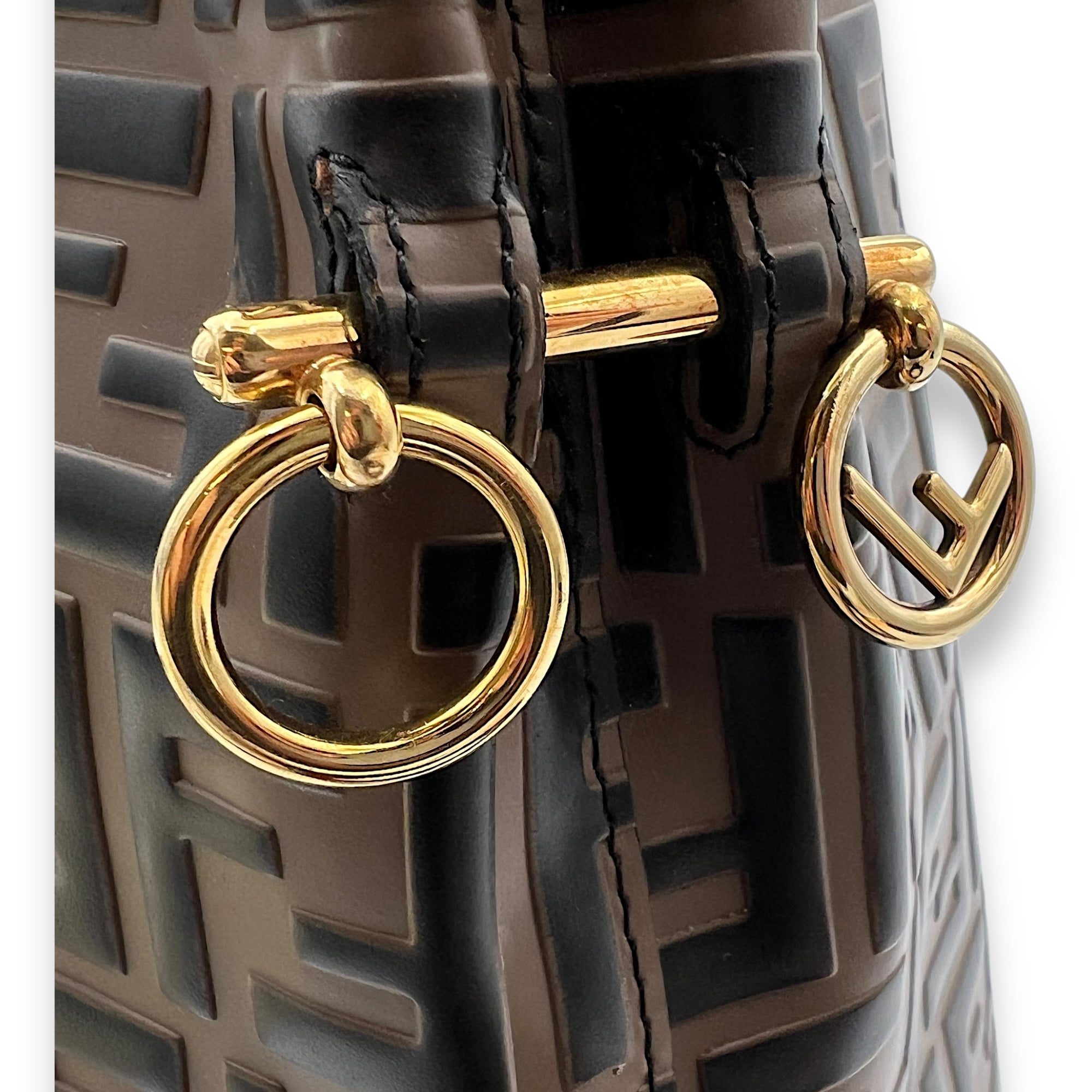 Bags Fendi Mon Tresor FF Embossed Bucket Bag in Calfskin, Gold hardware Good Condition FF Embossed Brown Bucket Bag Women Lady Girl