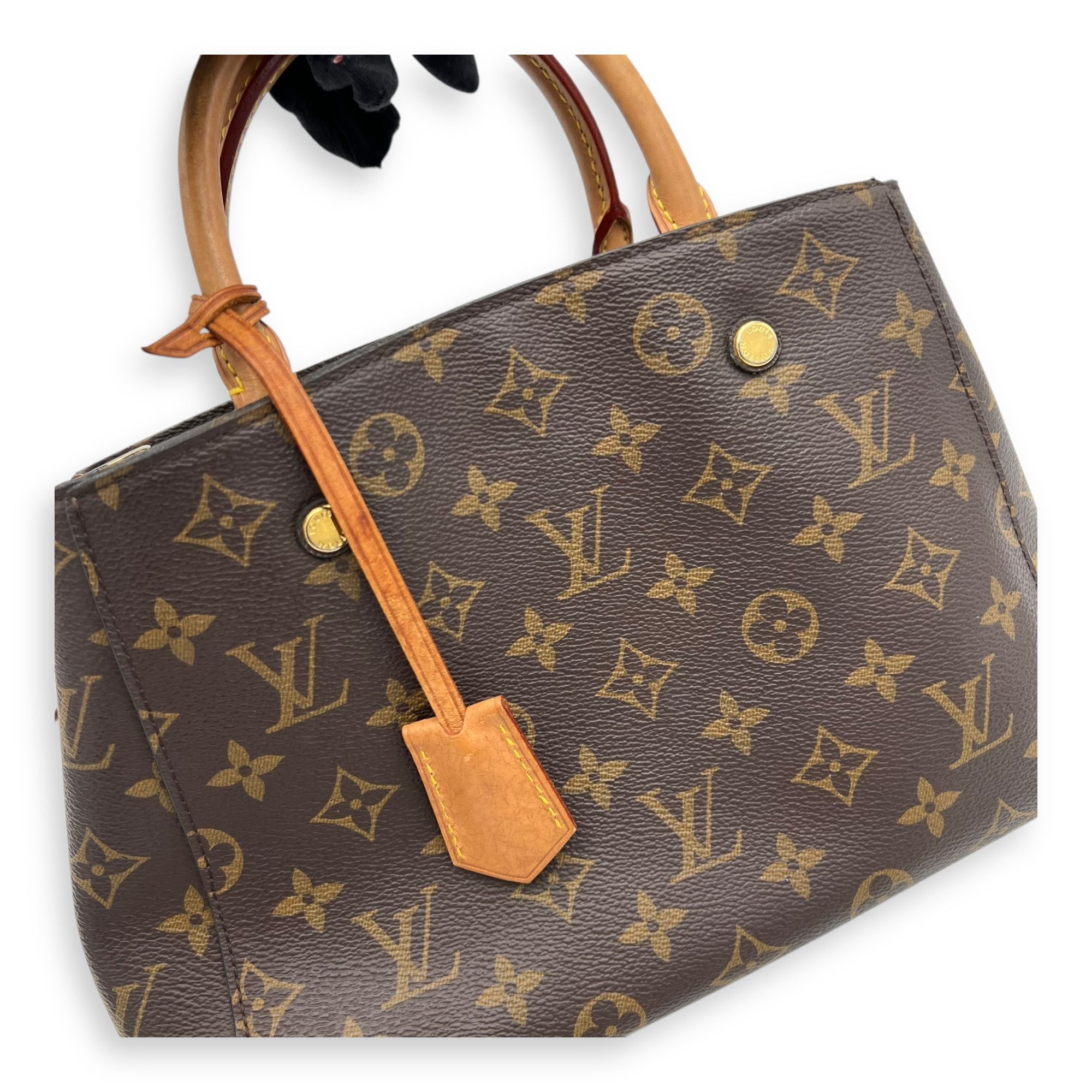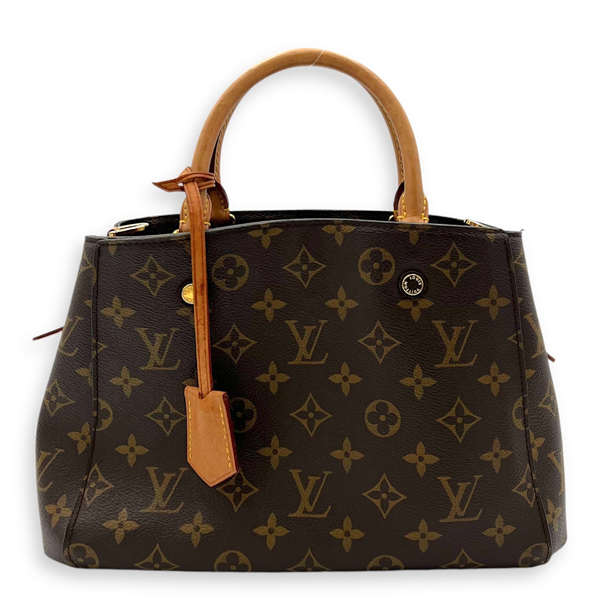 Bags Louis Vuitton Montaigne Top Handle Bag BB Brown in Monogram Coated Canvas, Gold hardware Good Condition Brown Top Handle Bag Women Lady Girl