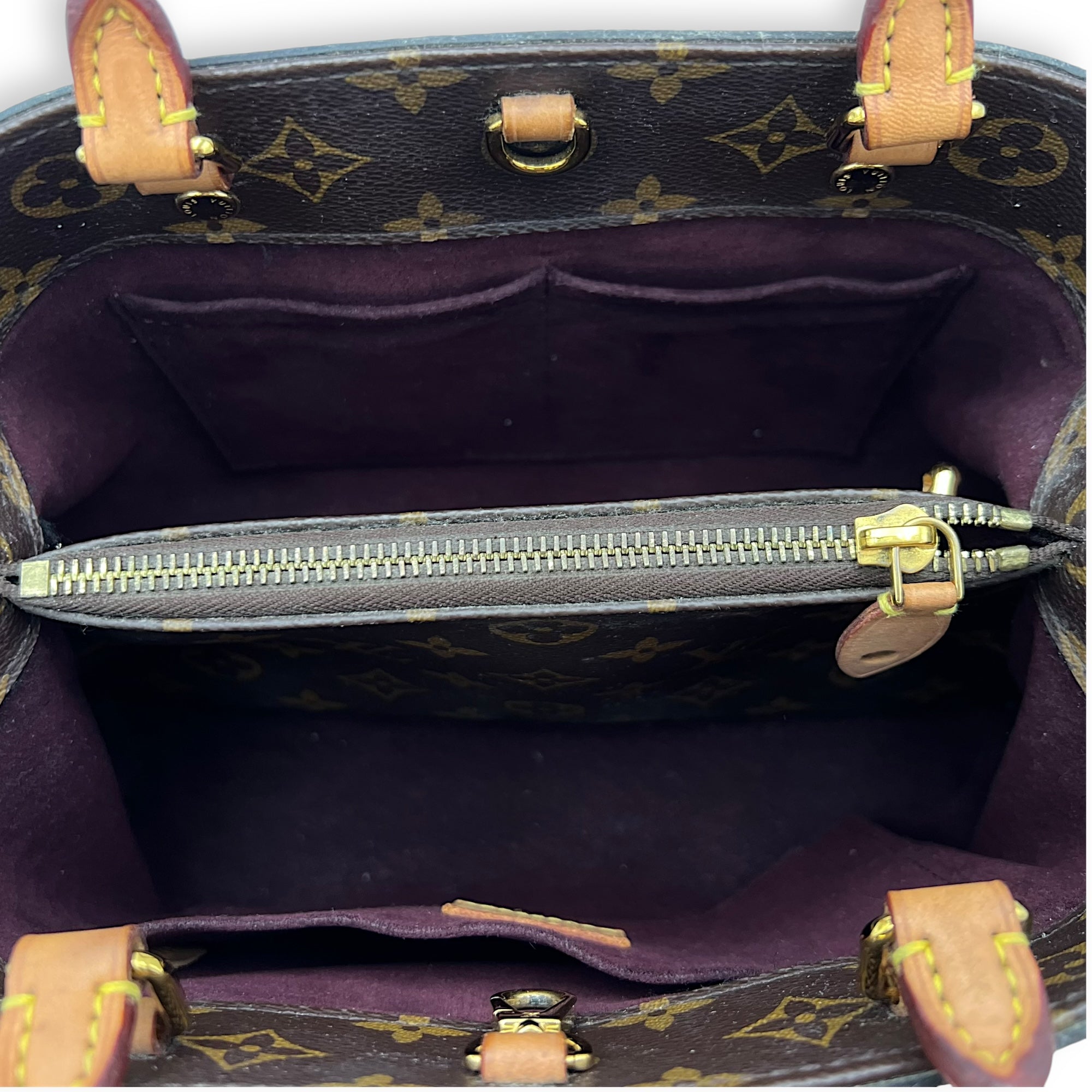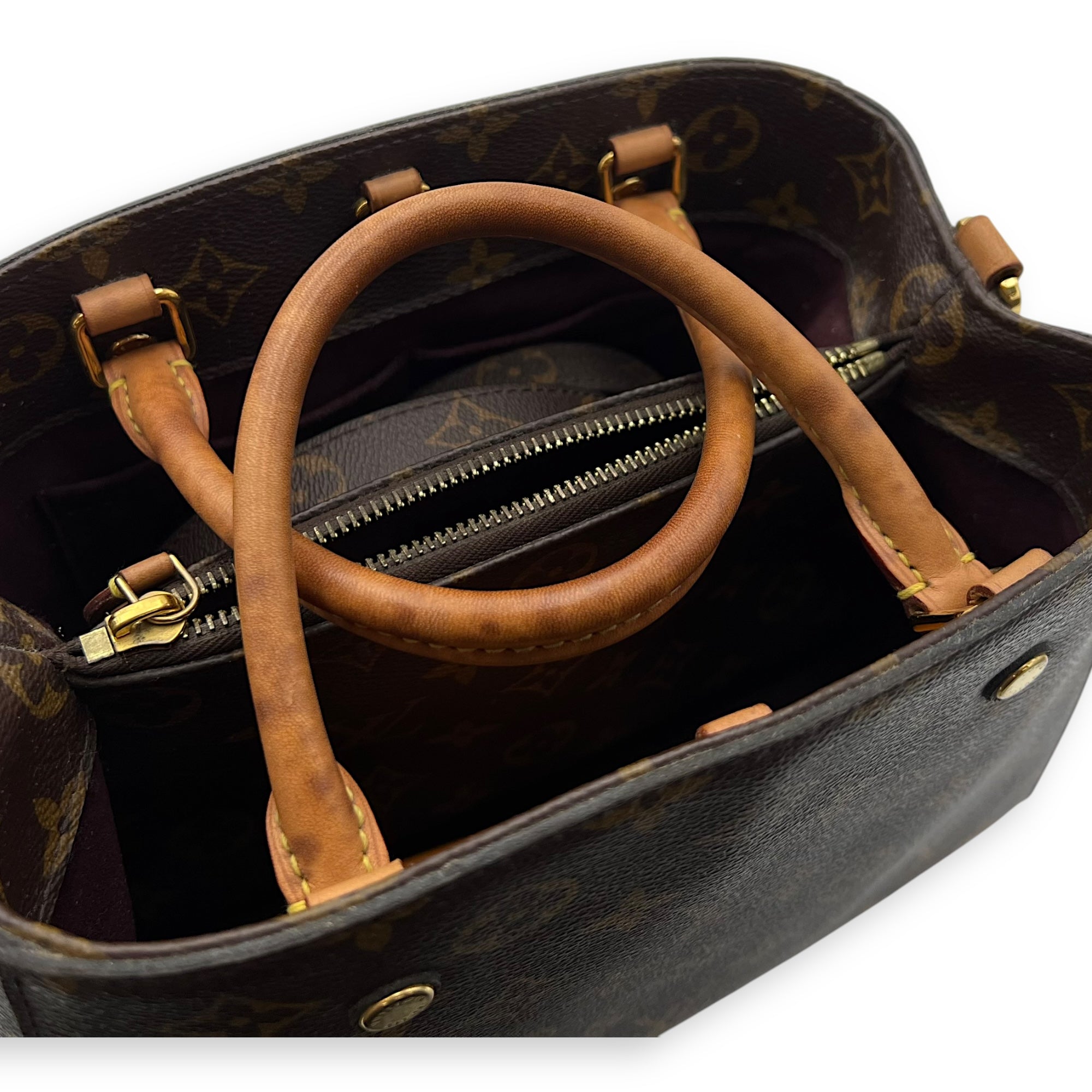 Bags Louis Vuitton Montaigne BB Brown Top Handle Bag in Coated Canvas, Gold hardware Good Condition Brown Top Handle Bag Women Lady Girl