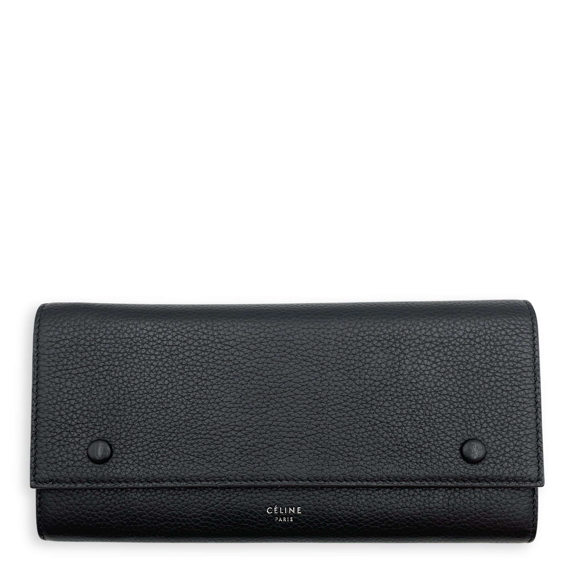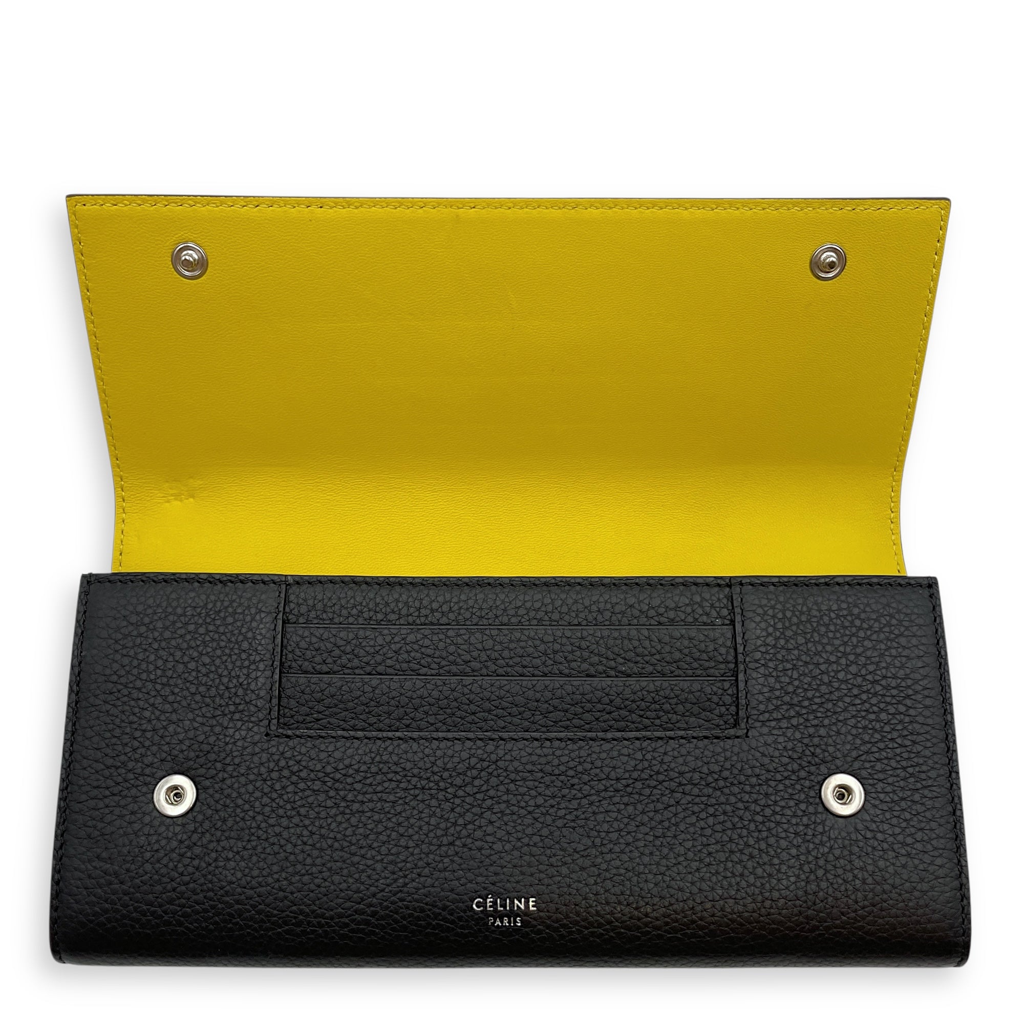 Celine Multi Function Long Black Wallet in Calfskin, Silver hardware Small Leather Goods Wallet Black Good Condition
