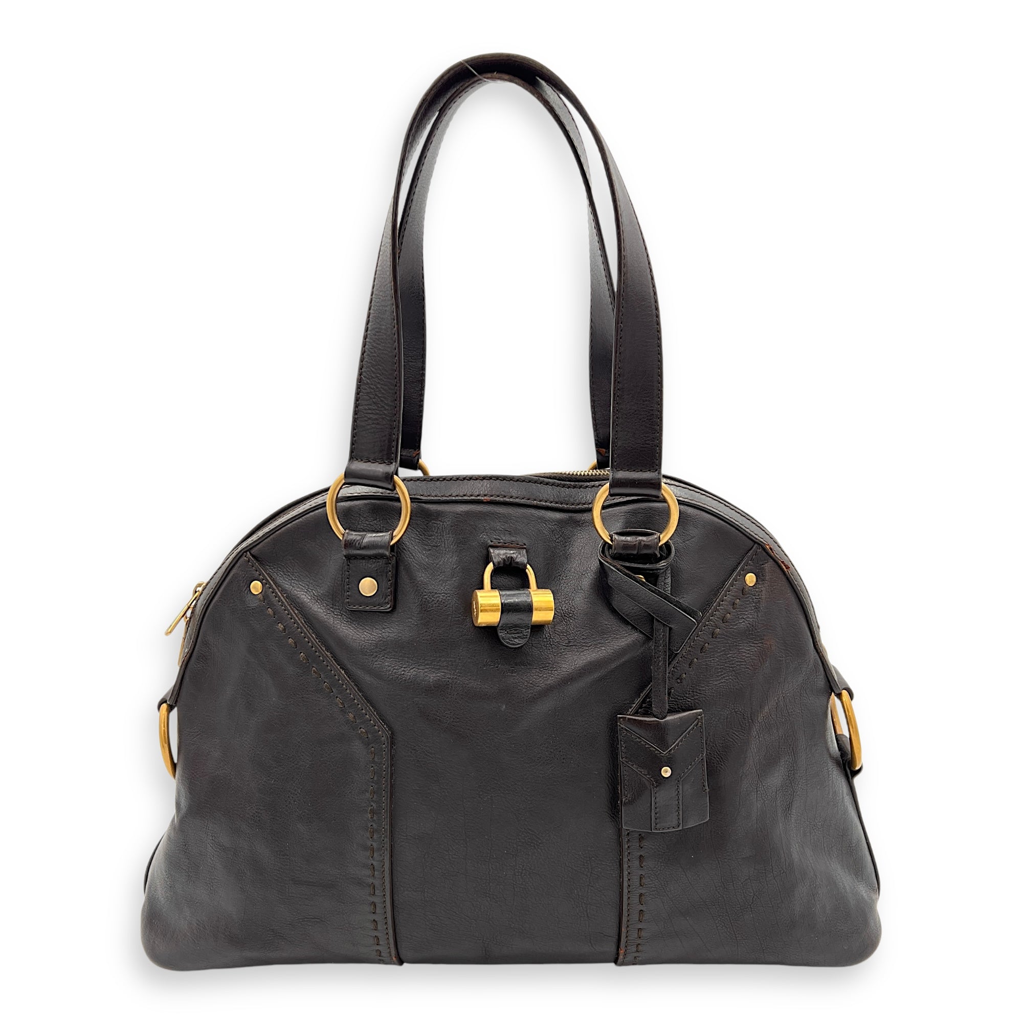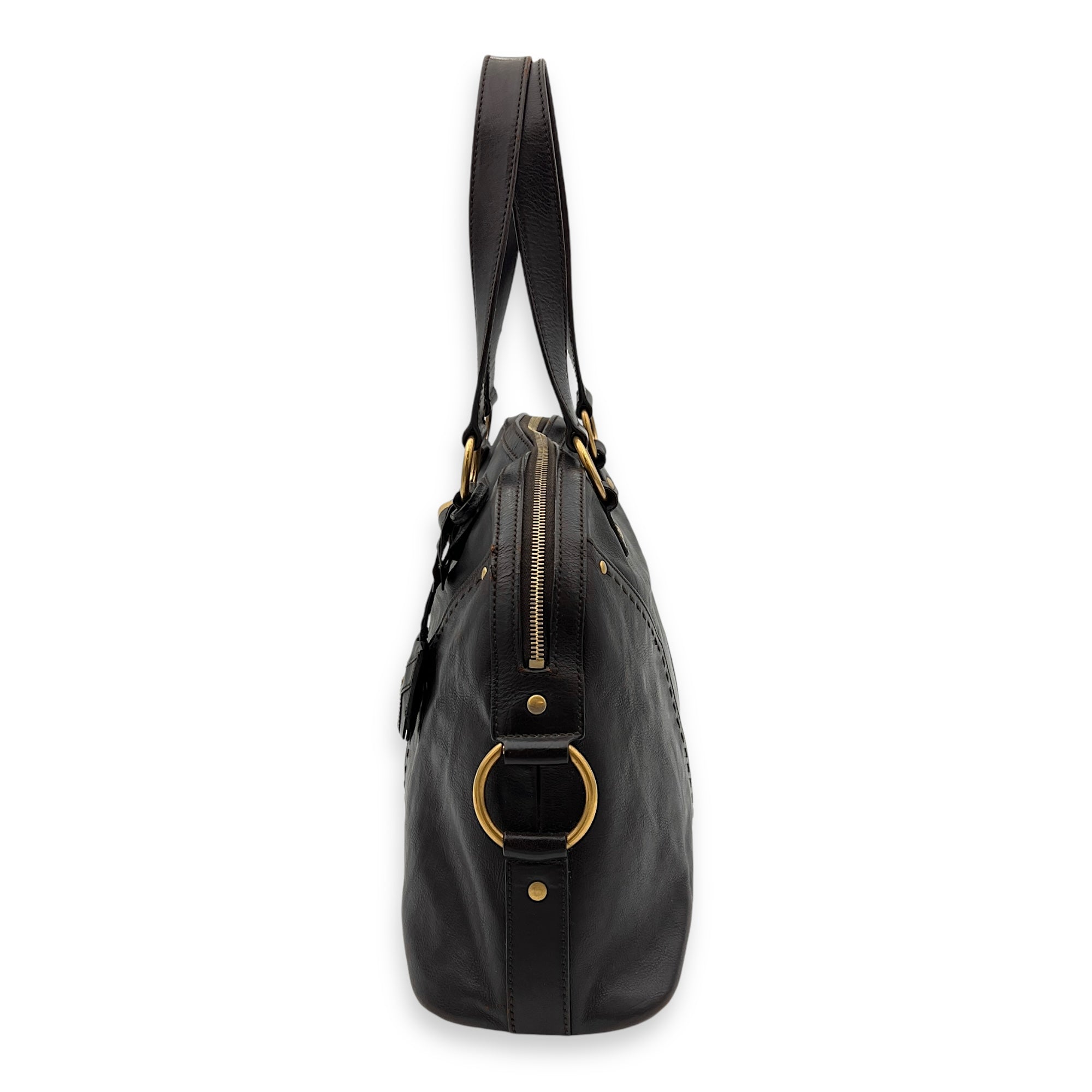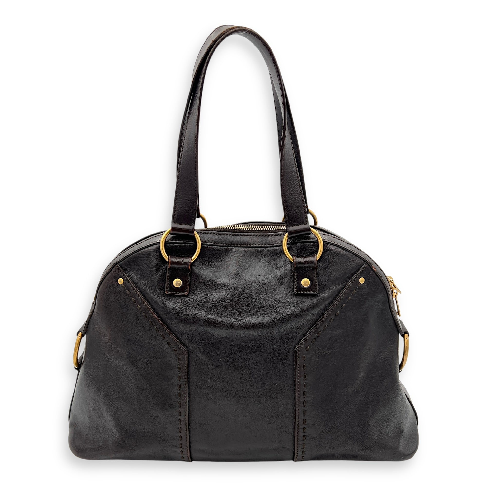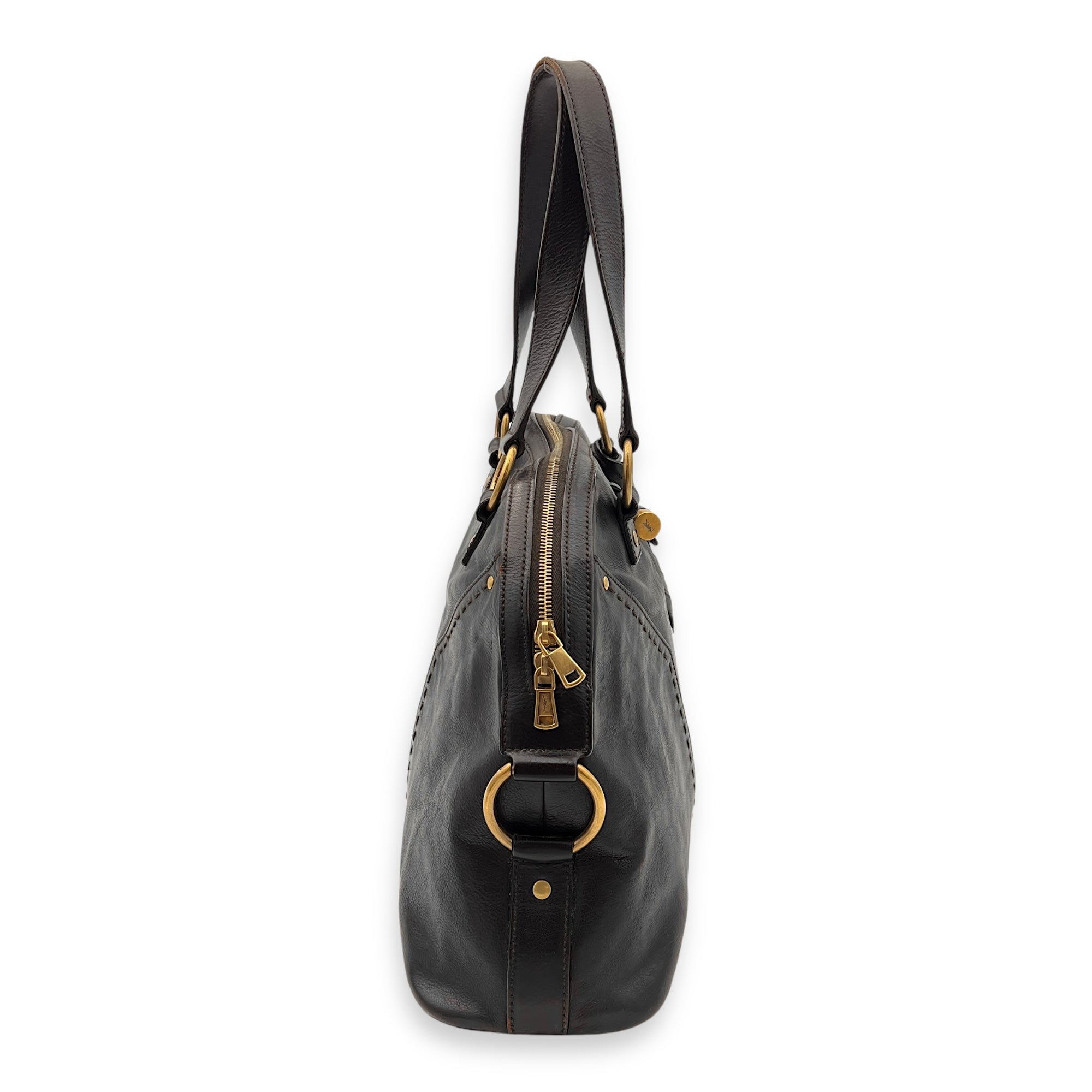 Bags Saint Laurent Muse Shoulder Bag Brown in Calfskin, Gold hardware Good Condition Brown Shoulder Bag Women Lady Girl