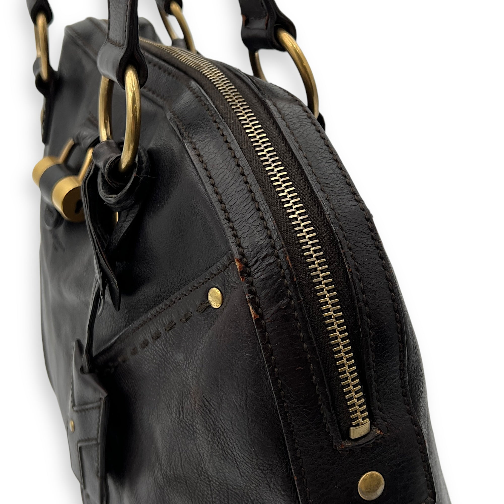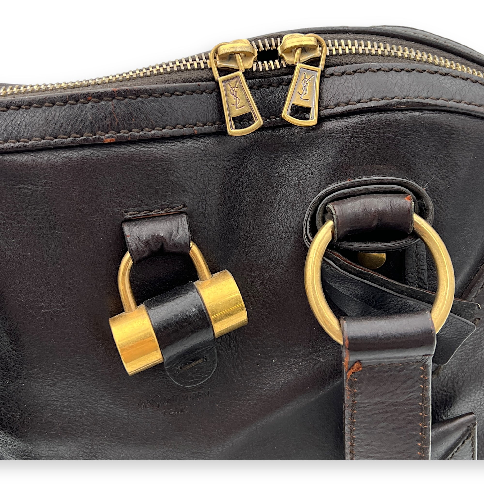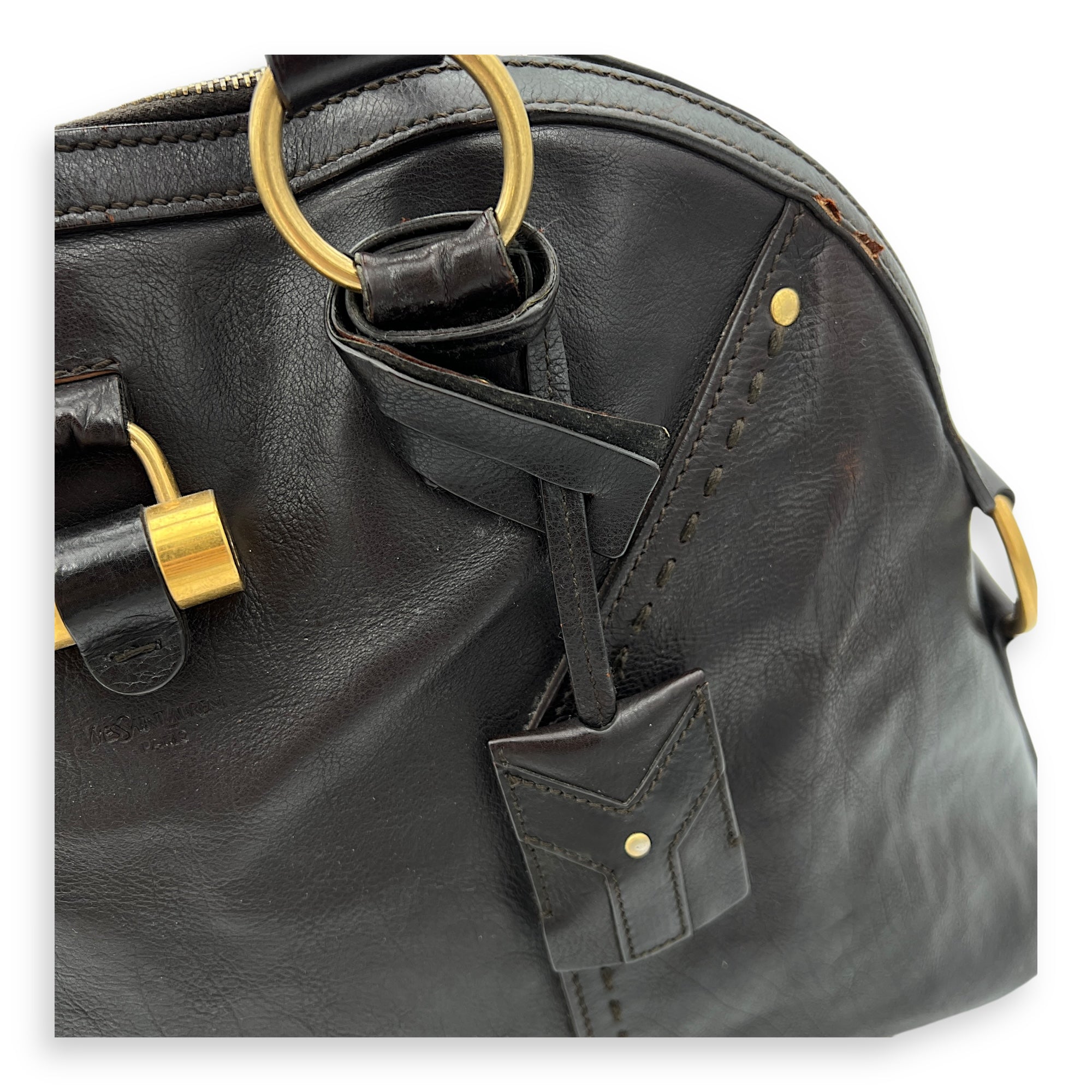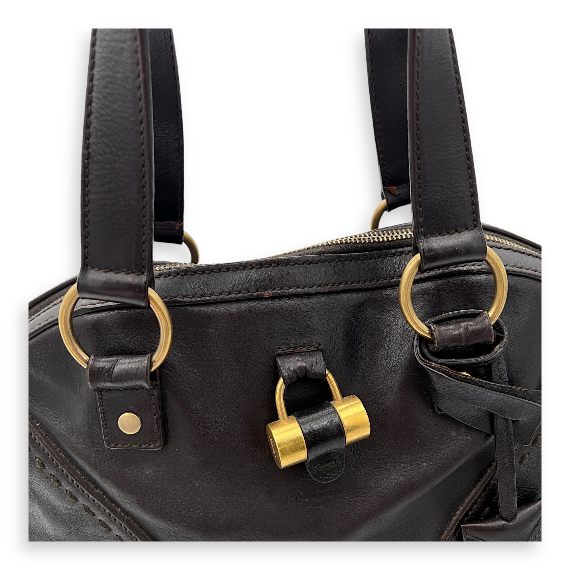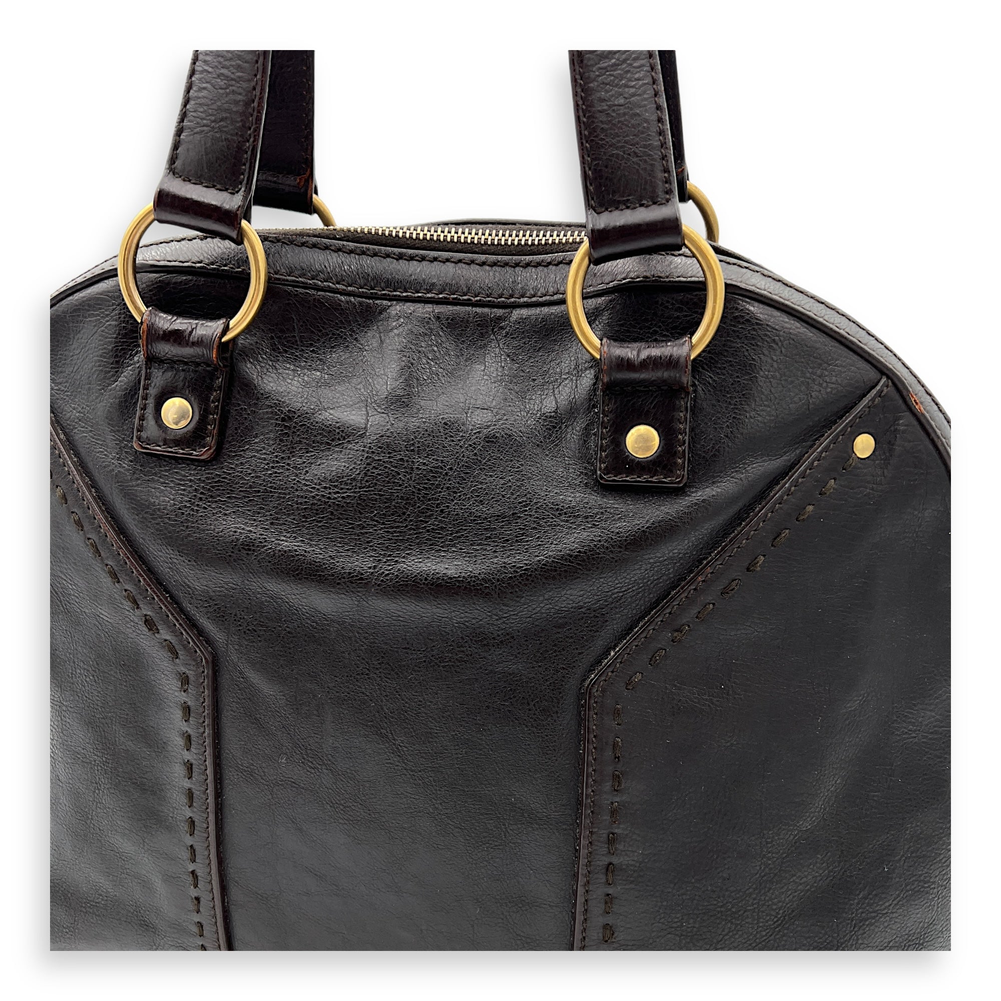 Bags Saint Laurent Muse Shoulder Bag Brown in Calfskin, Gold hardware Good Condition Brown Shoulder Bag Women Lady Girl