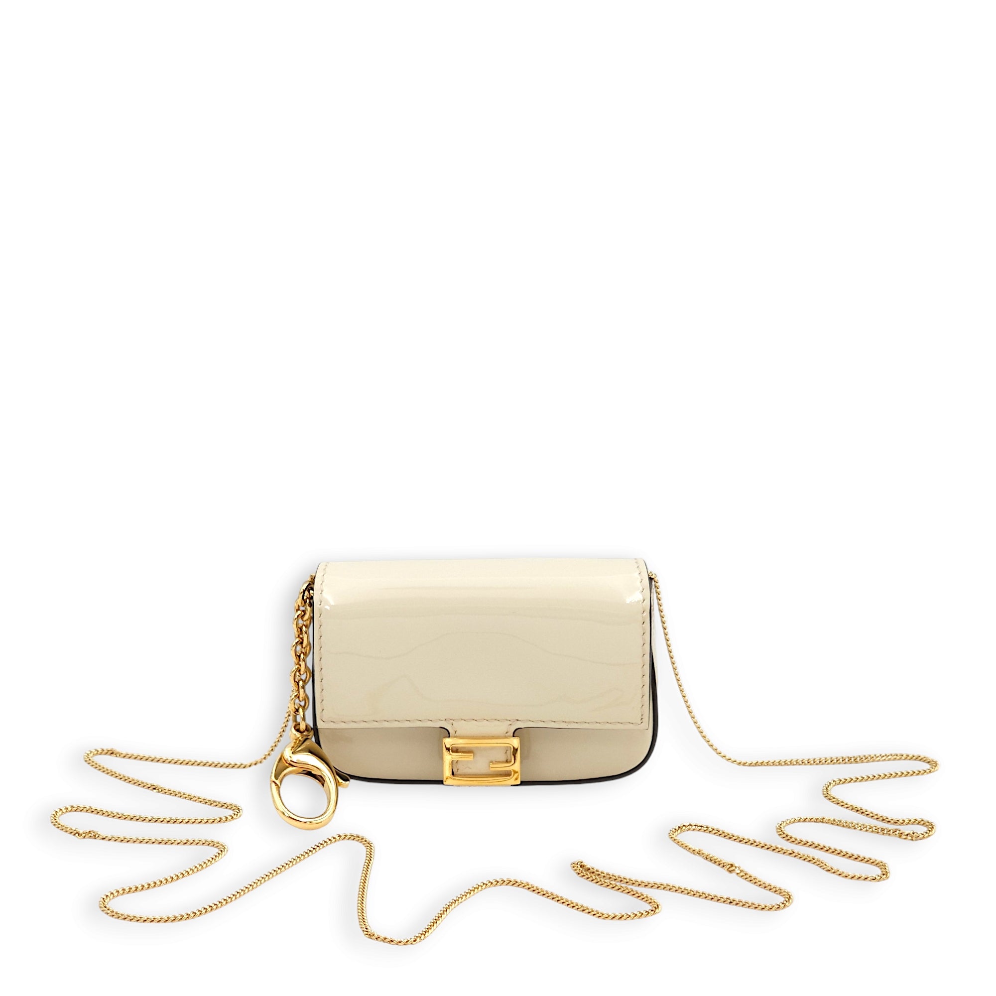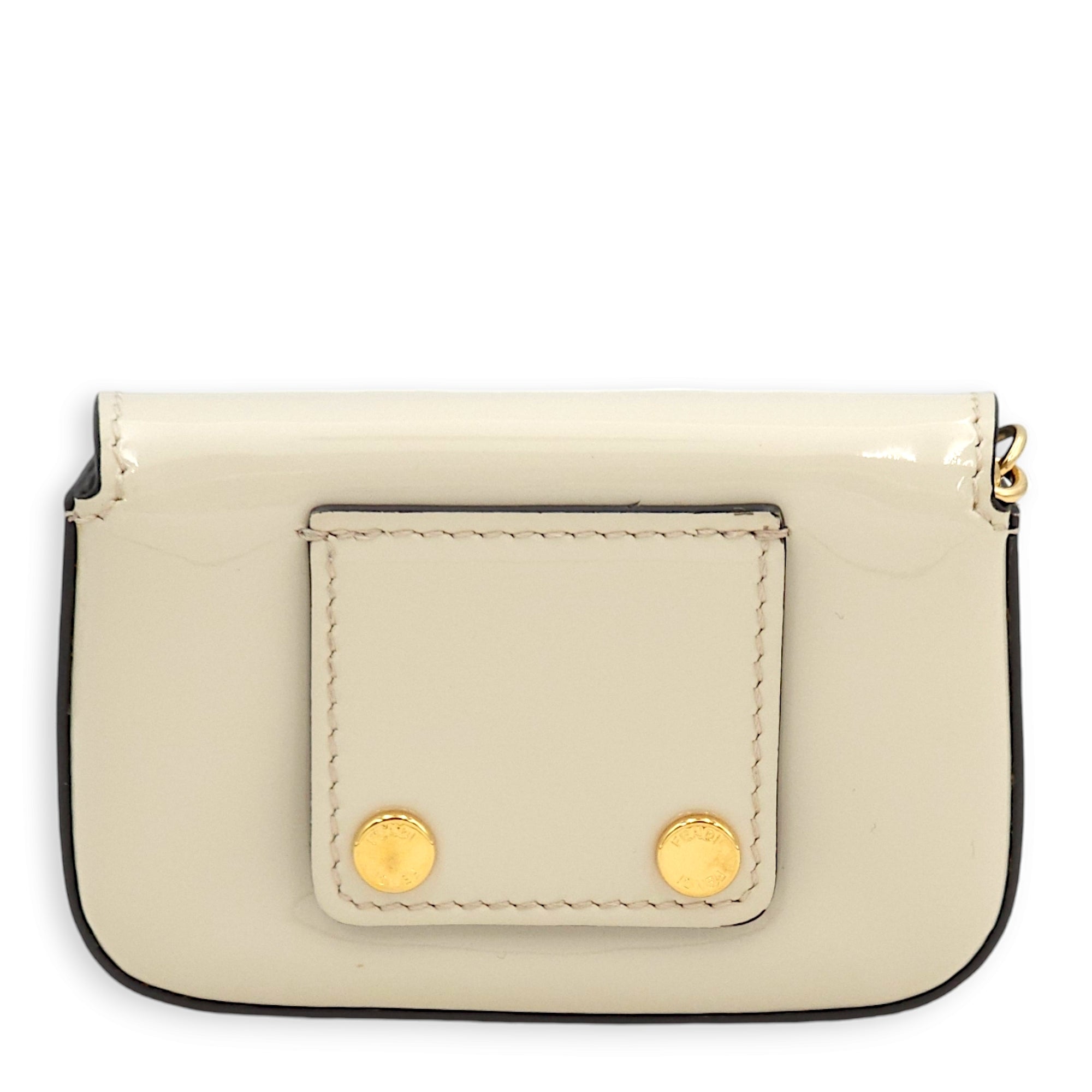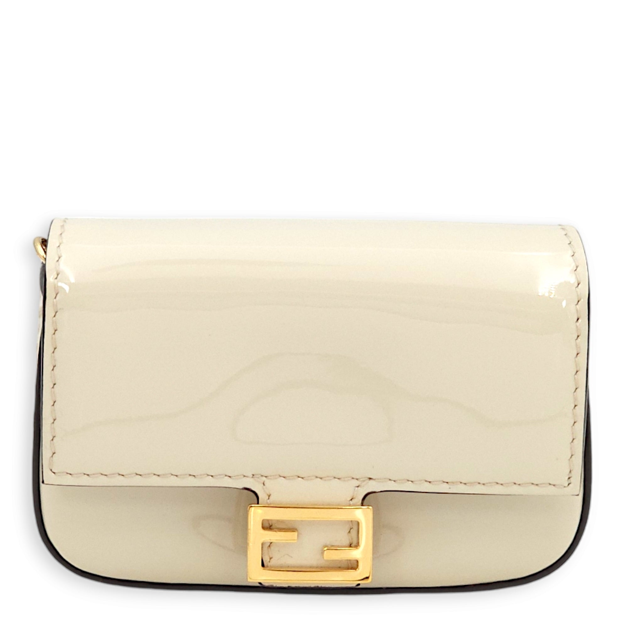 Fendi Nano Baguette Belt bag Cream Charm in Patent Leather, Gold hardware Small Leather Goods Charm Cream White Very Good Condition