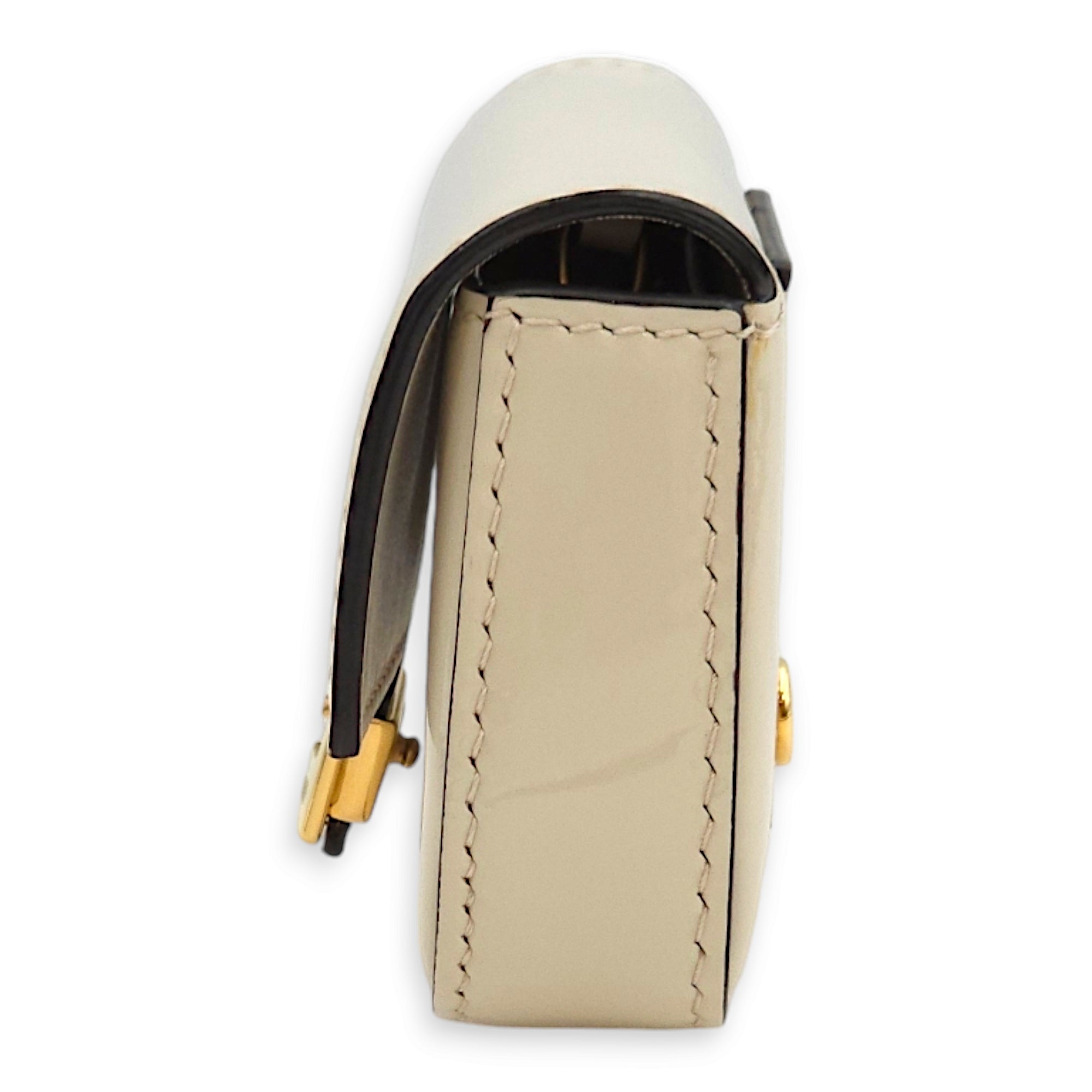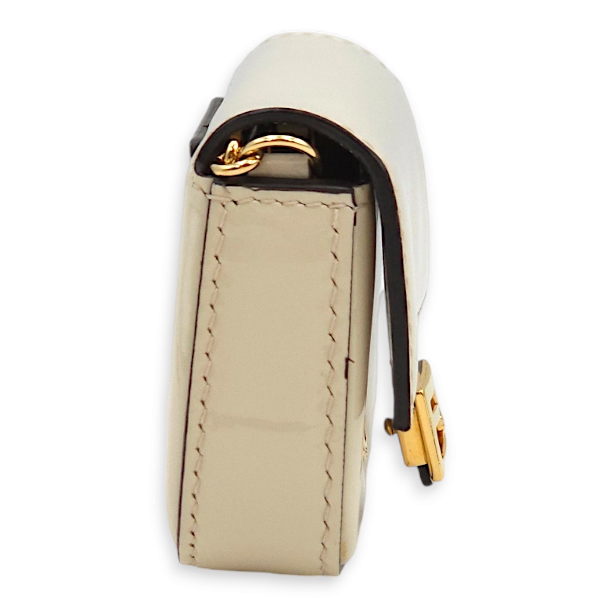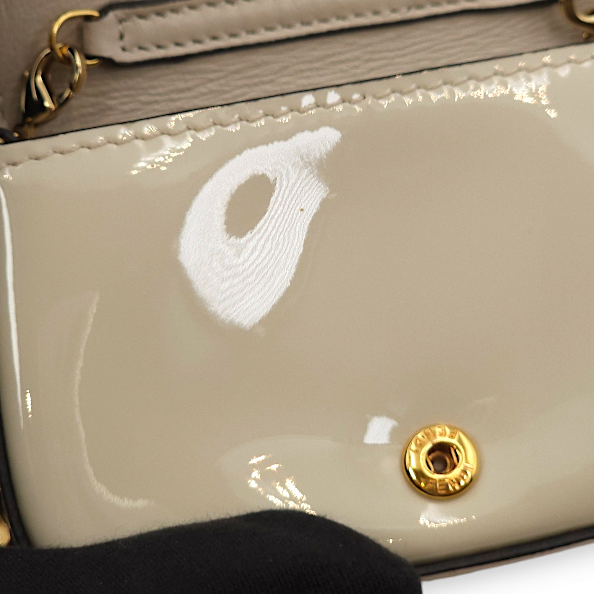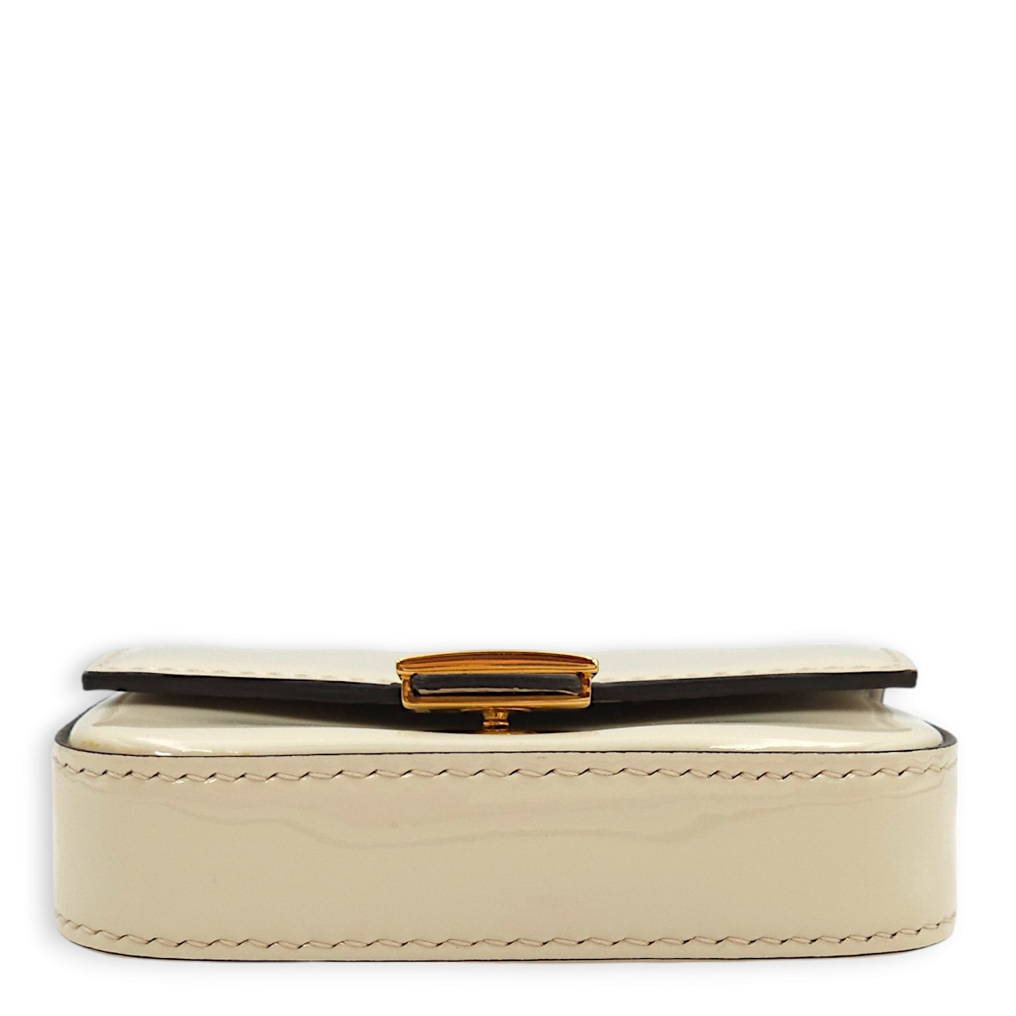 Fendi Nano Baguette Belt bag Cream Charm in Patent Leather, Gold hardware Small Leather Goods Charm Cream White Very Good Condition