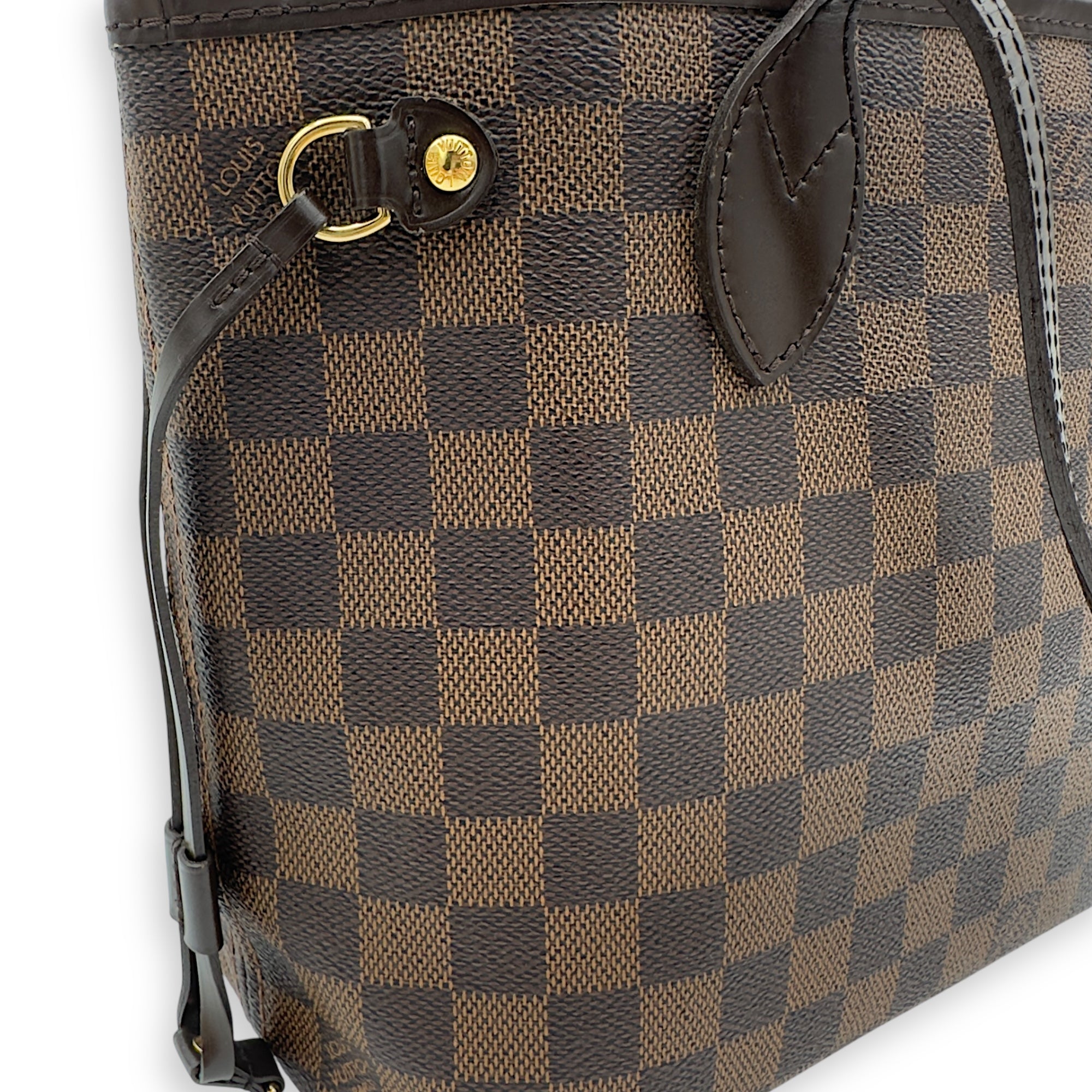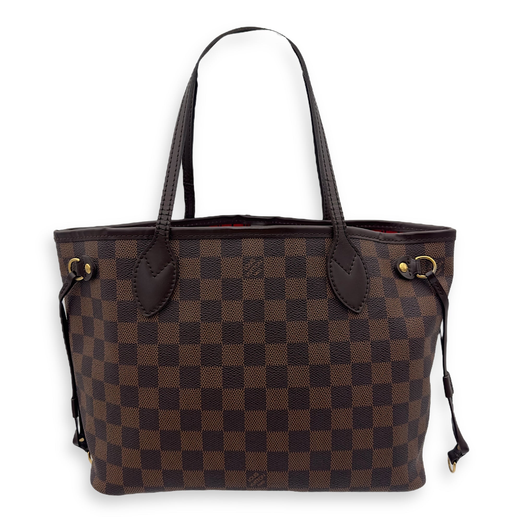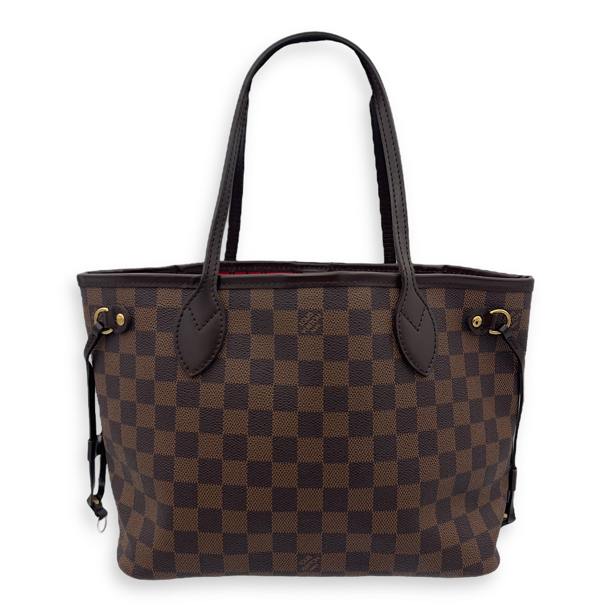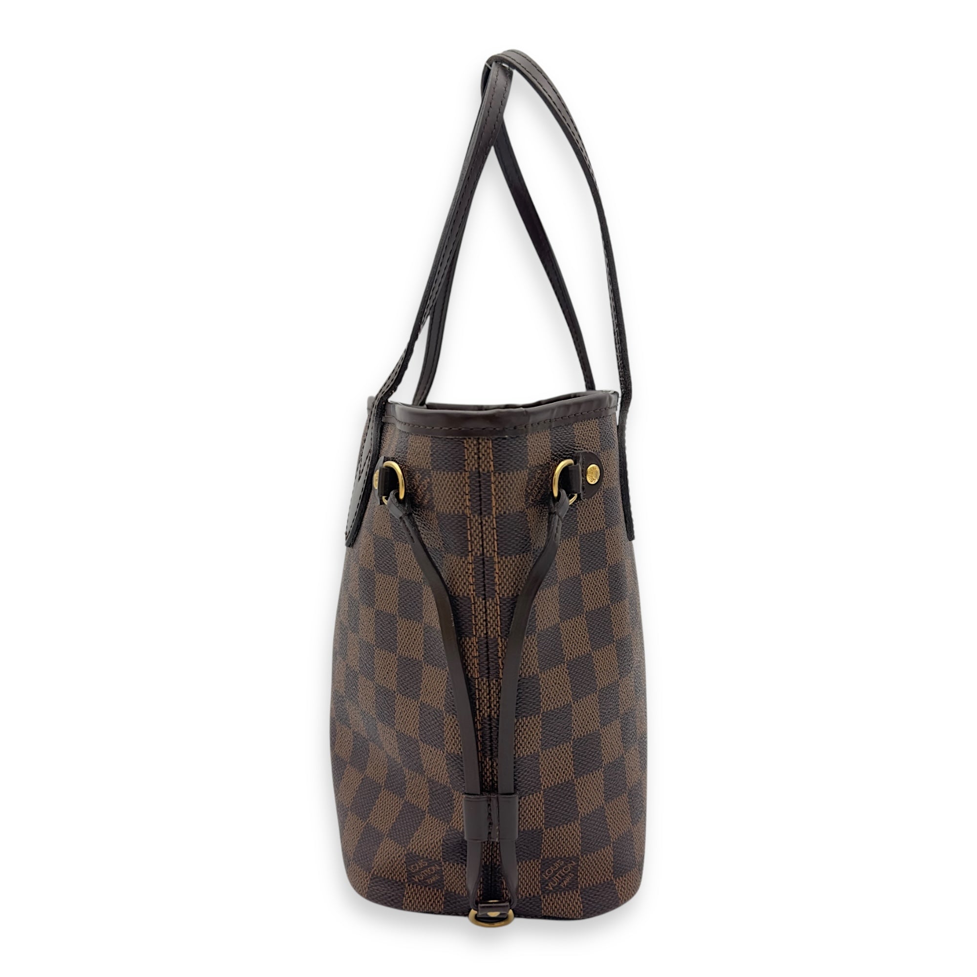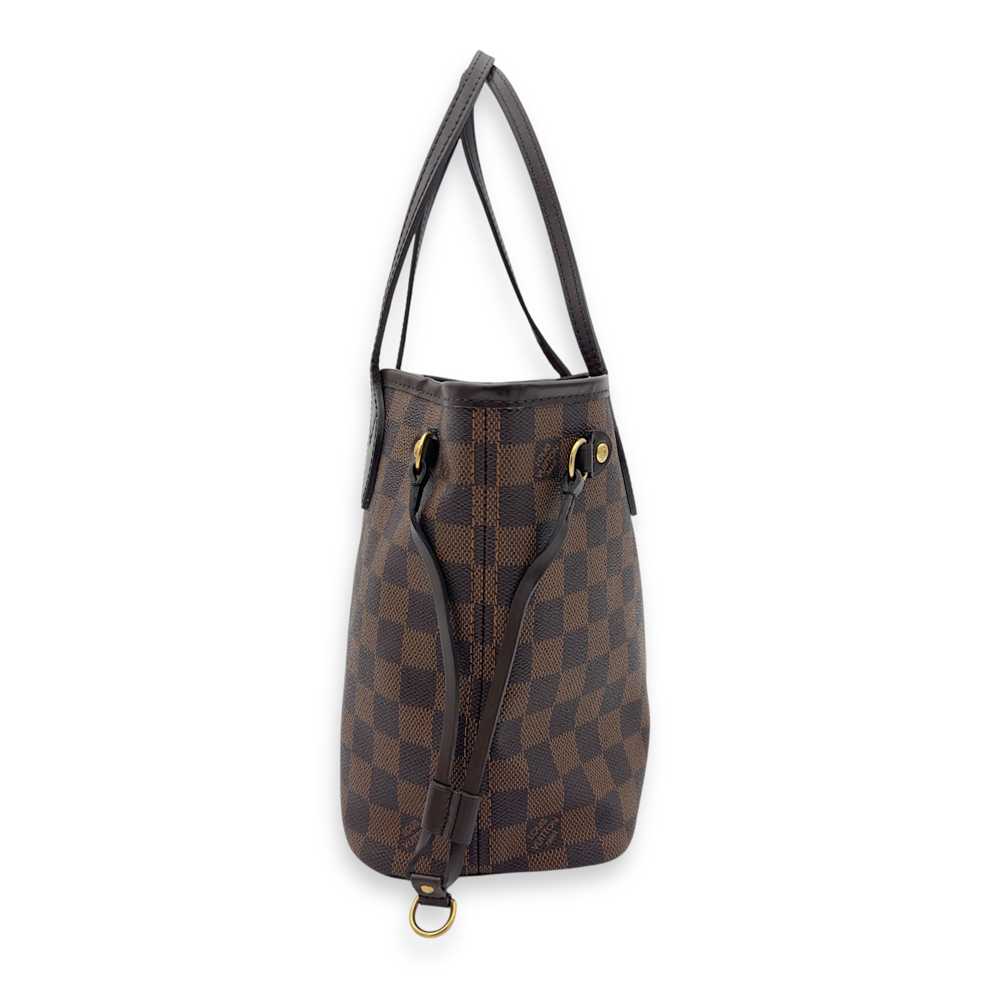 Neverfull PM Brown Tote Bag in Coated Canvas, Gold hardware