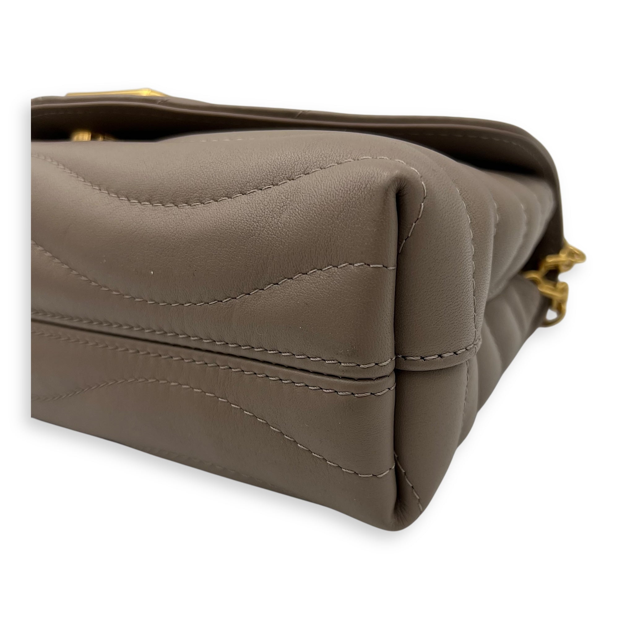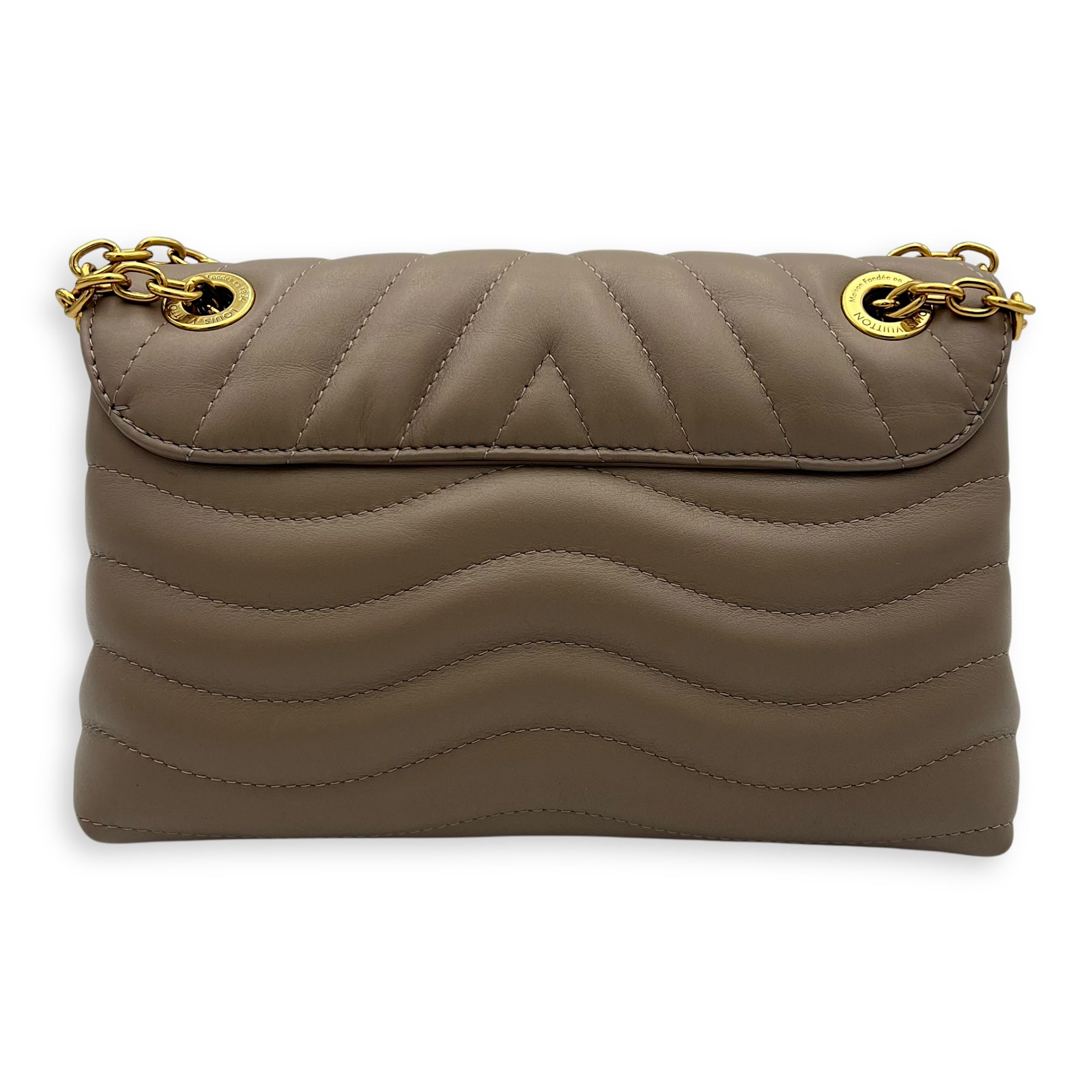 New Wave MM Beige Shoulder Bag in Calfskin, Gold hardware