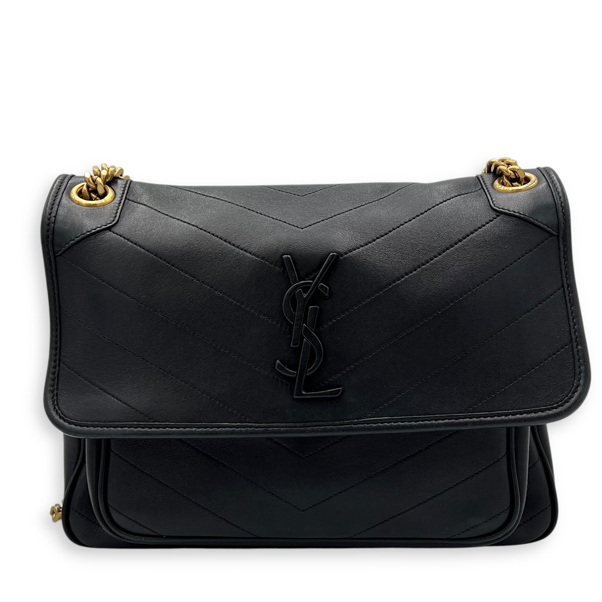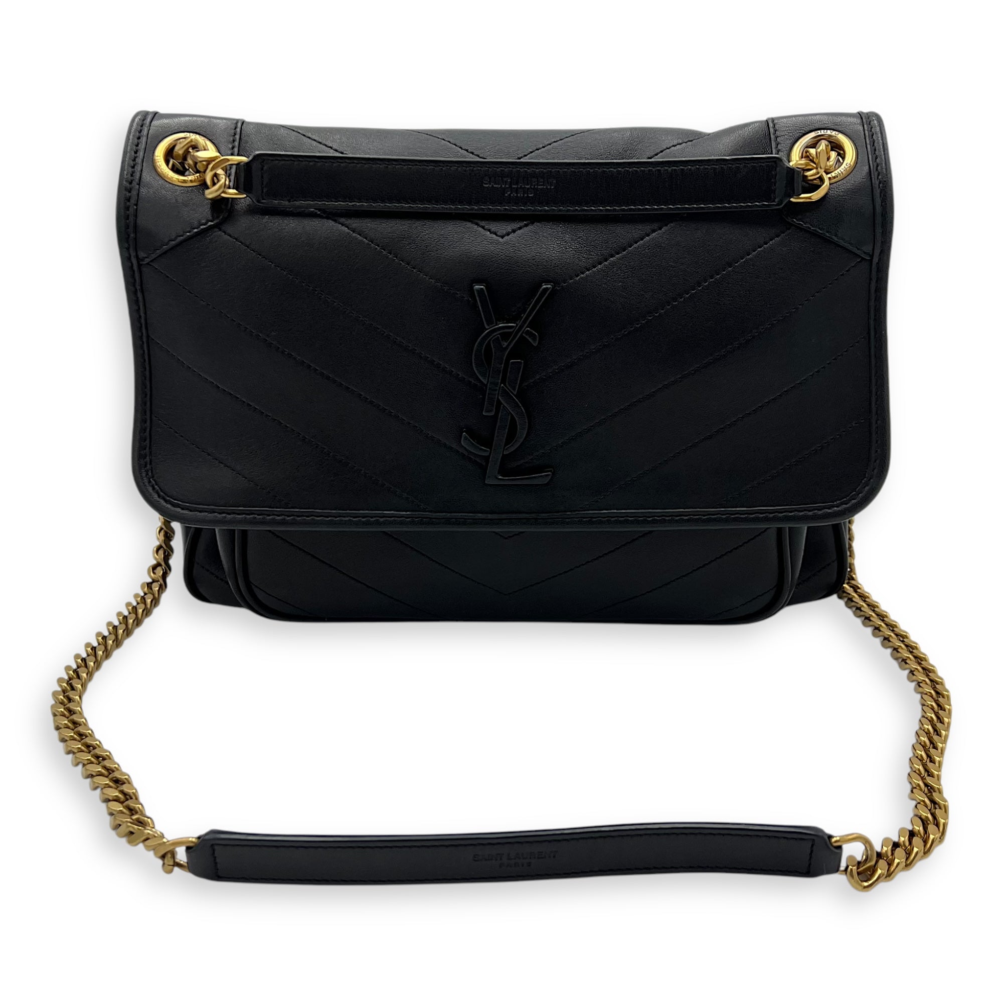 Bags Saint Laurent Niki Medium Black Shoulder Bag in Lambskin, Gold hardware Good Condition Black Shoulder Bag Women Lady Girl