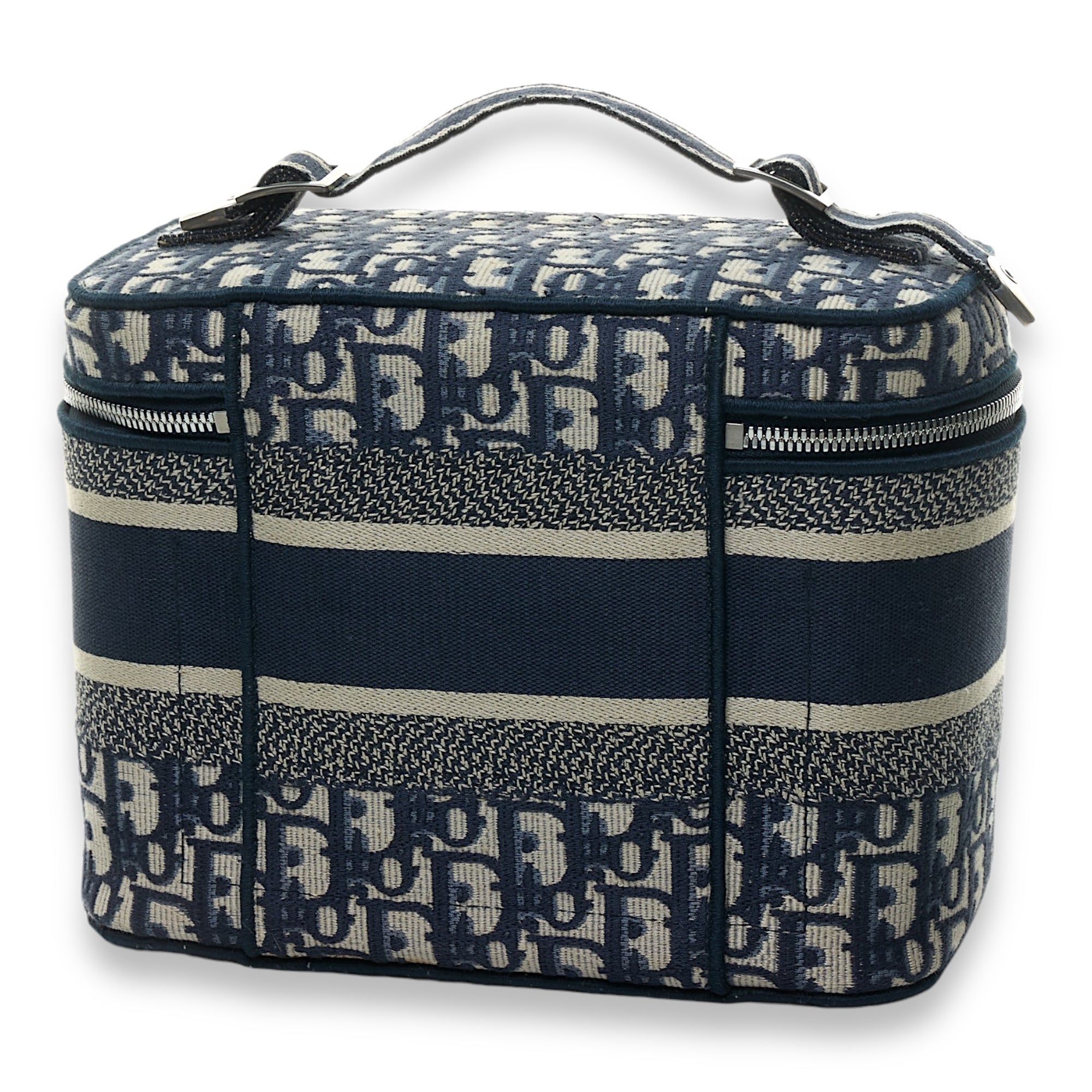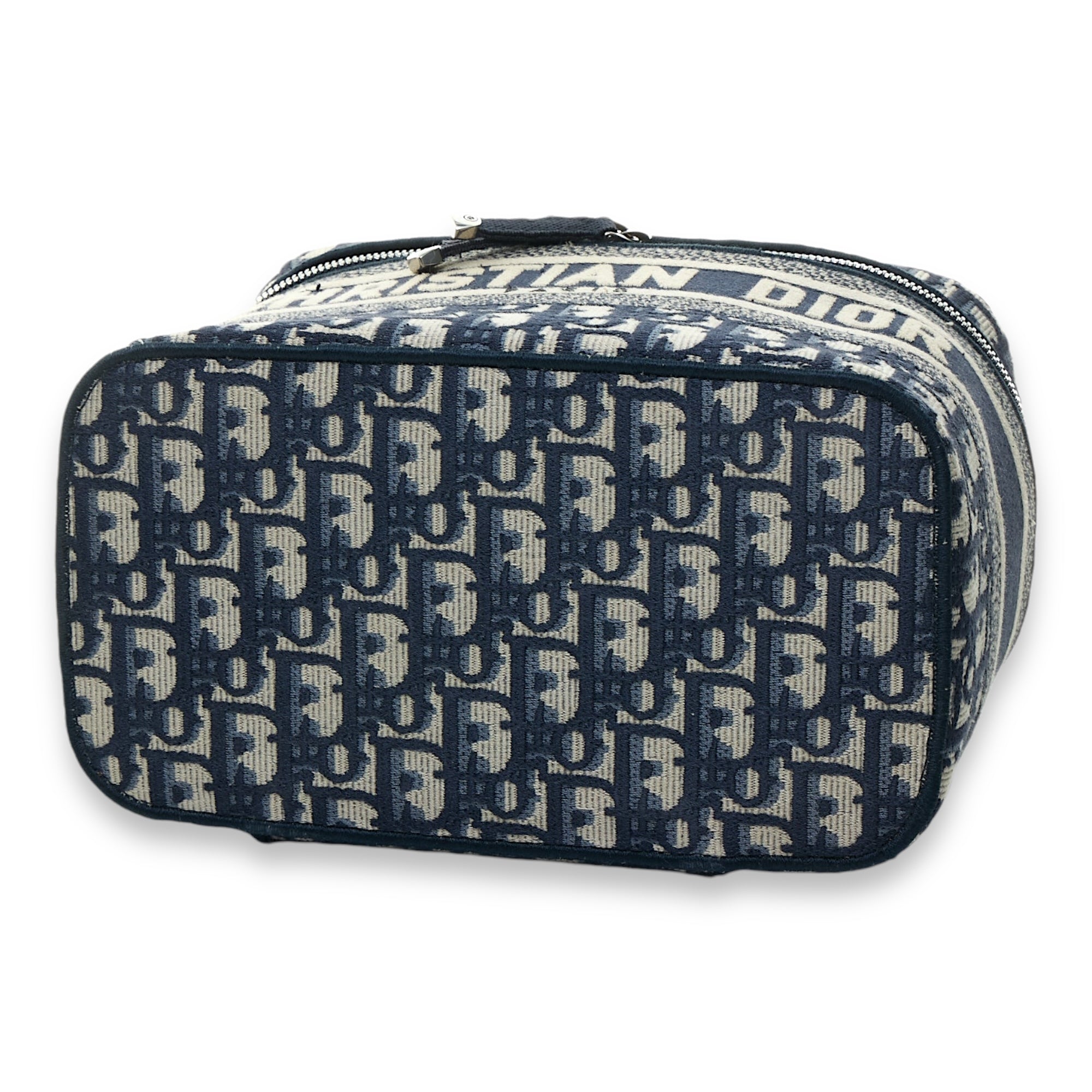 Bags Christian Dior Oblique Vanity Top handle bag in Jacquard, Silver Hardware Very Good Condition Blue Top Handle Bag Women Lady Girl