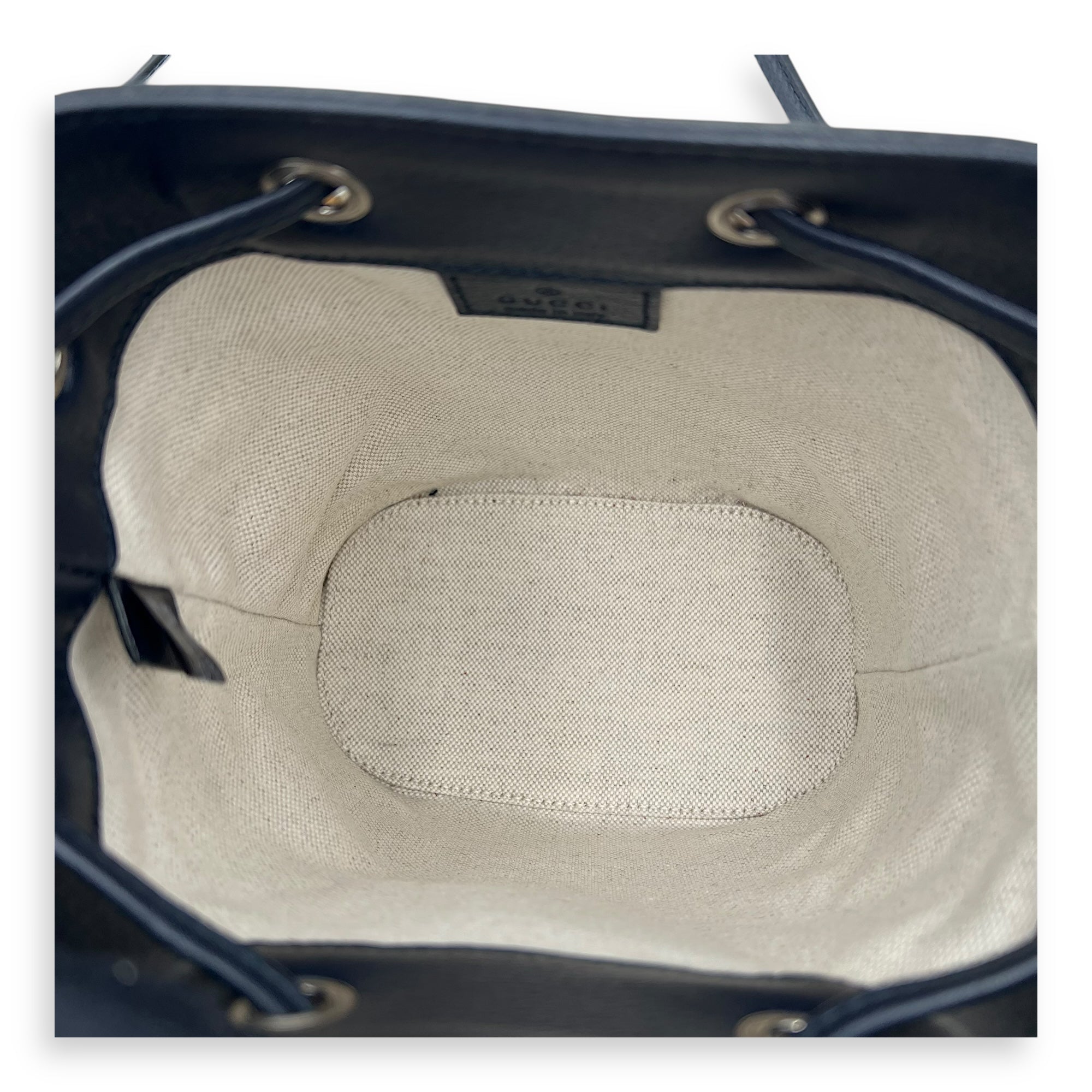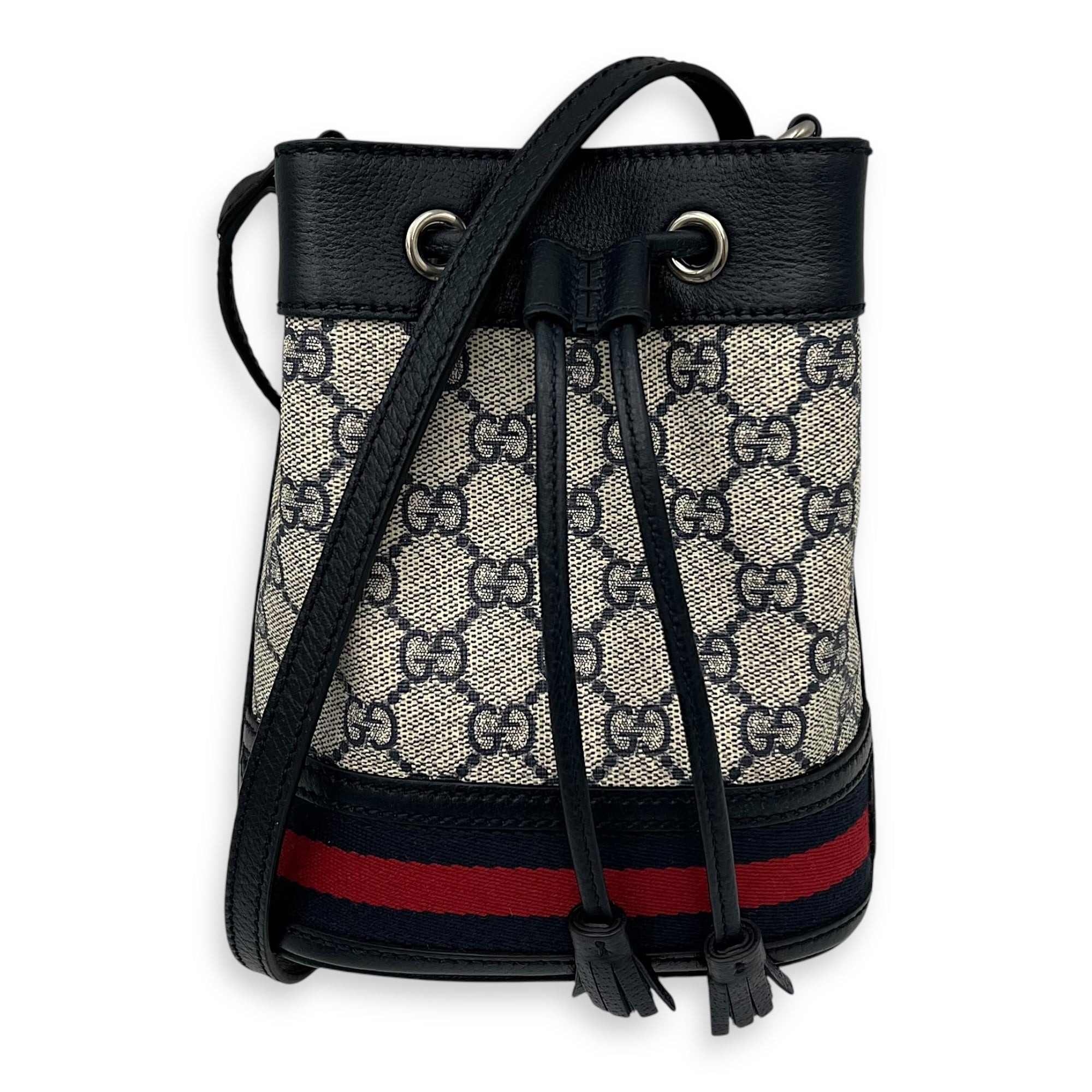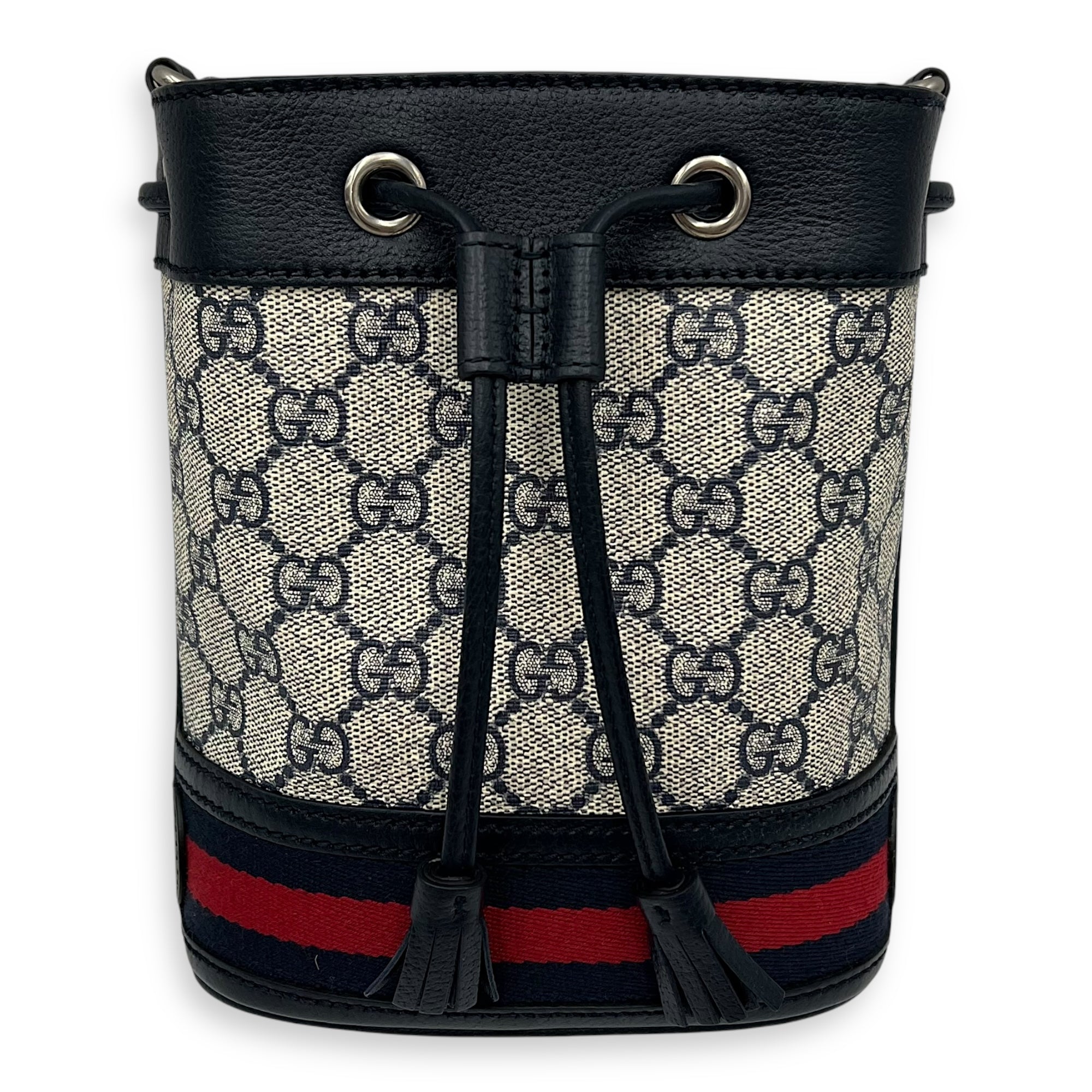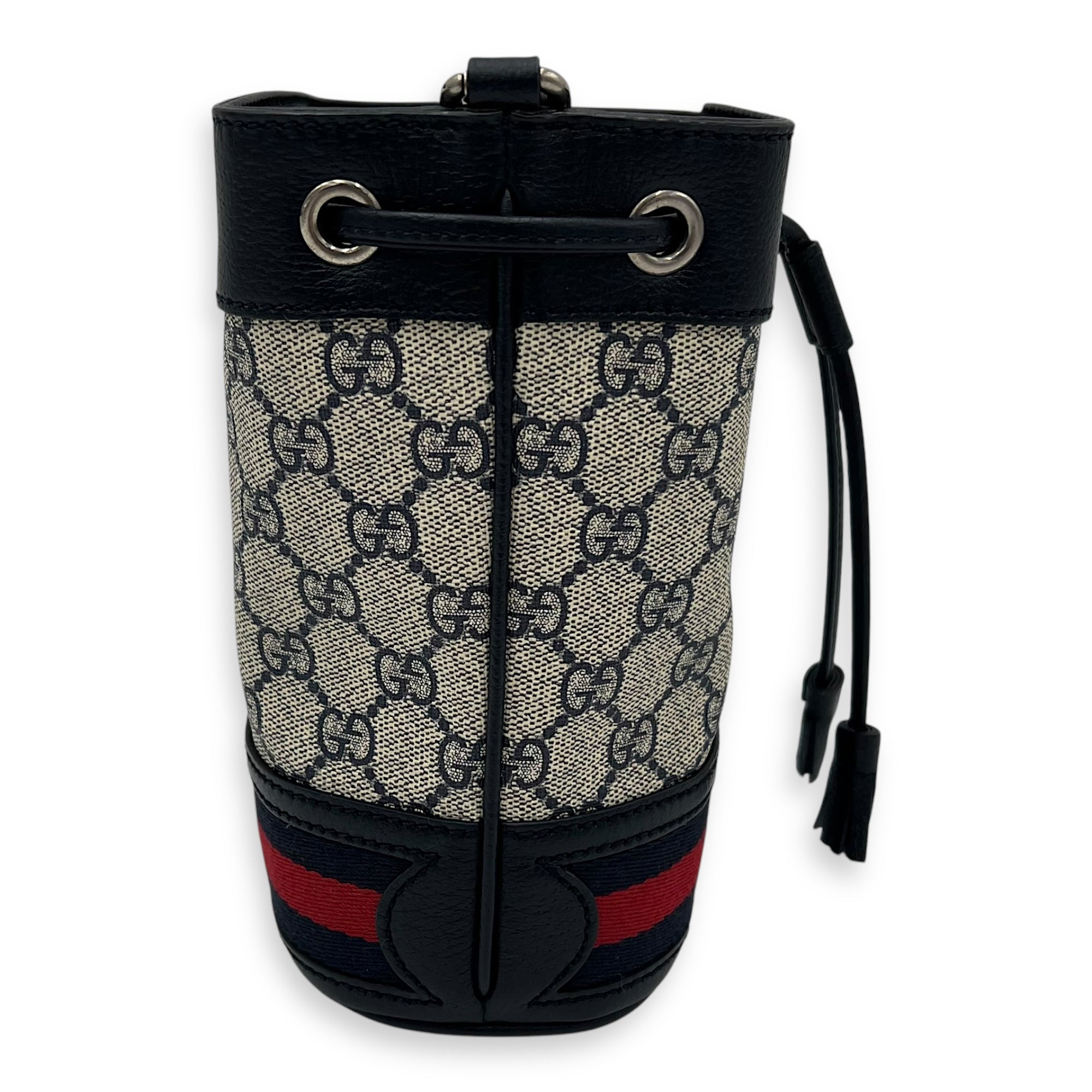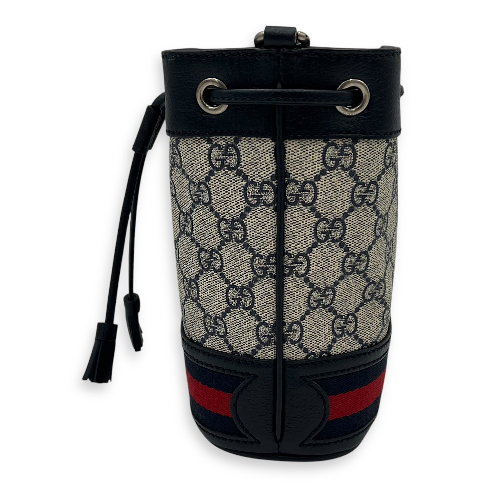 Ophidia Blue Bucket Bag in Monogram Coated Canvas, Silver hardware