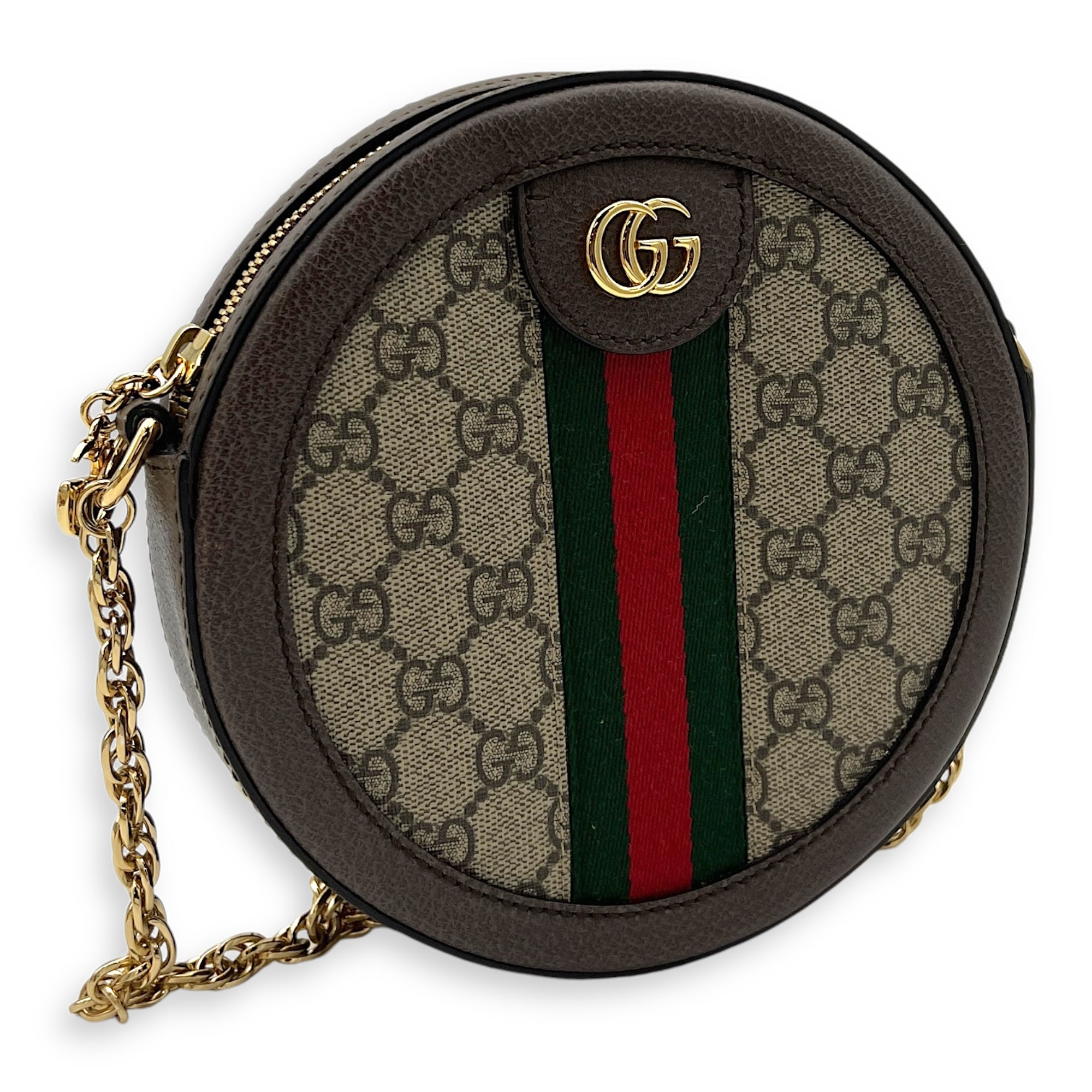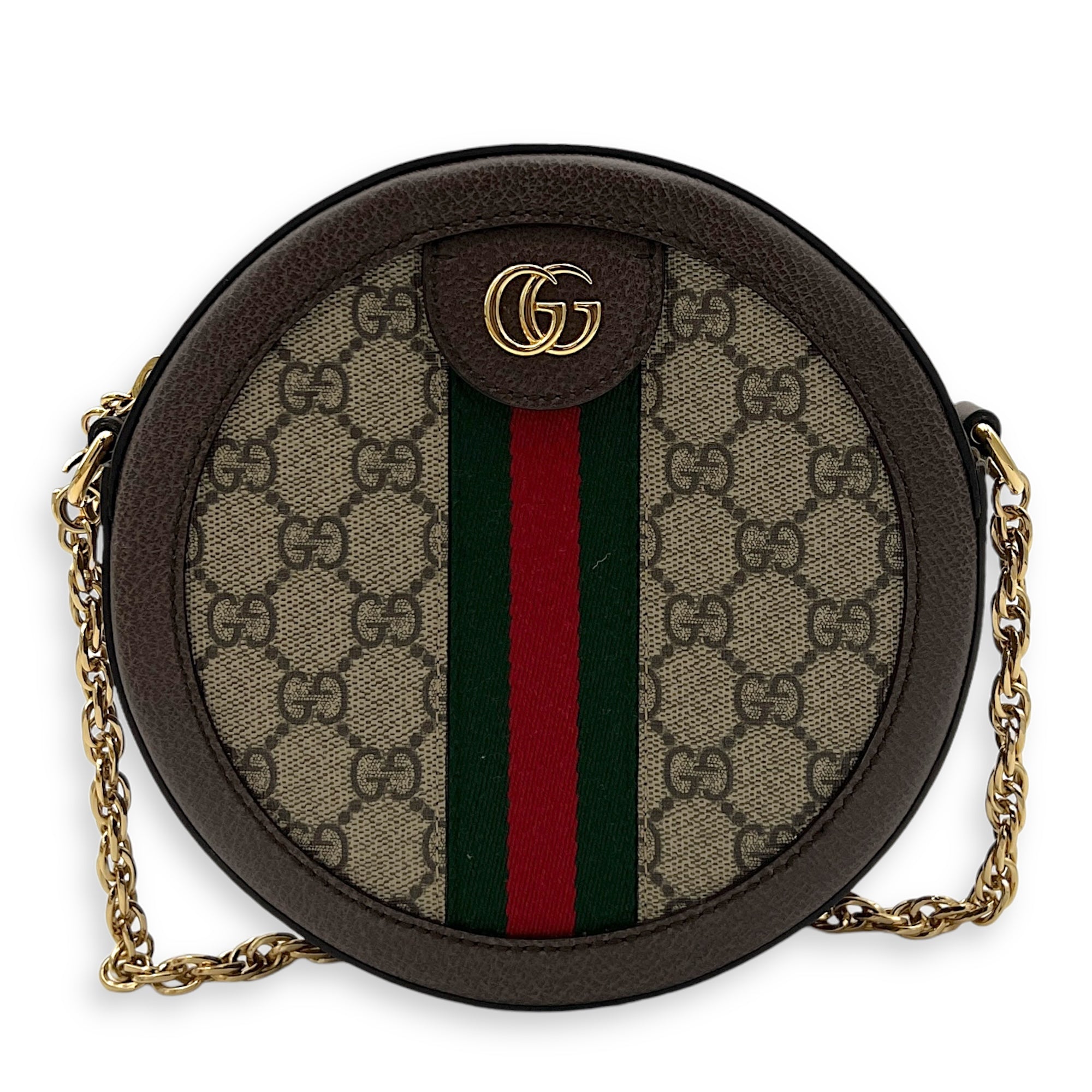 Bags Gucci Ophidia Round Brown Crossbody Bag in Monogram Coated Canvas, Gold hardware Very Good Condition Brown Crossbody Bag Women Lady Girl