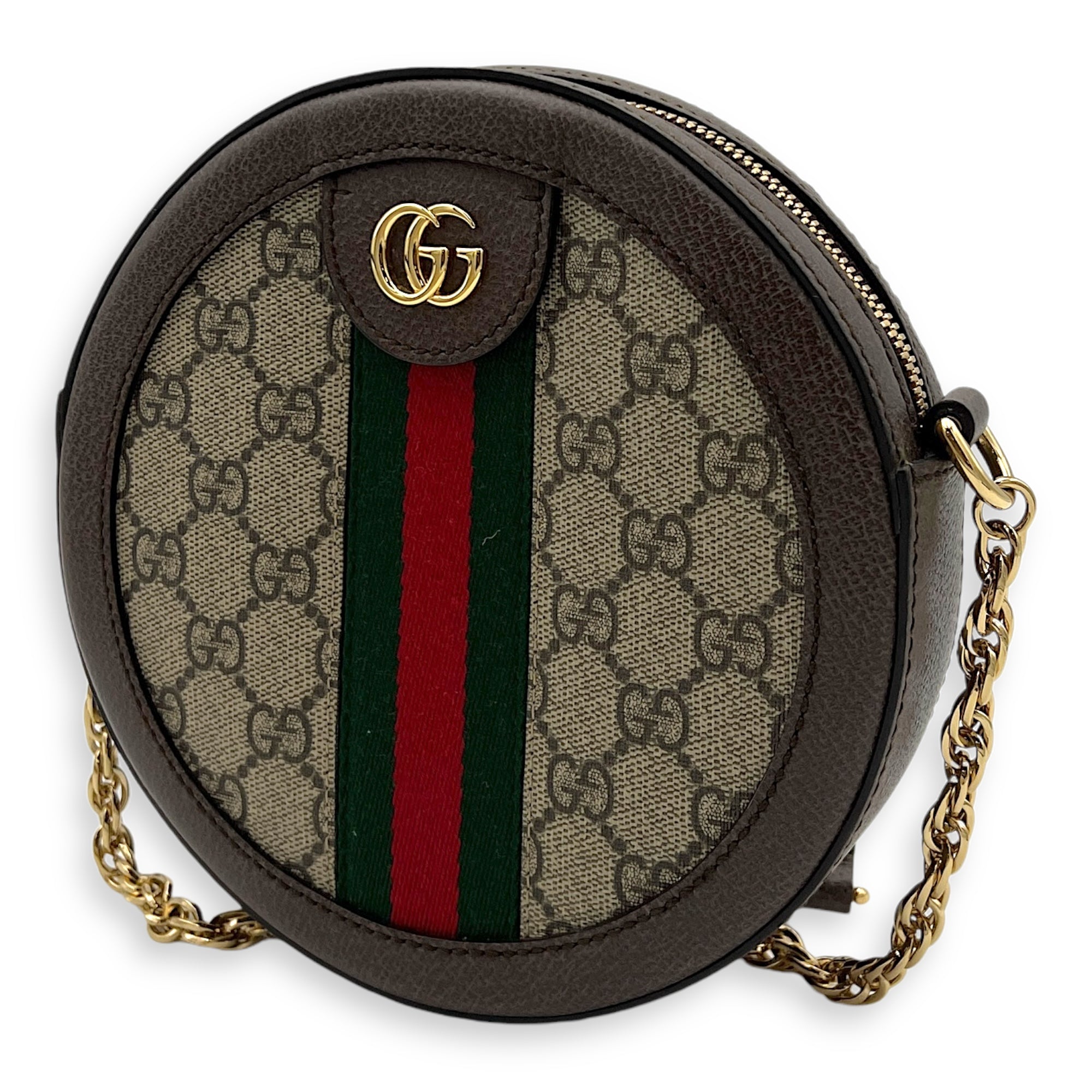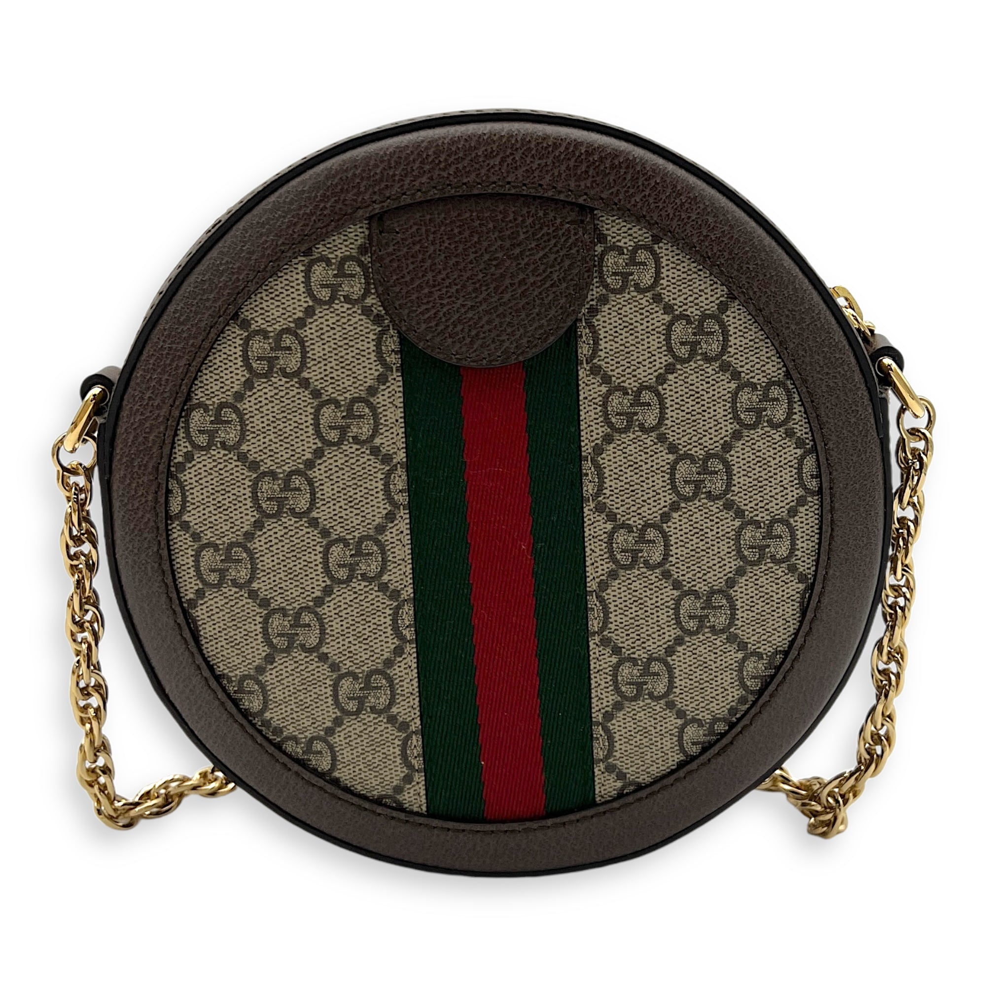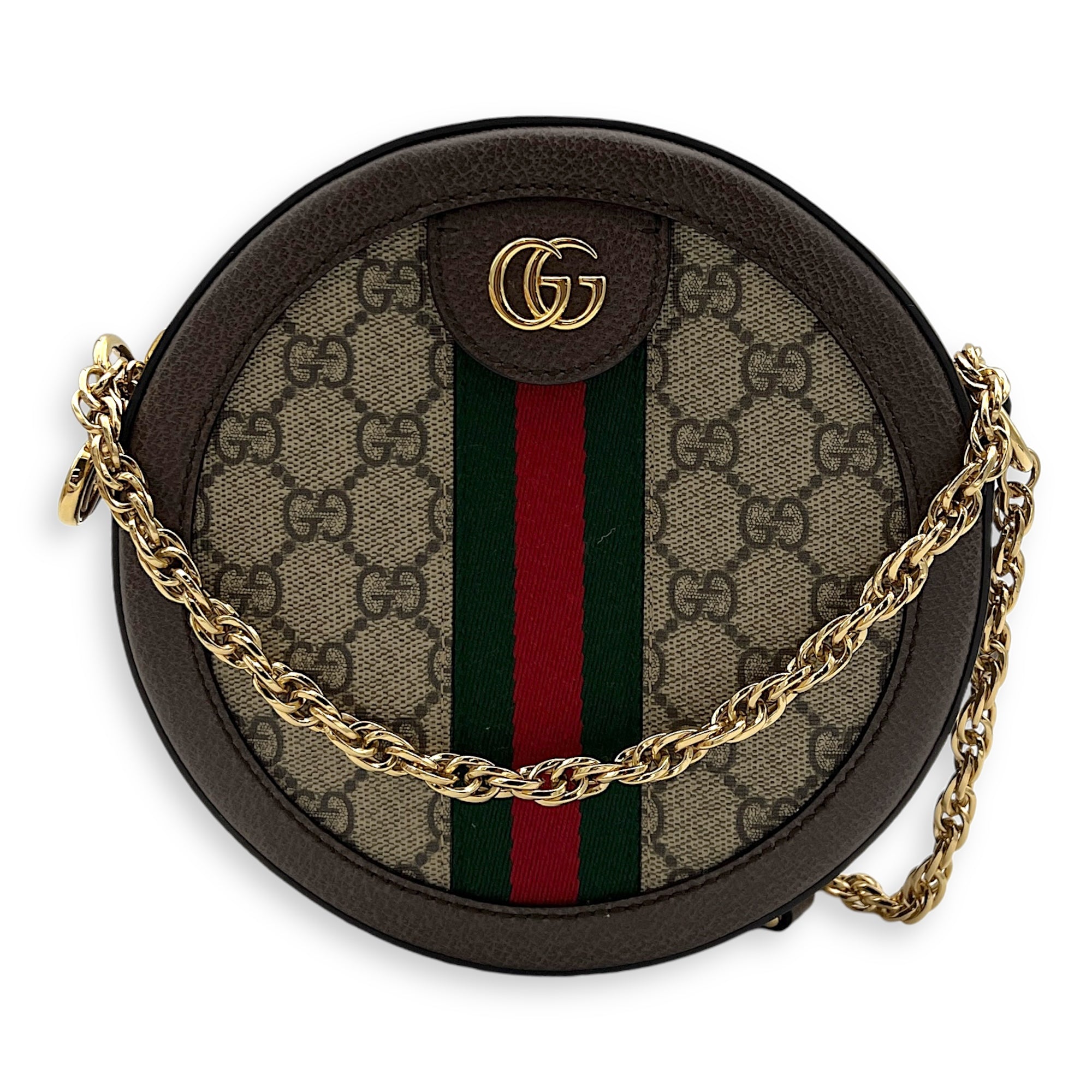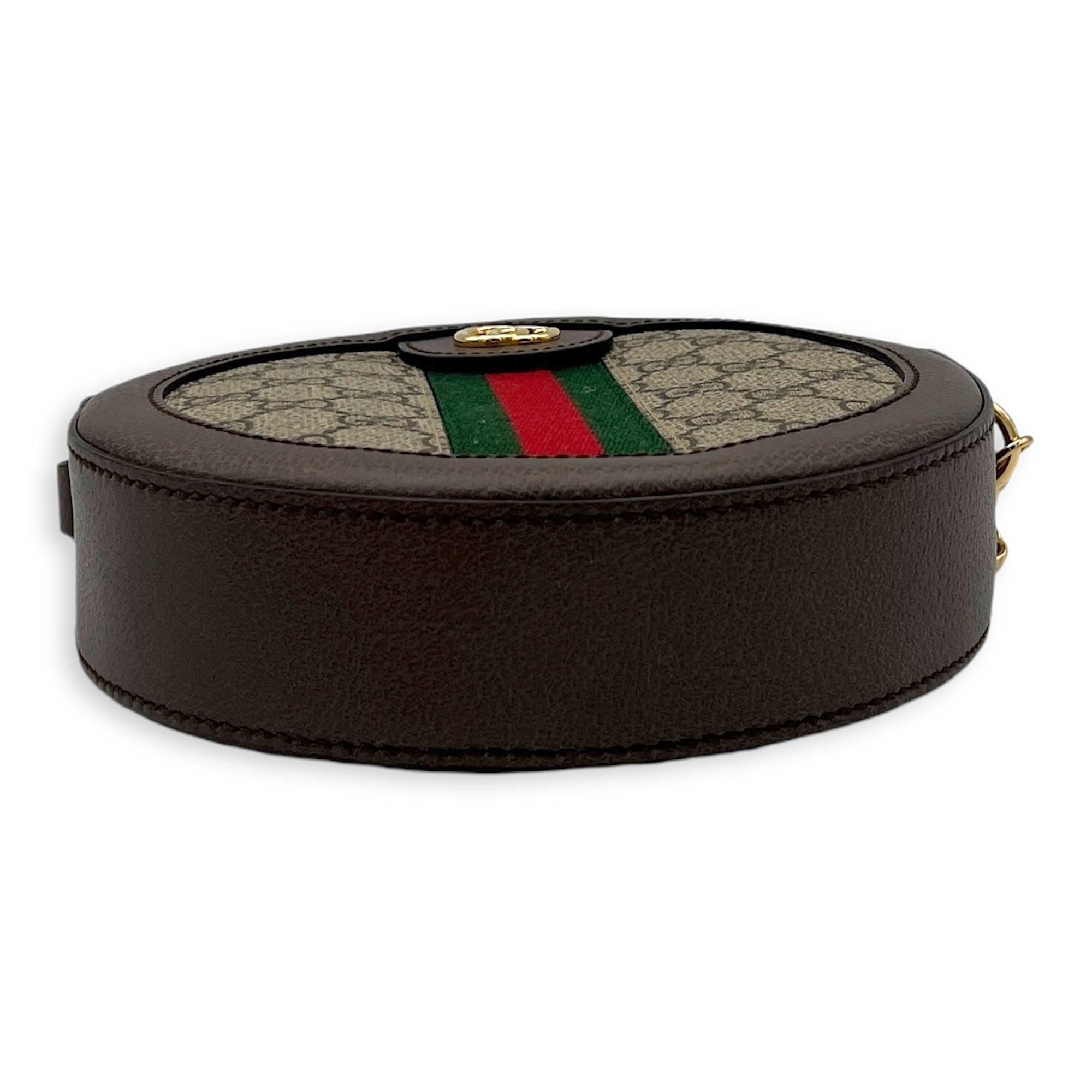 Ophidia Round Brown Crossbody Bag in Monogram Coated Canvas, Gold hardware
