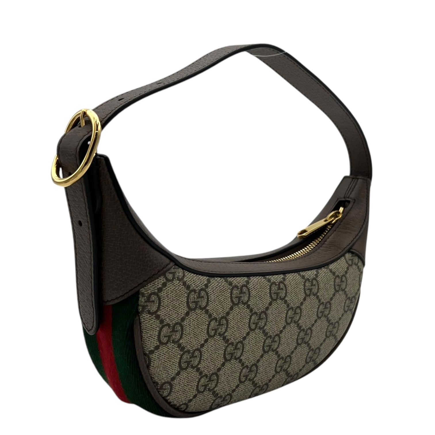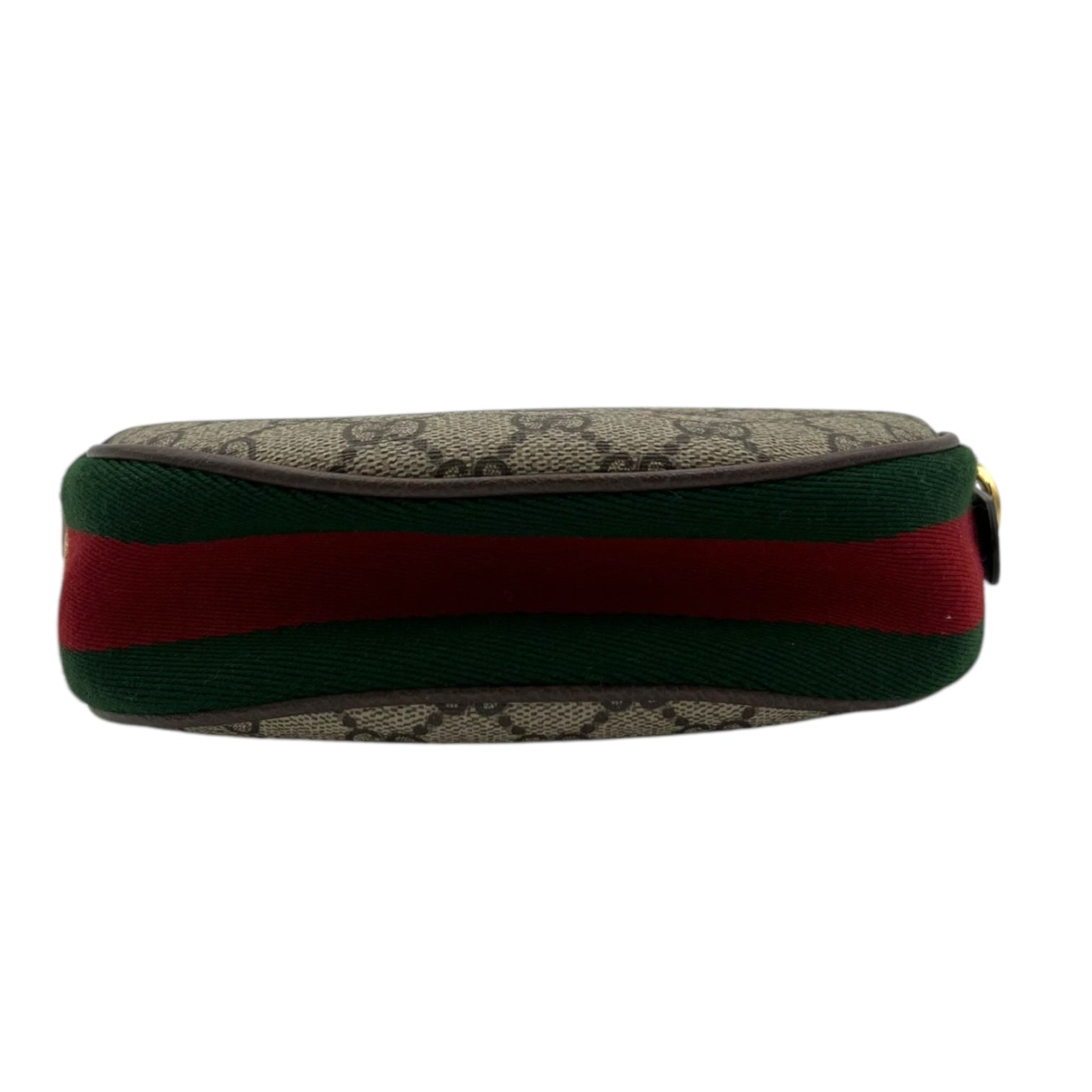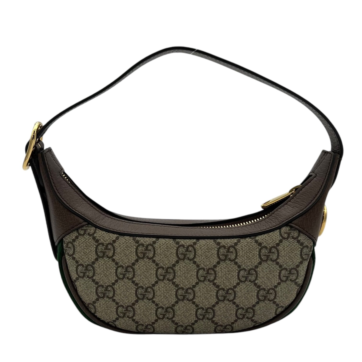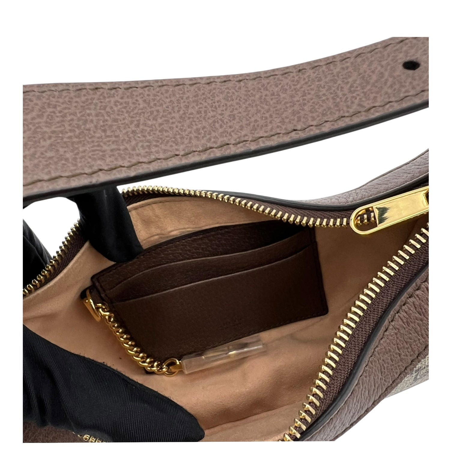 Ophidia Mini Brown Shoulder Bag in Coated Canvas, Gold hardware
