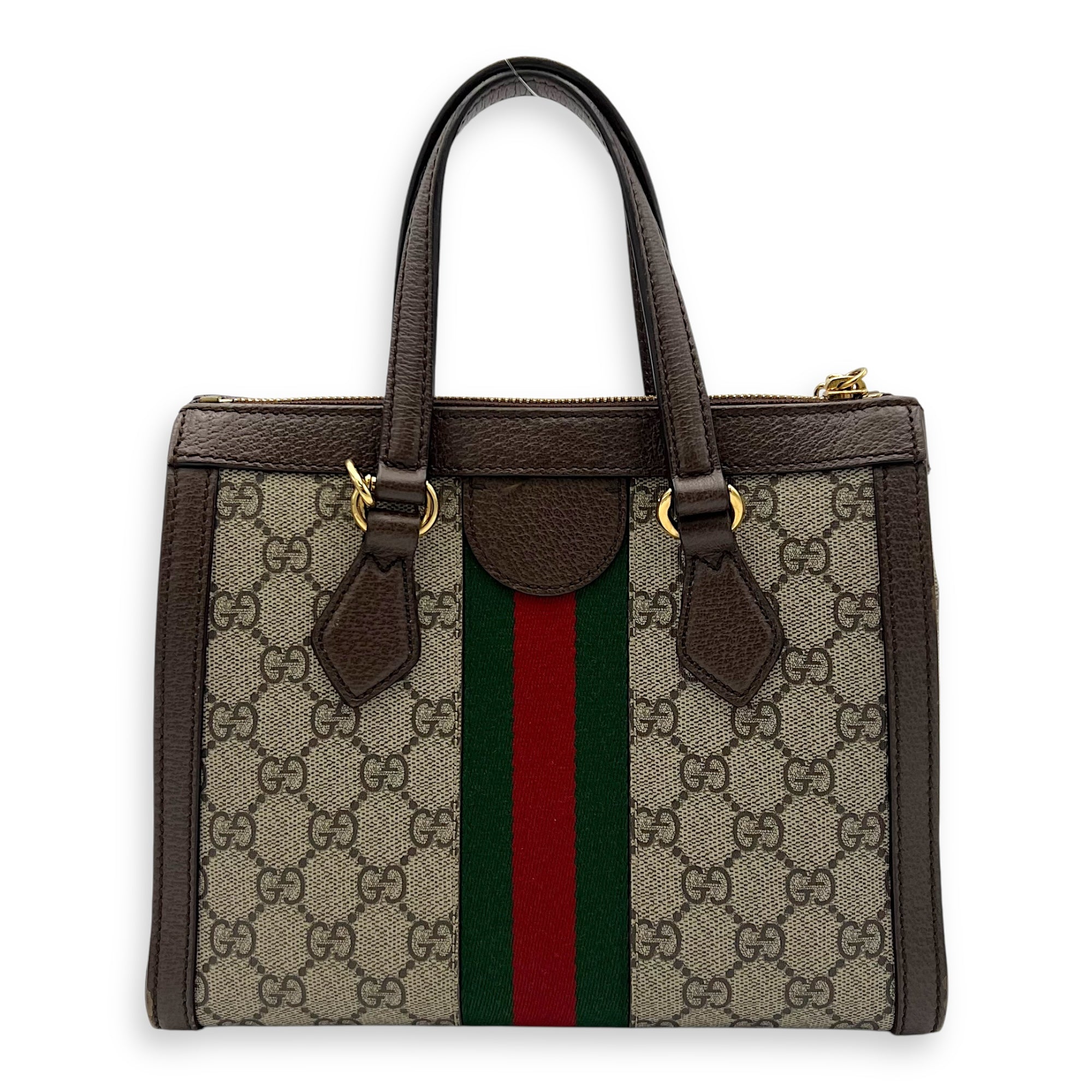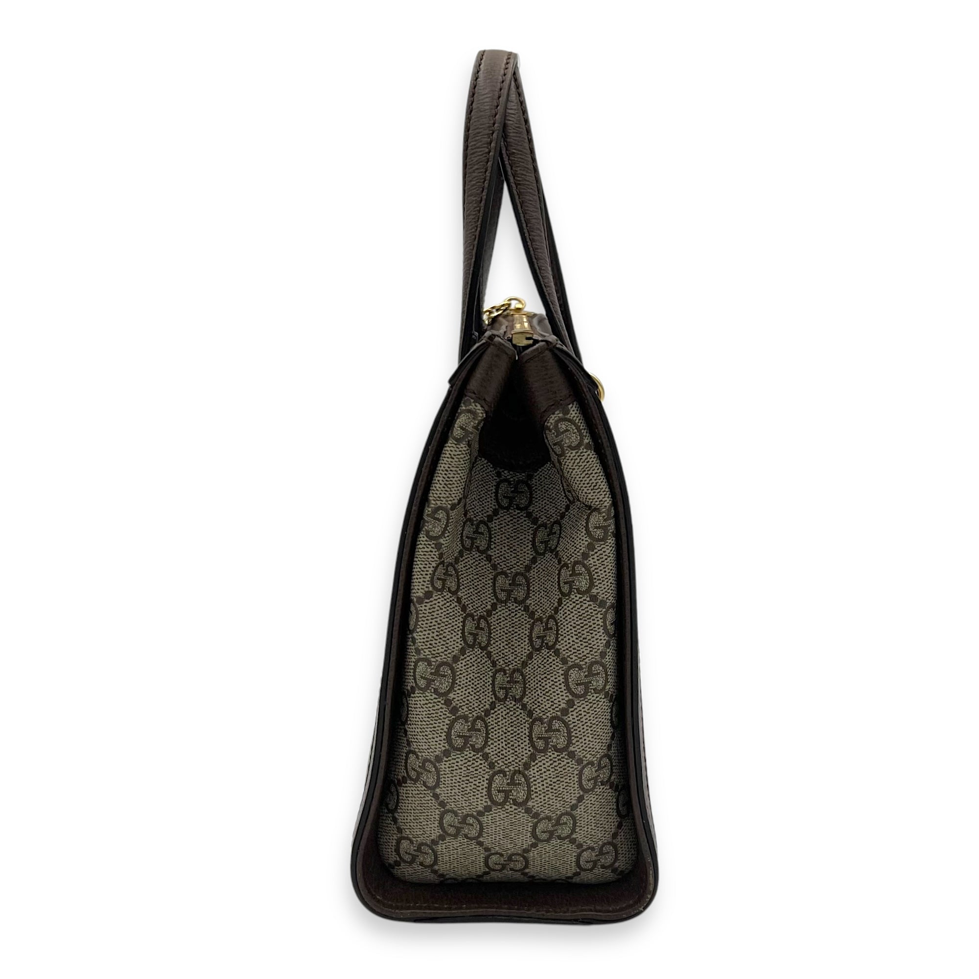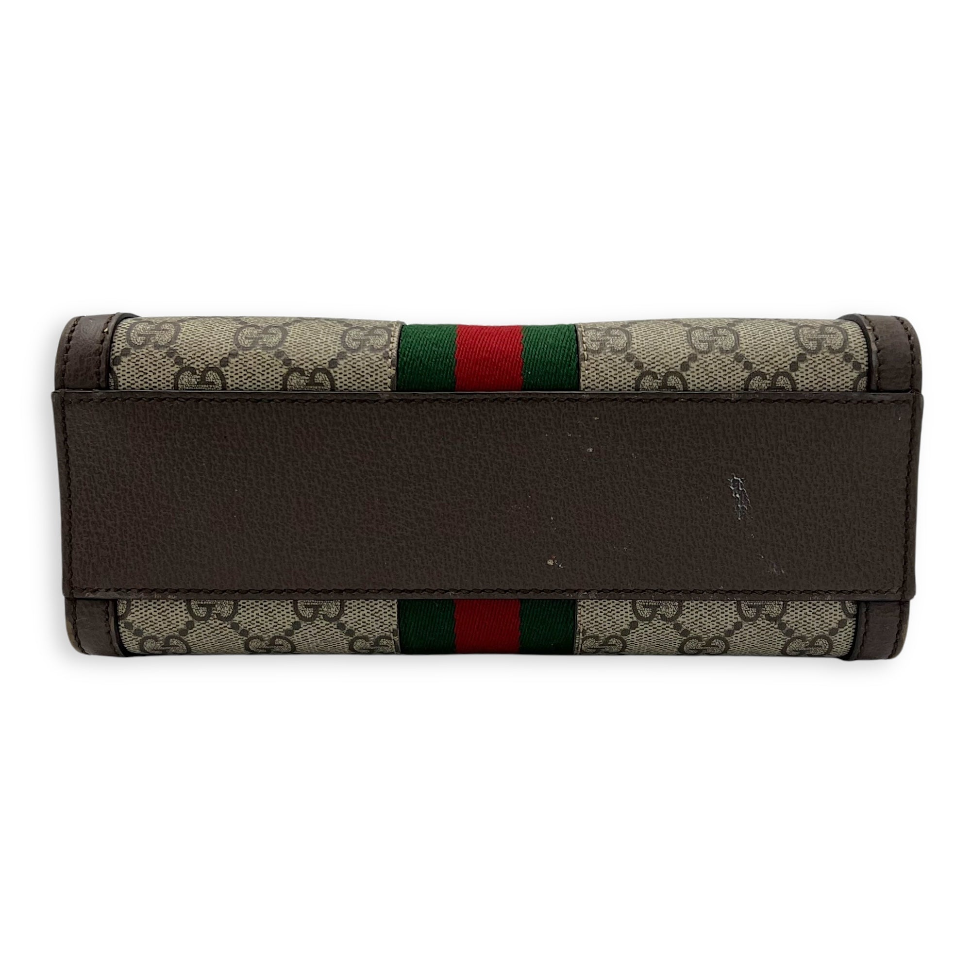 Bags Gucci Ophidia Top Handle Bag Brown in Coated Canvas, Silver hardware Good Condition Brown Top Handle Bag Women Lady Girl
