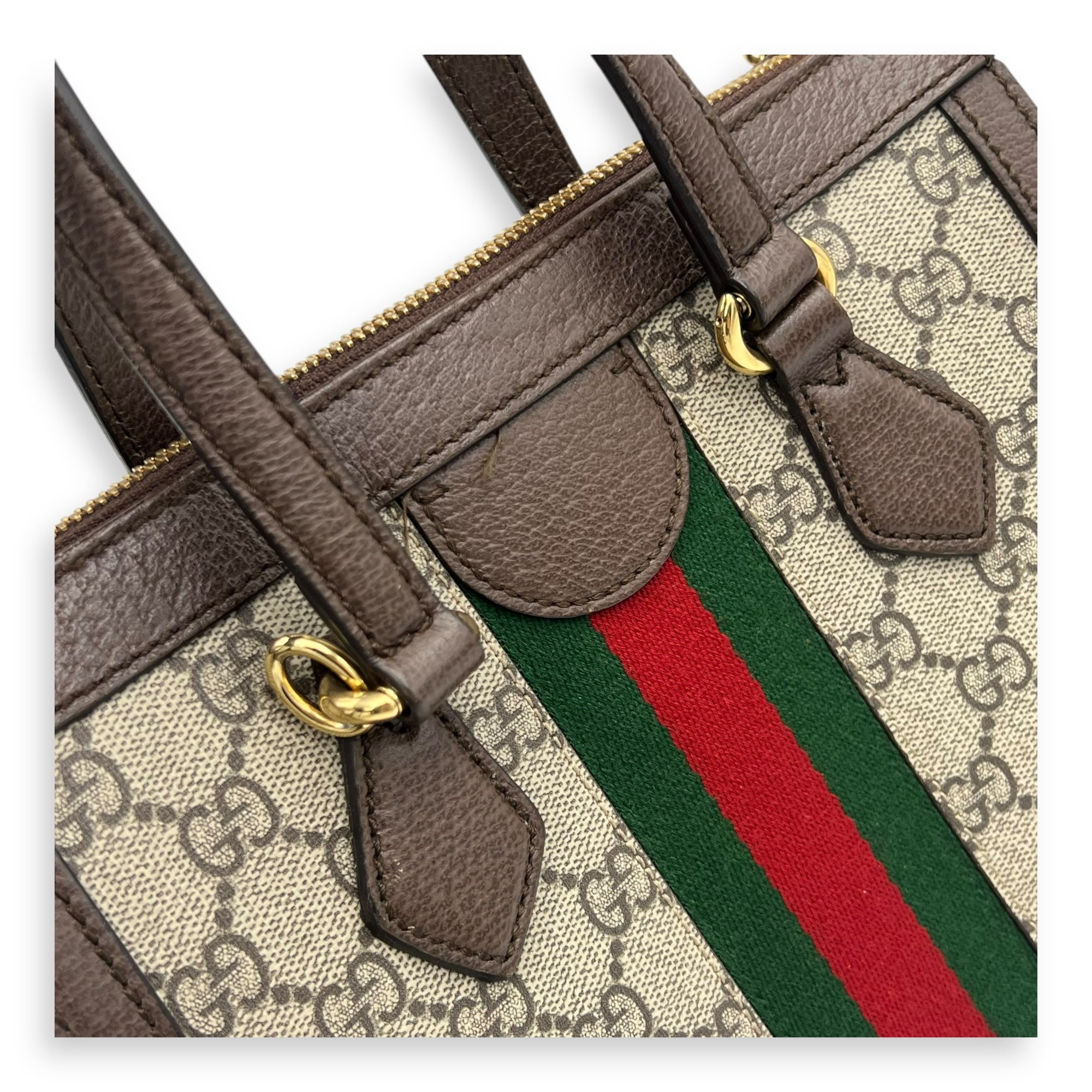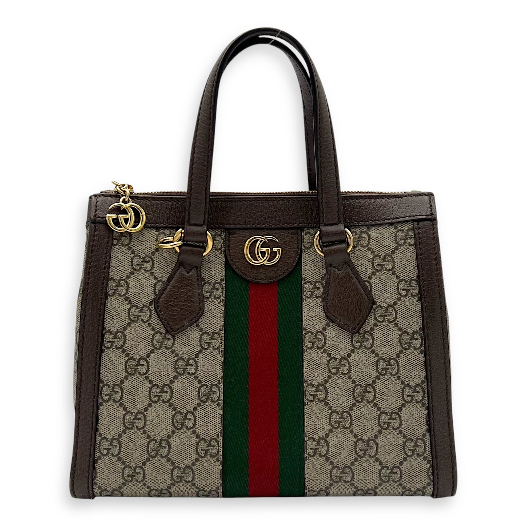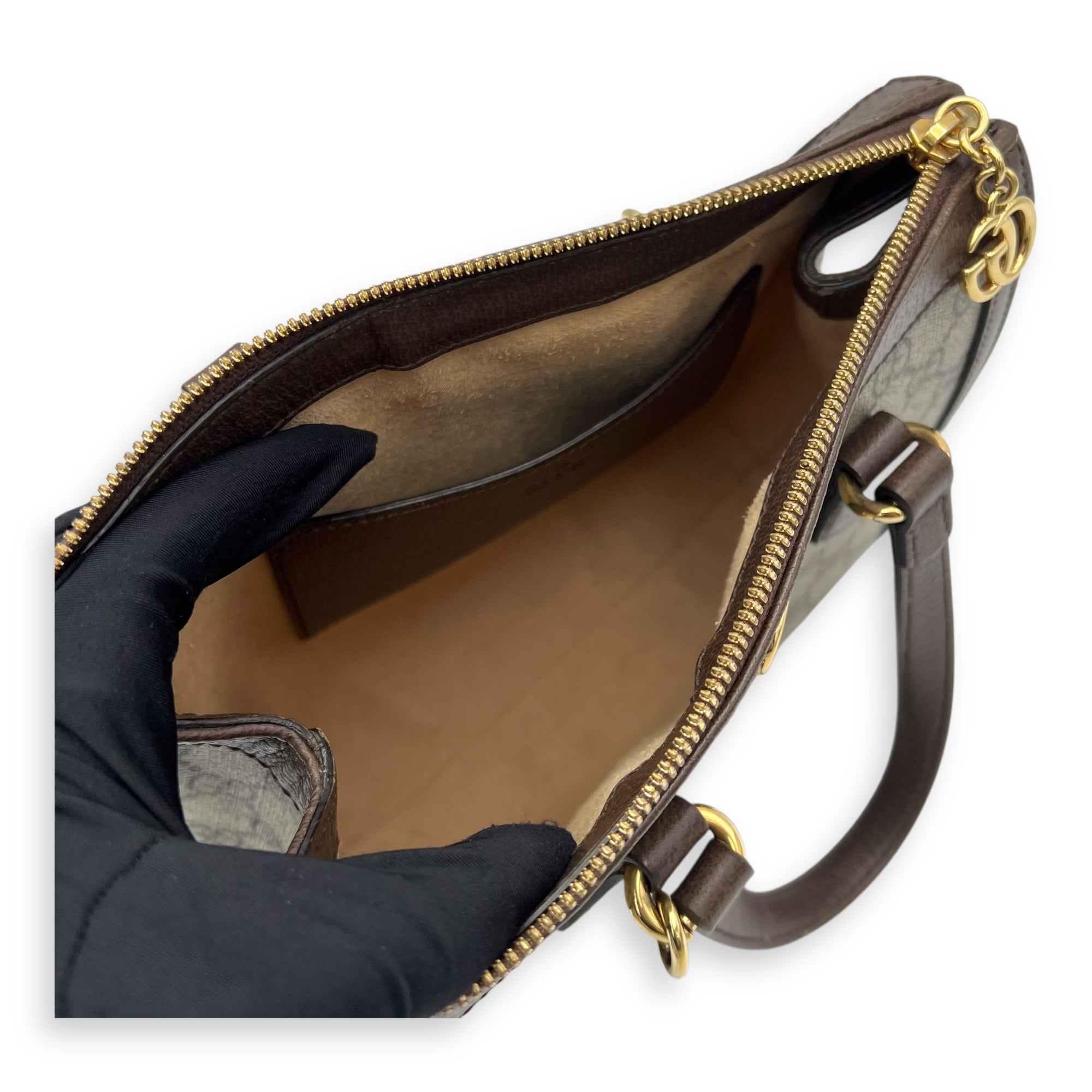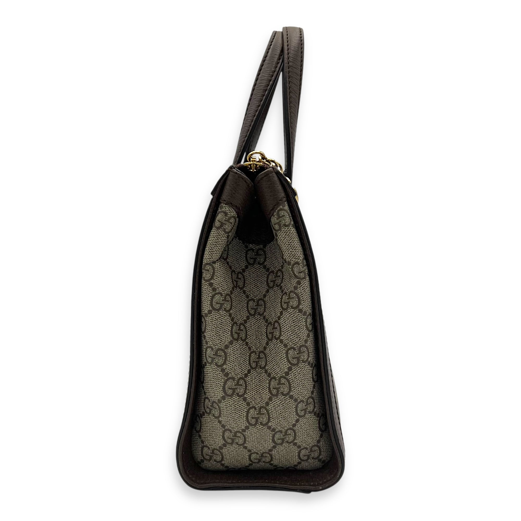 Bags Gucci Ophidia Top Handle Bag Brown in Coated Canvas, Silver hardware Good Condition Brown Top Handle Bag Women Lady Girl