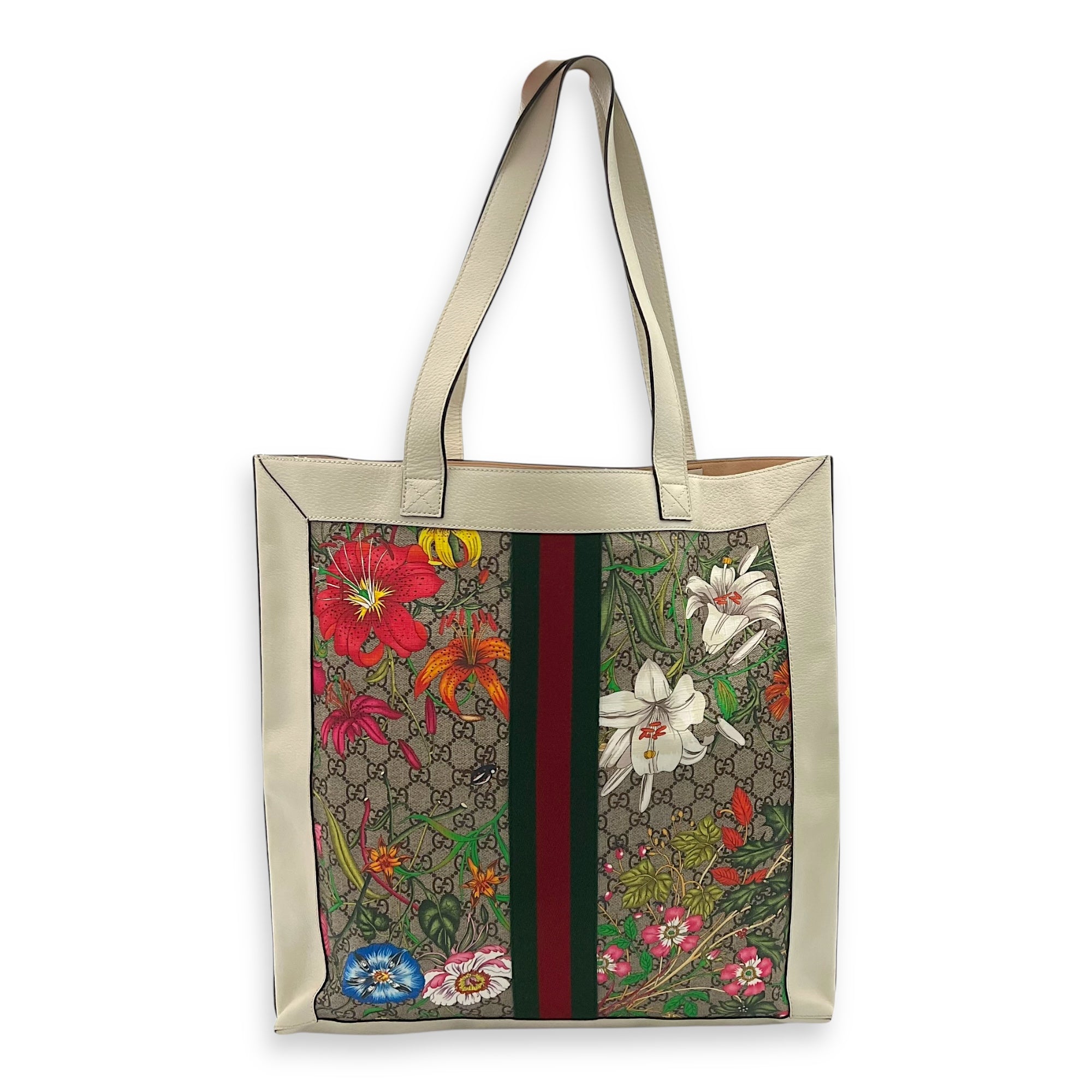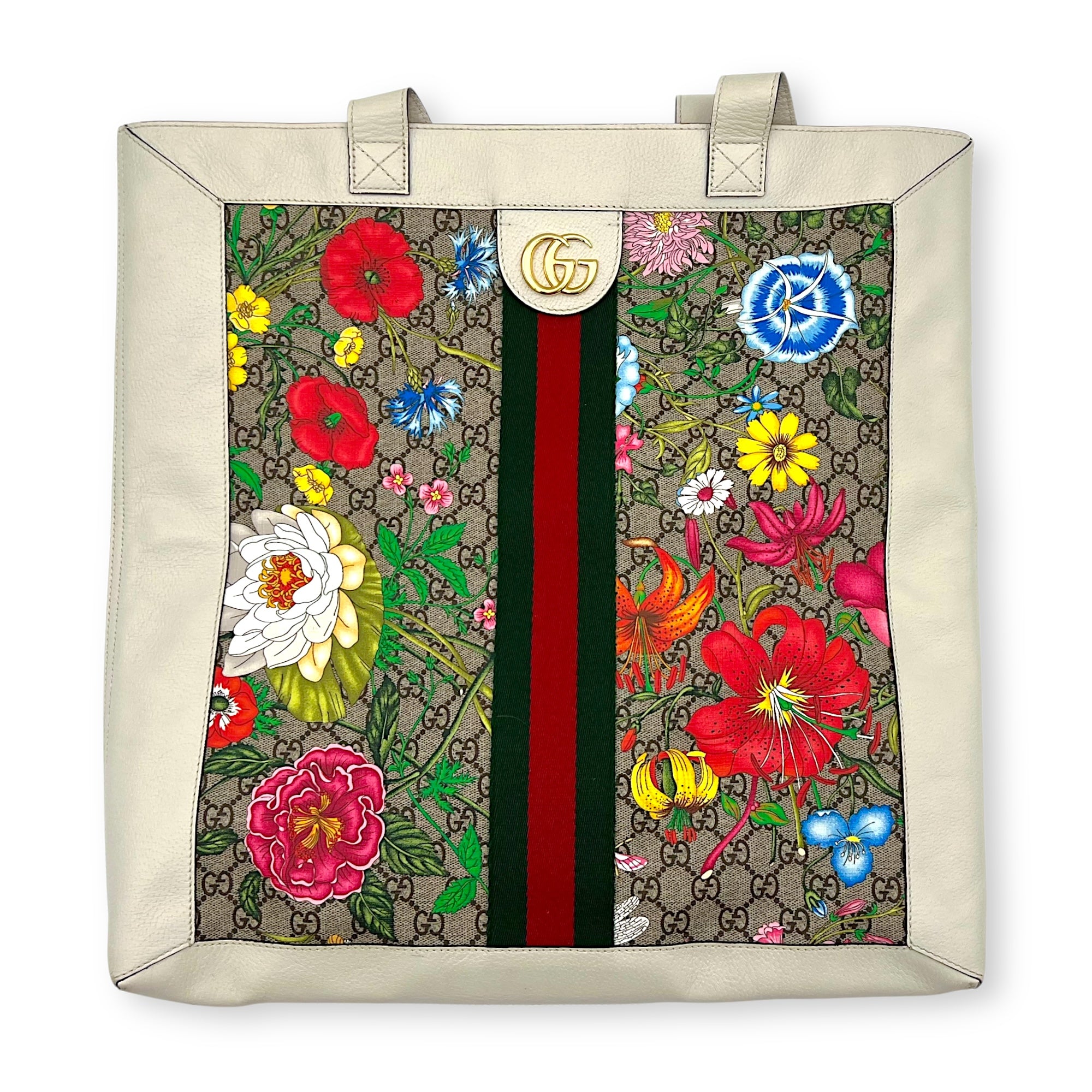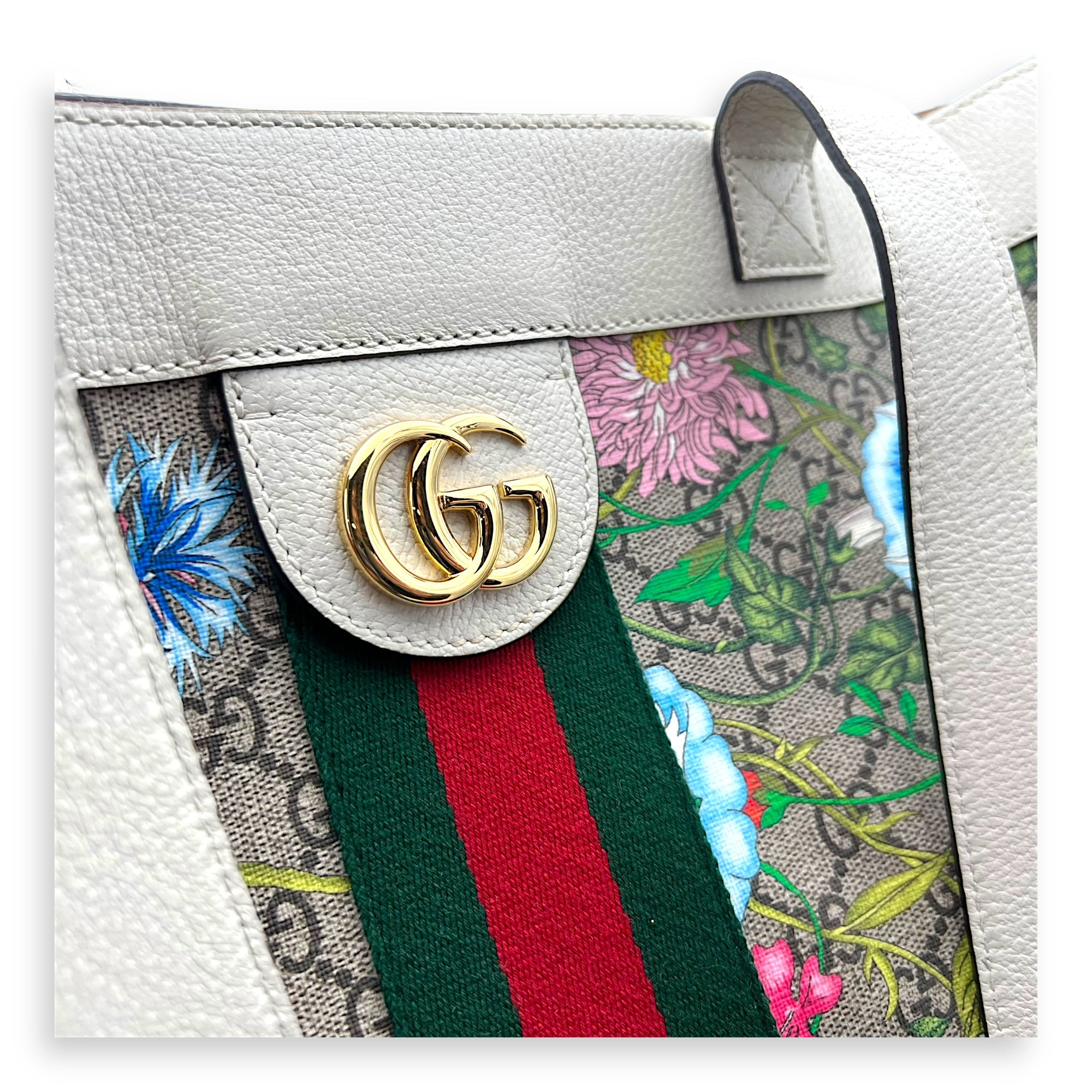 Bags Gucci Ophidia Tote Bag White in Coated Canvas, Gold hardware Very Good Condition White Tote Bag Women Lady Girl