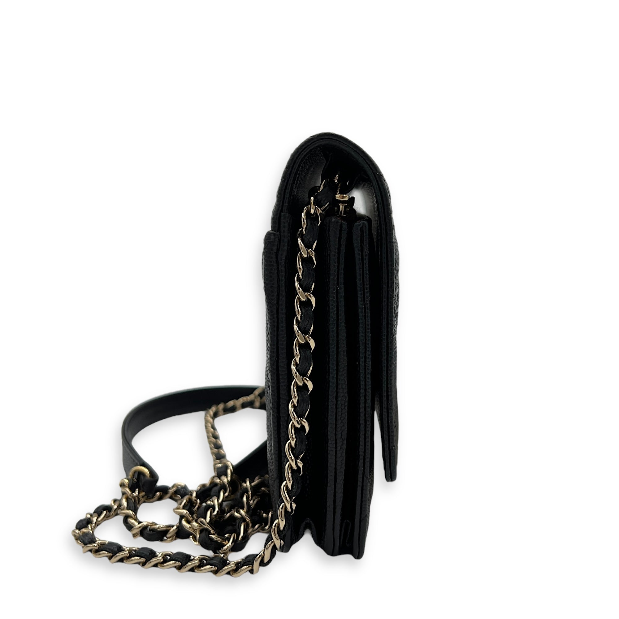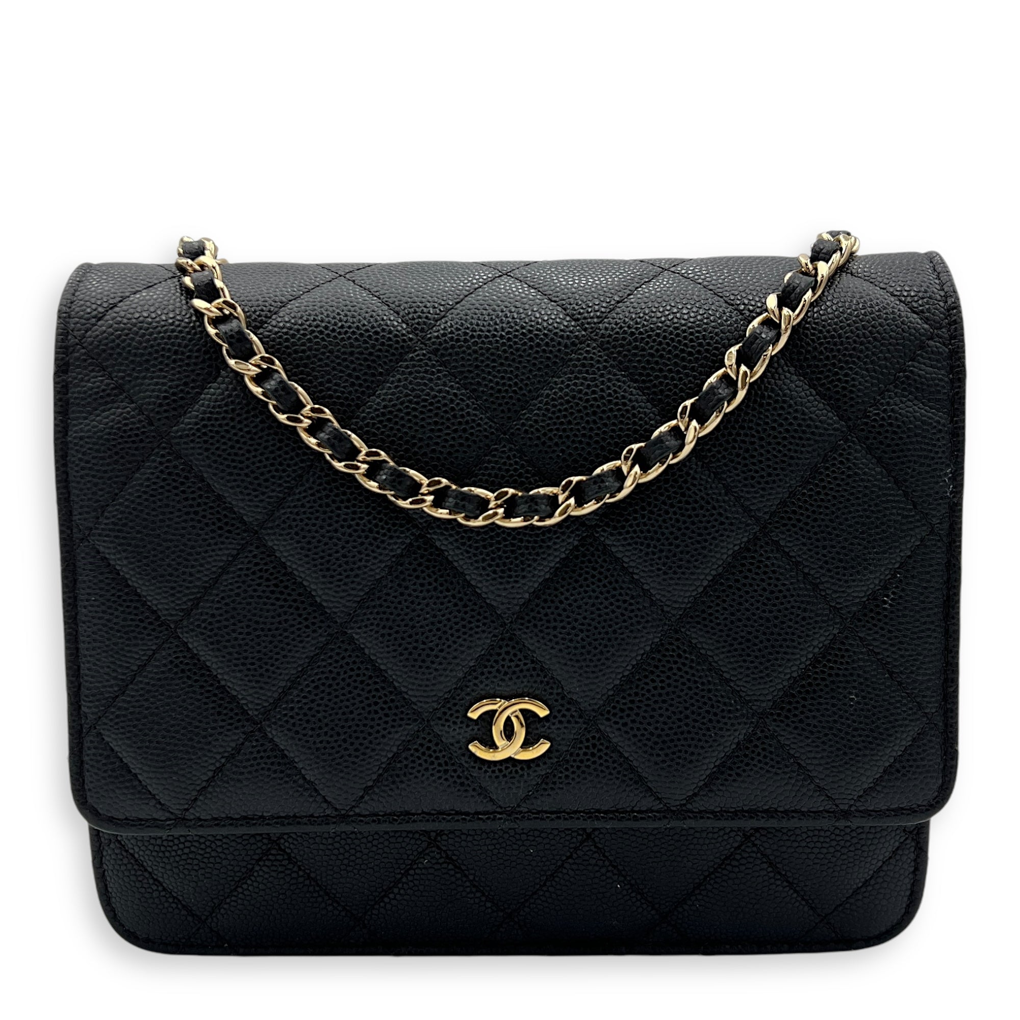 Bags Chanel Quilted Black Wallet On Chain in Caviar Leather, Gold hardware Good Condition Black Wallet On Chain Women Lady Girl