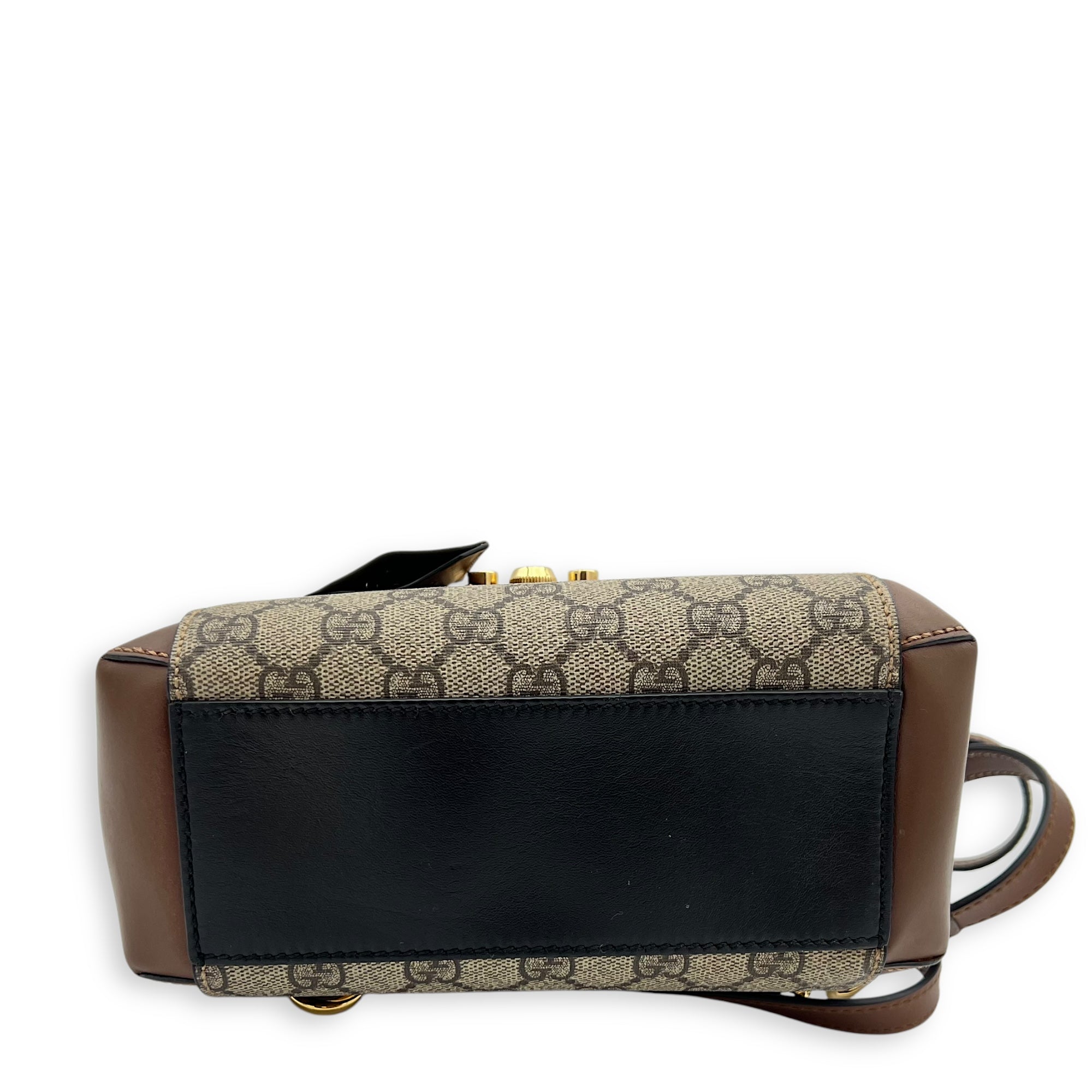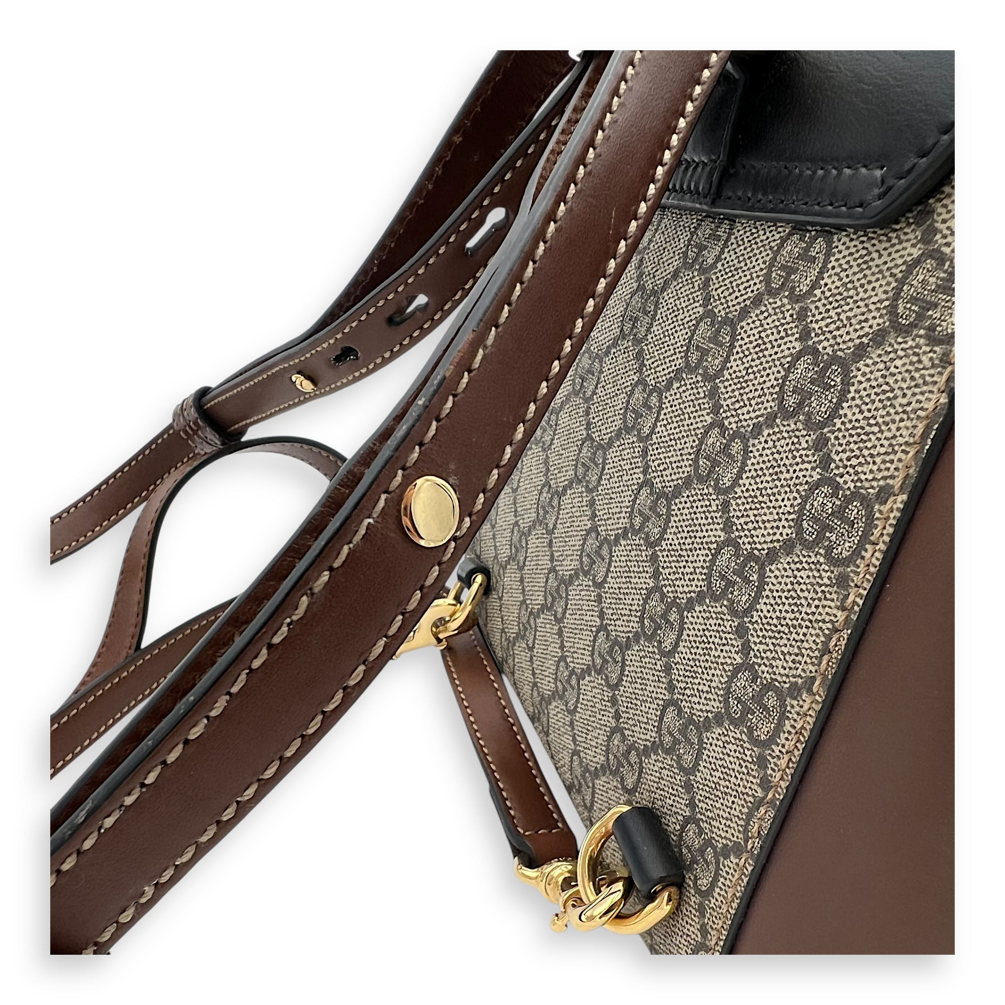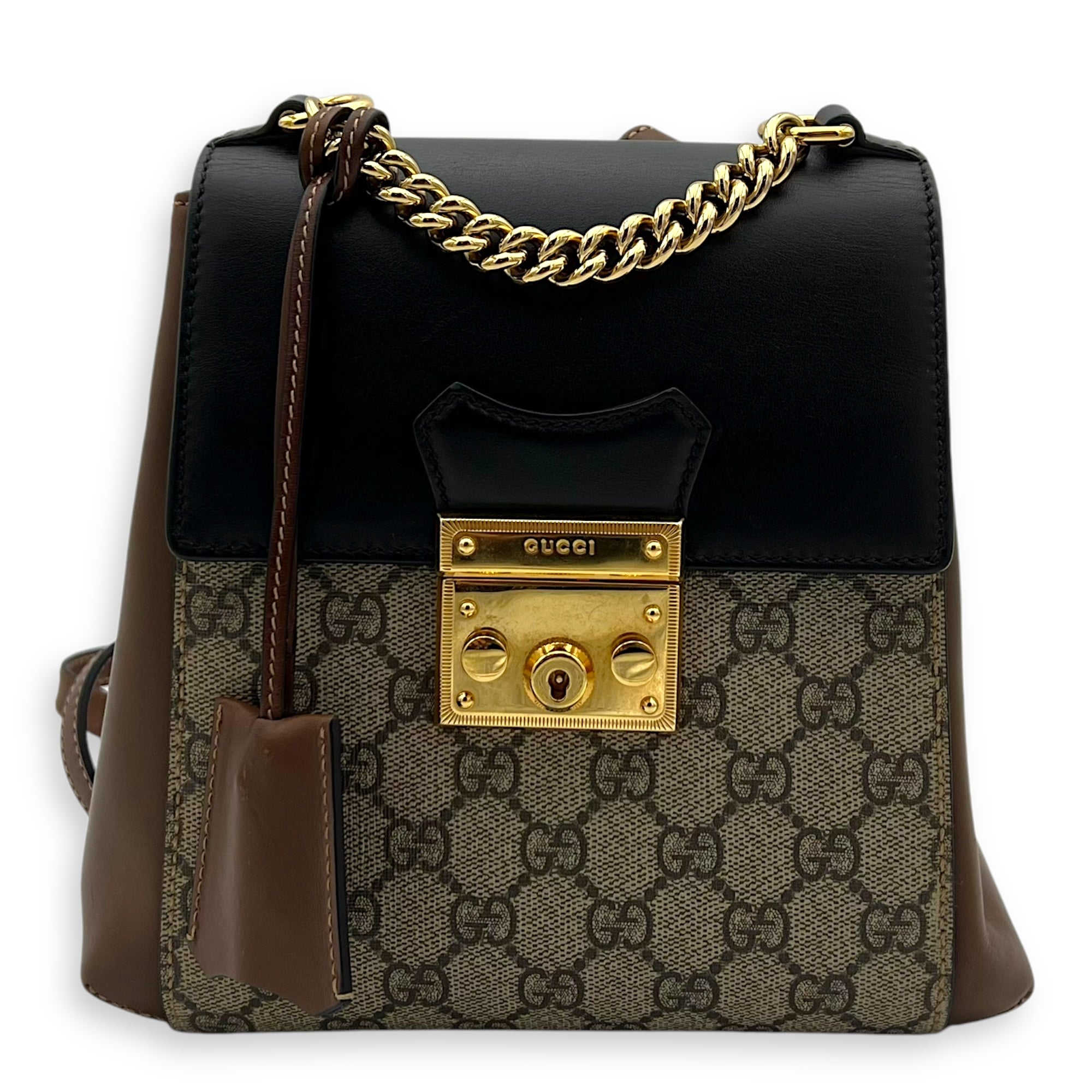 Bags Gucci Padlock Backpack Brown in Coated Canvas, Gold hardware Good Condition Brown Backpack Women Lady Girl