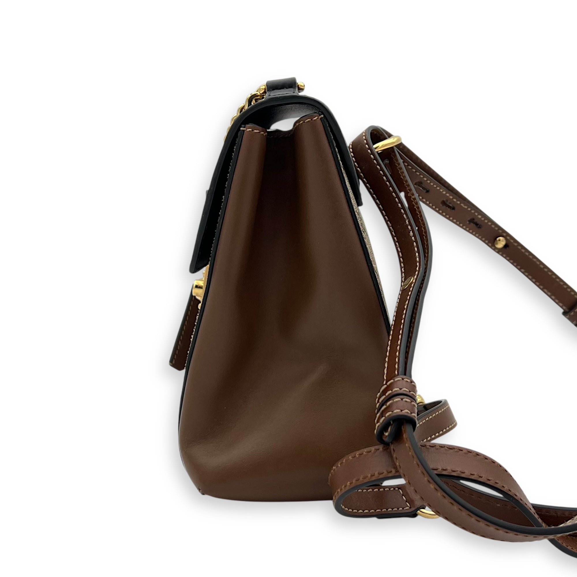 Be the first to review “Padlock Backpack Brown in Coated Canvas, Gold hardware”