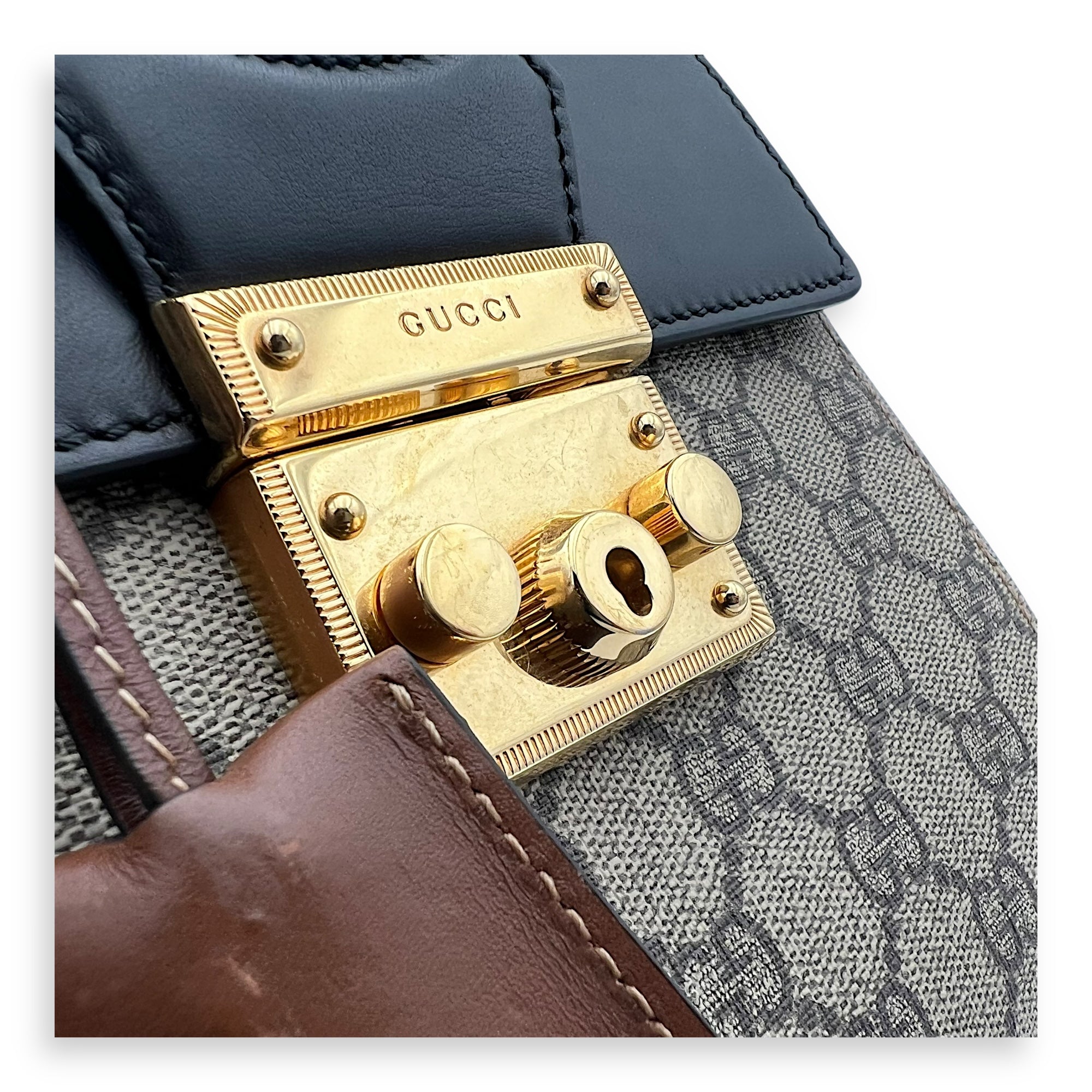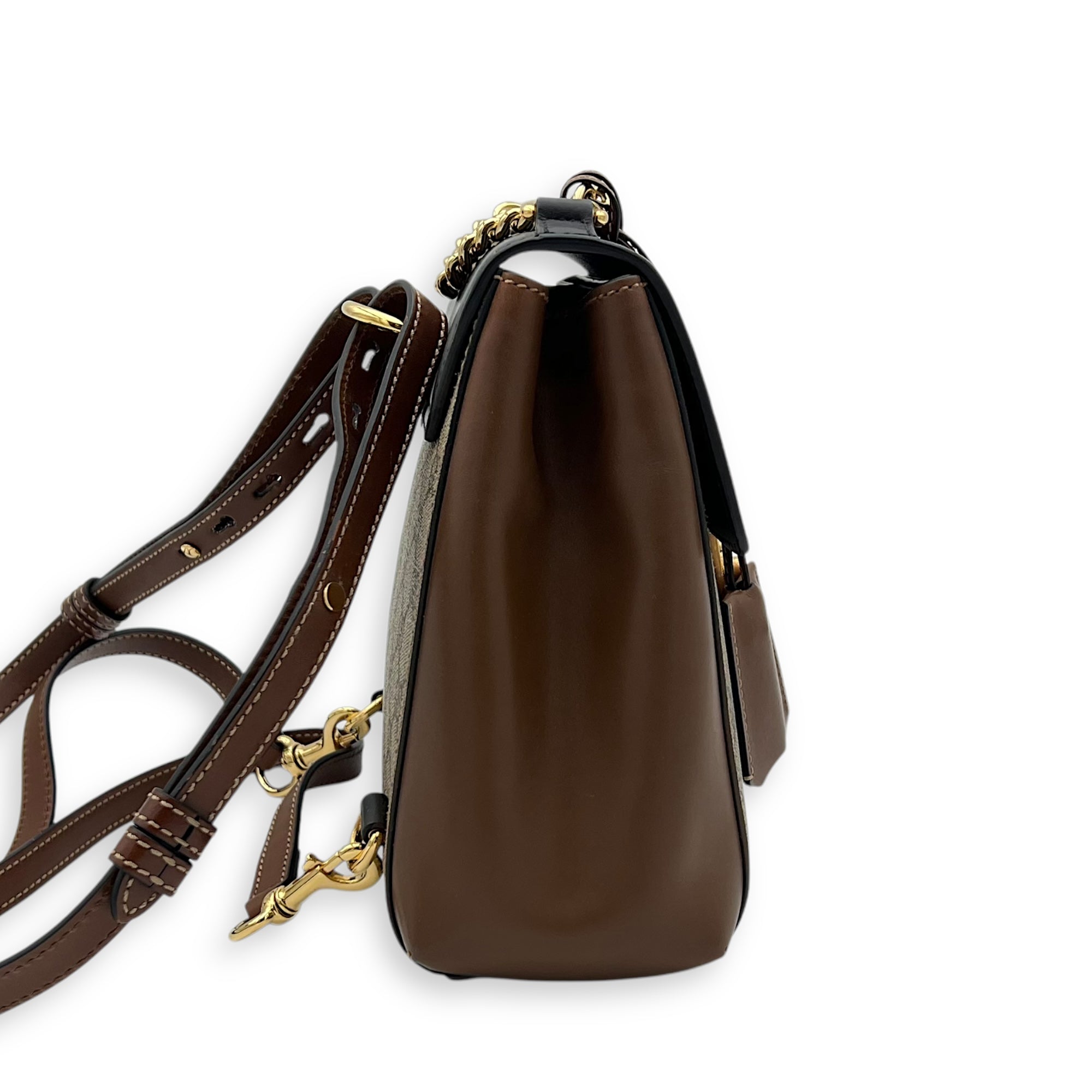 Padlock Backpack Brown in Coated Canvas, Gold hardware