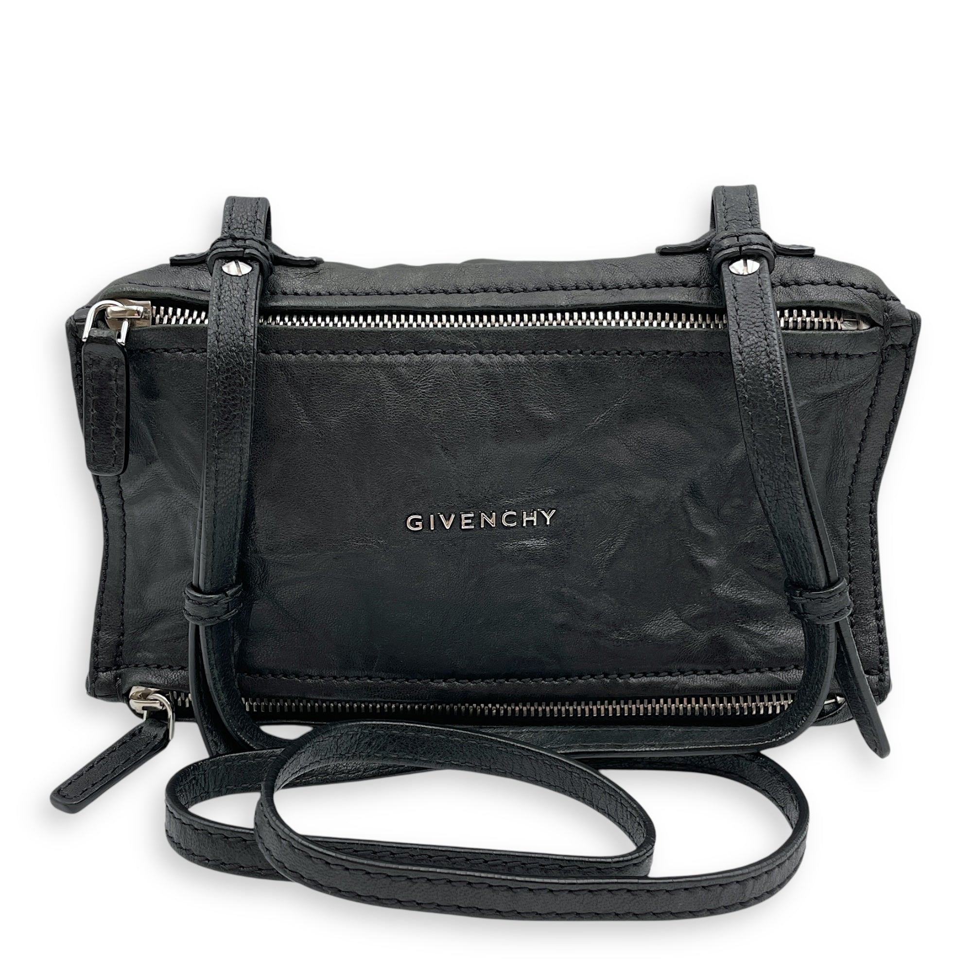 Givenchy Pandora 24x12x9cm Black Crossbody Bag in Crinkled Calfskin, Silver hardware Bags Crossbody Bag Black Good Condition