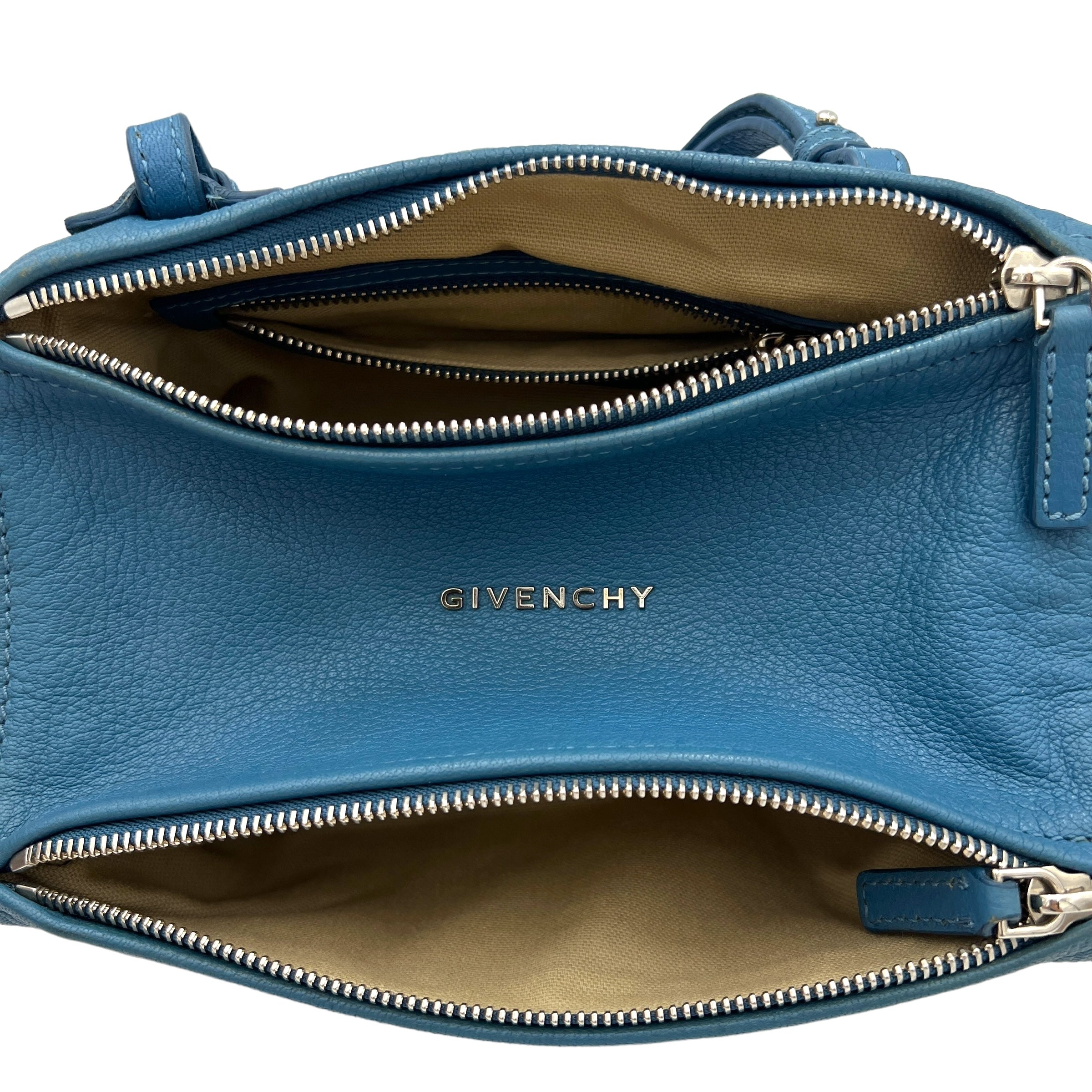 Bags Givenchy Pandora Crossbody Bag Mini Blue in Calfskin , Silver Hardware Good Condition Blue Crossbody Bag Women Lady Girl