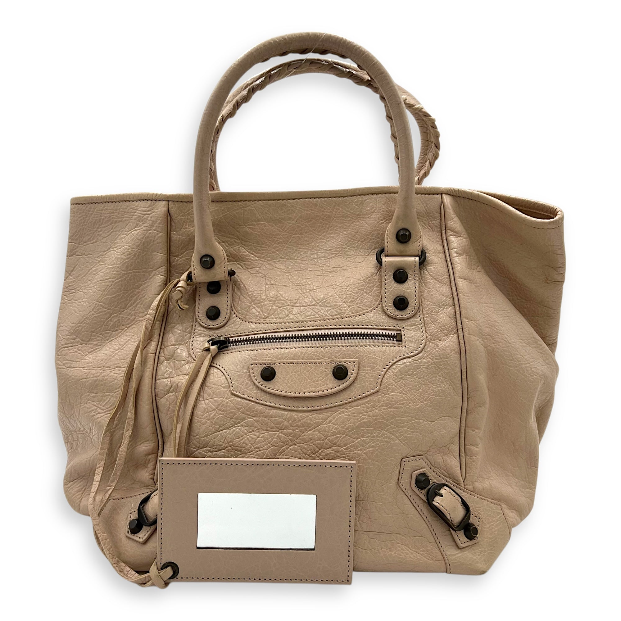 Bags Balenciaga Sunday Beige Top Handle Bag in Goat Leather, Ruthenium-finish Brass hardware Good Condition Beige Top Handle Bag Women Lady Girl