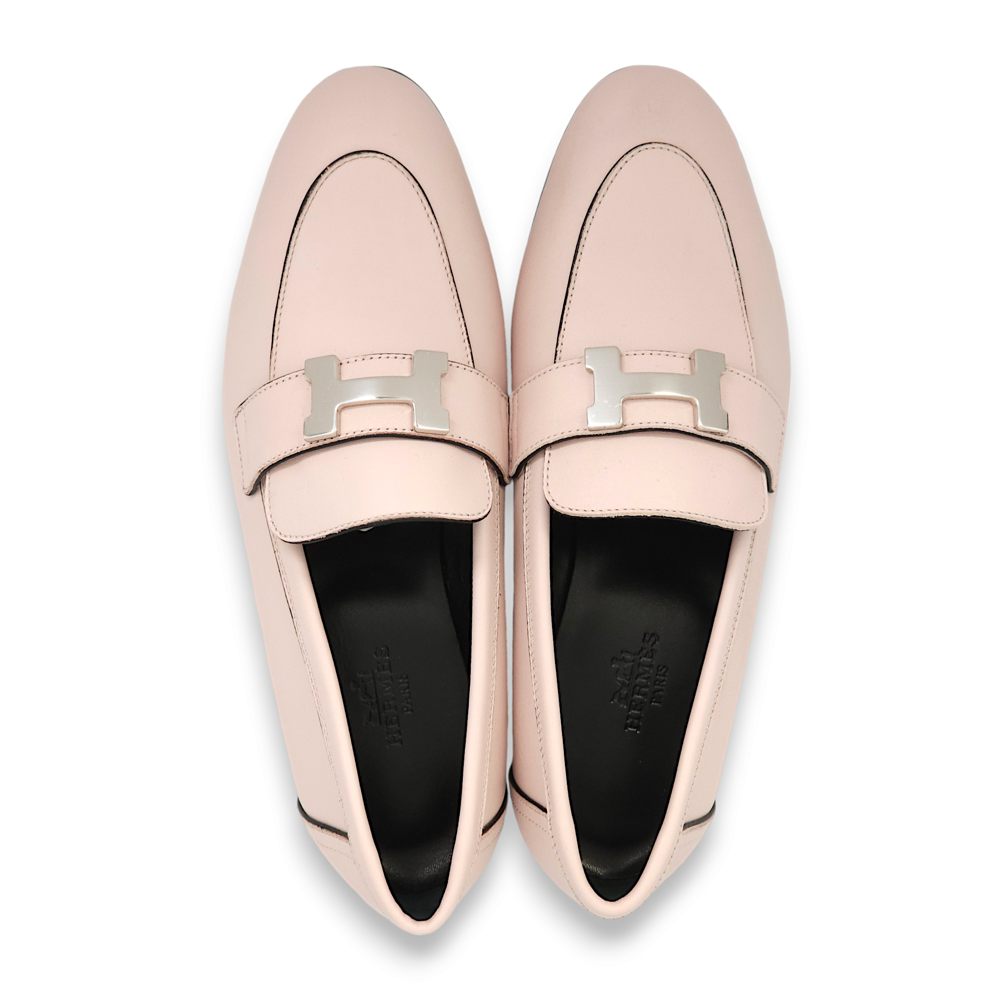 Herm?s Paris Loafer 35 Rose Petale Loafers in Calfskin, Palladium hardware Shoes Loafers Pink Brand New MEN UNISEX