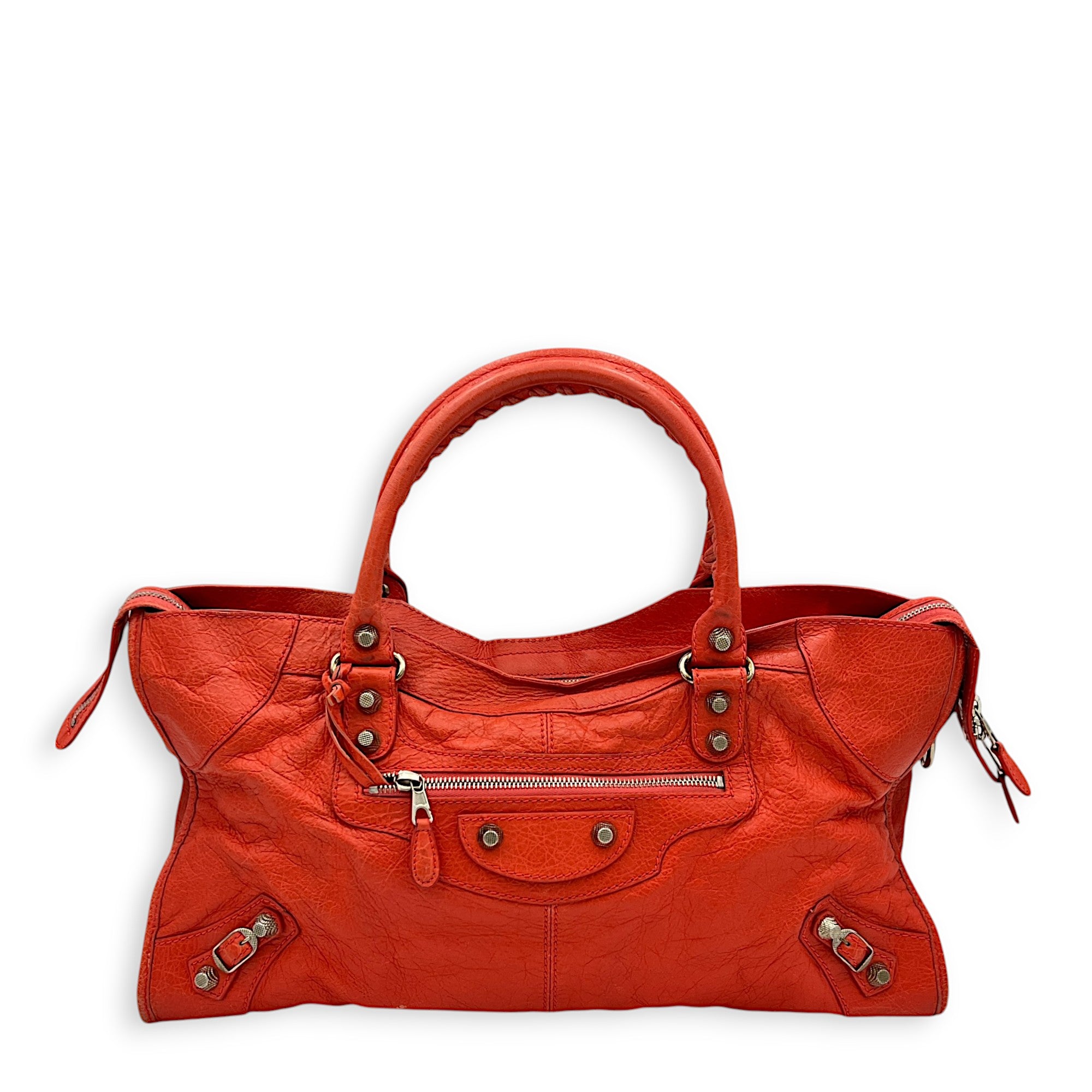 Bags Balenciaga Part Time Shoulder Bag Orange in Distressed Leather, Silver hardware Good Condition Orange Shoulder Bag Women Lady Girl