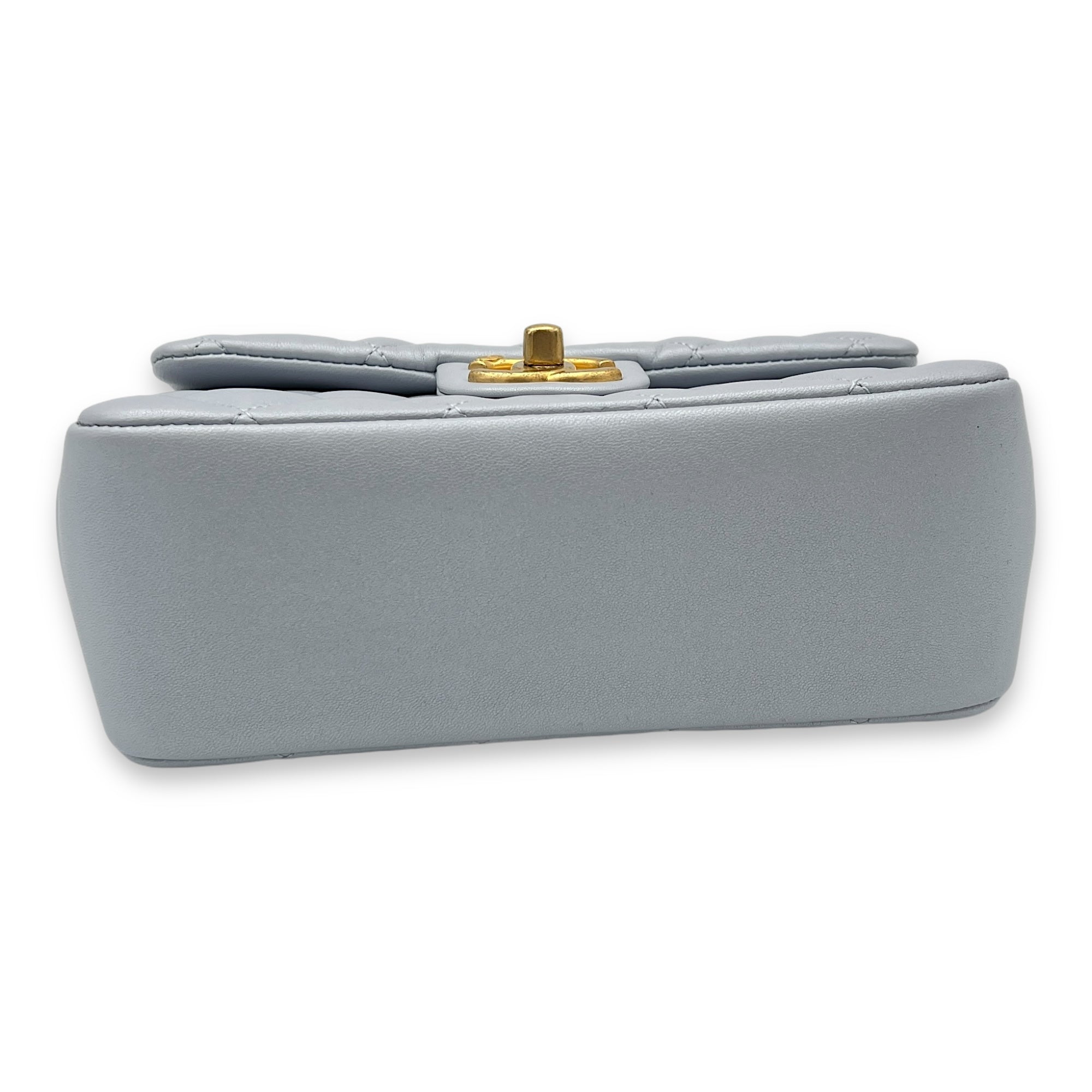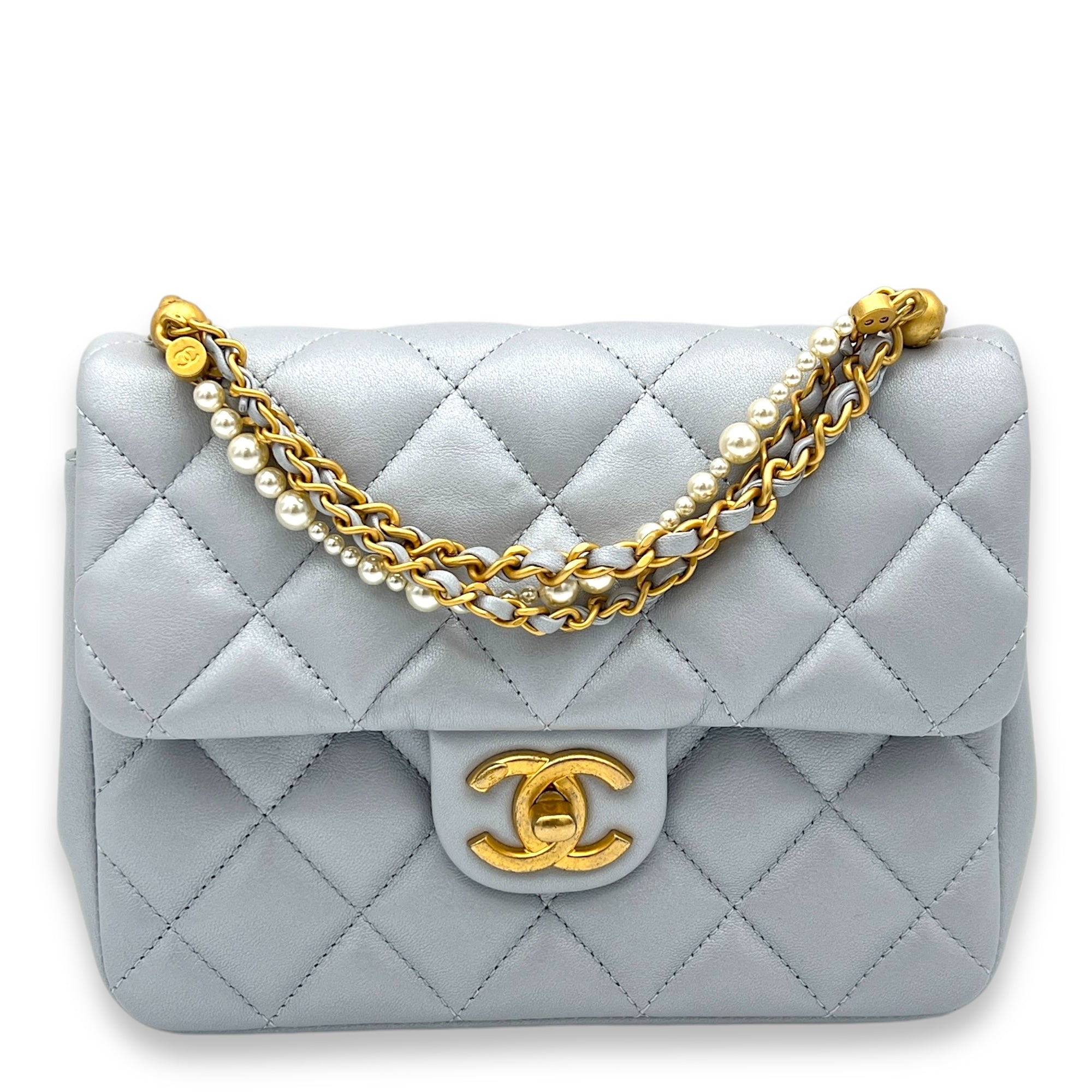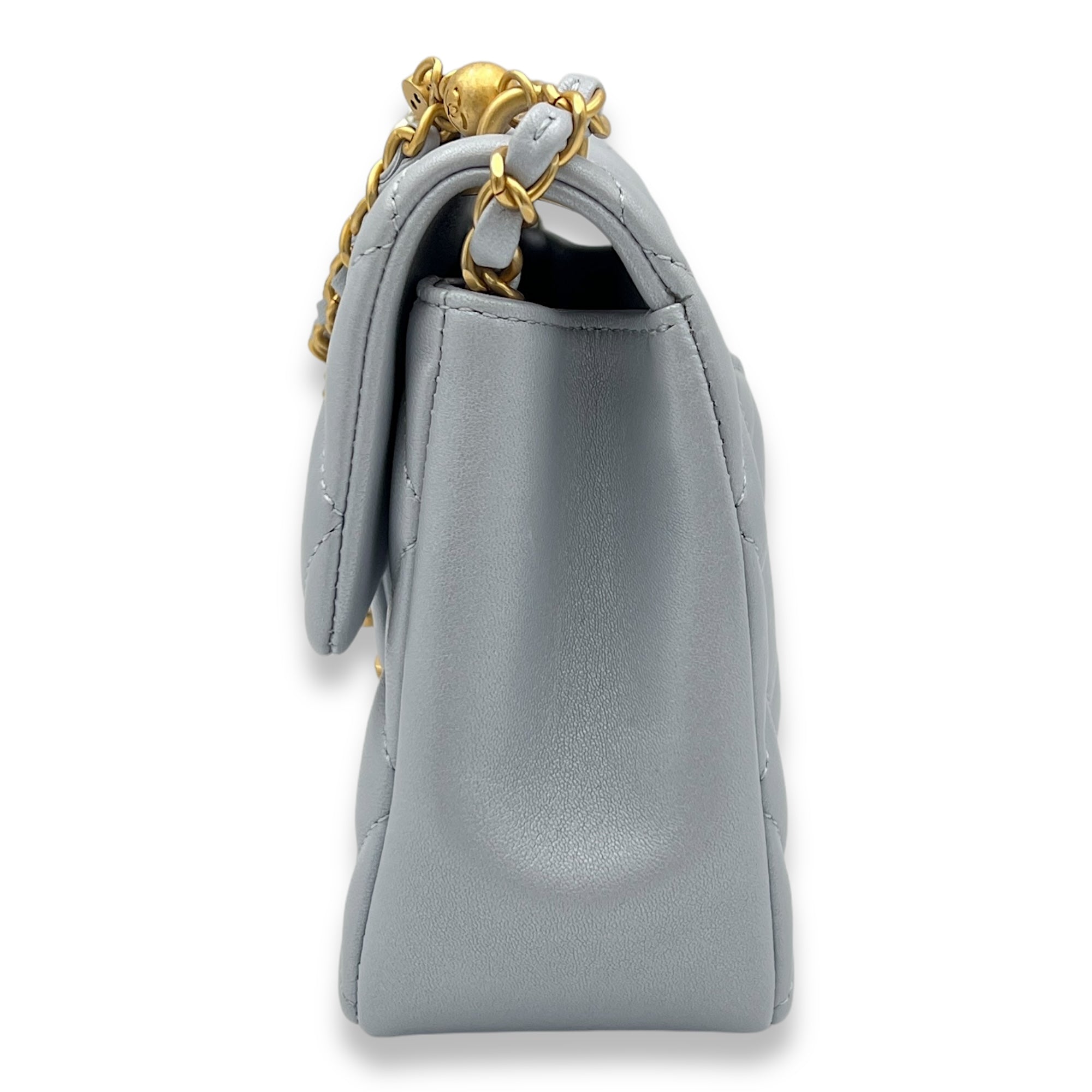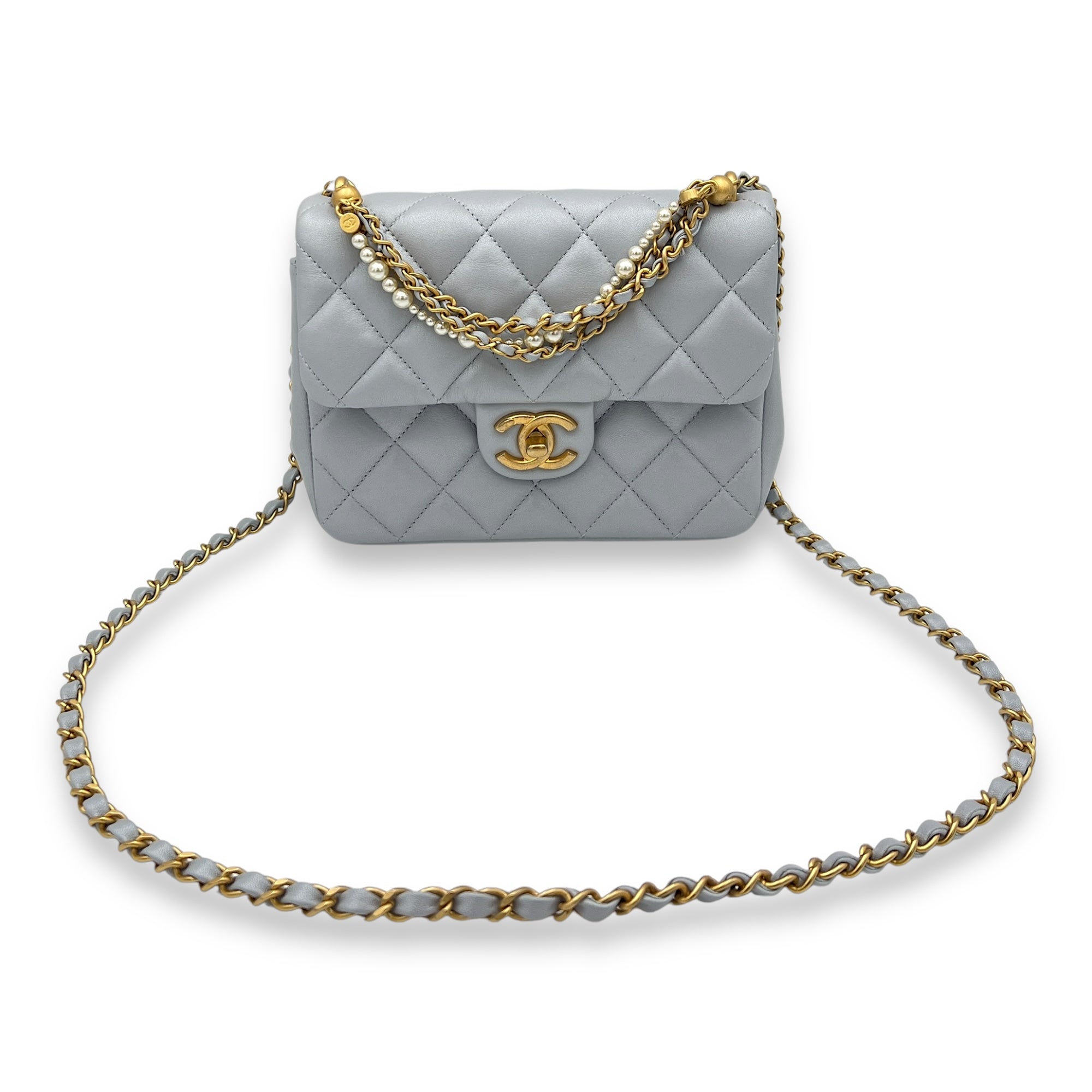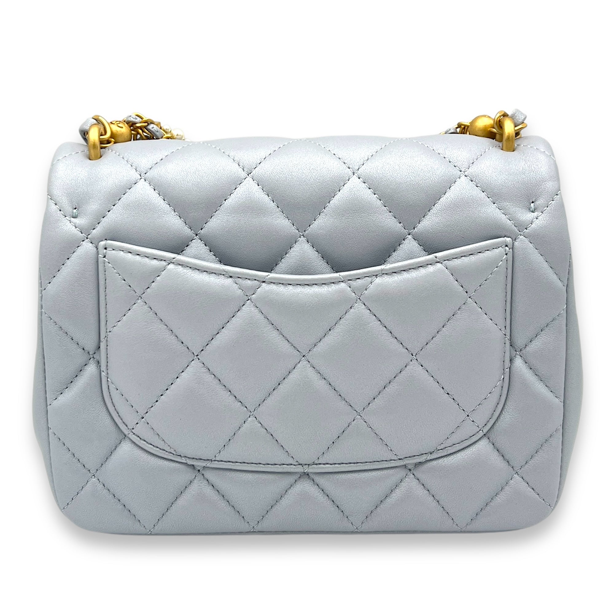 Quilted Pearl Twist Square Mini Grey Crossbody Bag in Lambskin, Gold hardware