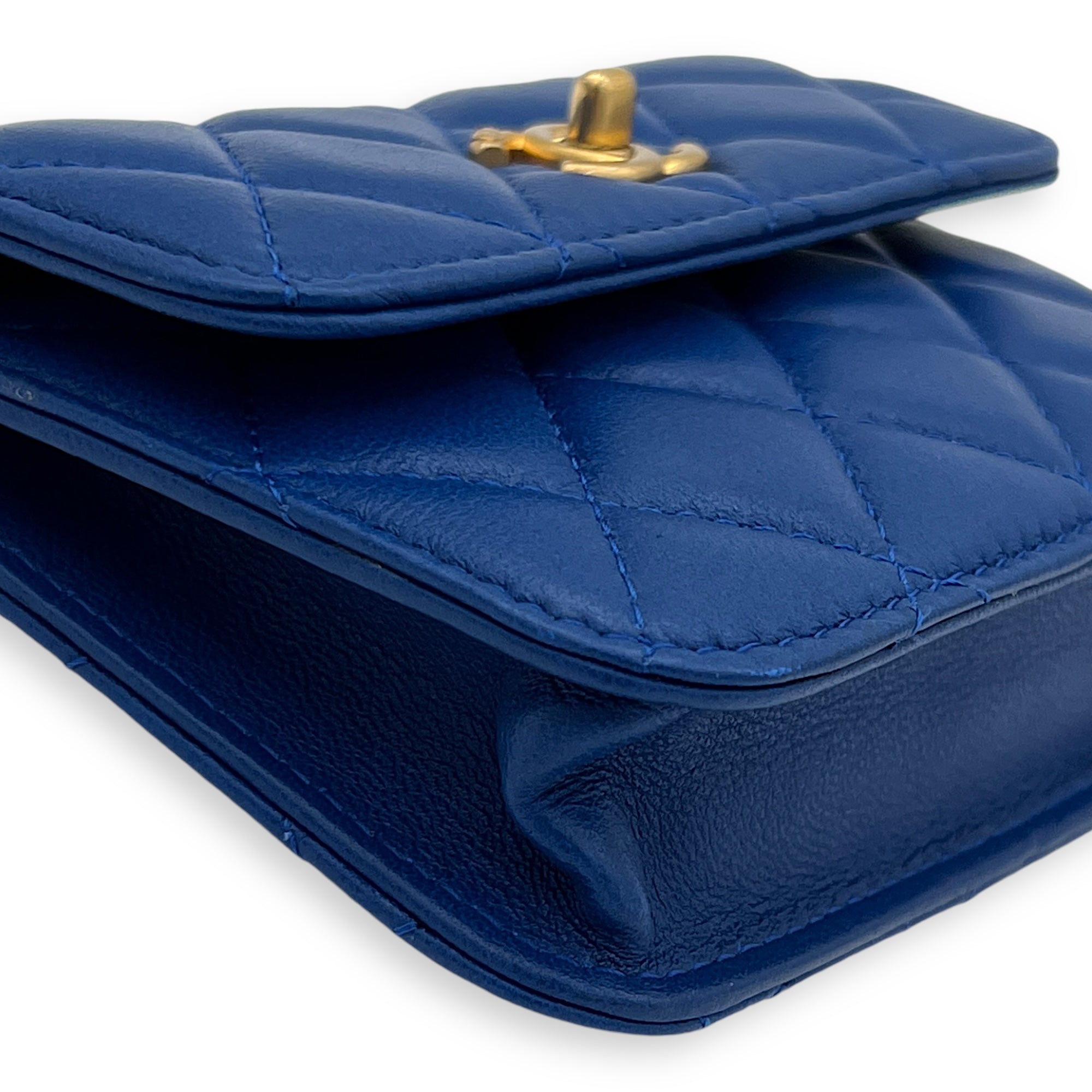 Small Leather Goods Chanel Pearl Crush Mini Blue Wallet On Chain in Calfskin, Gold hardware Very Good Condition Blue Wallet On Chain Women Lady Girl