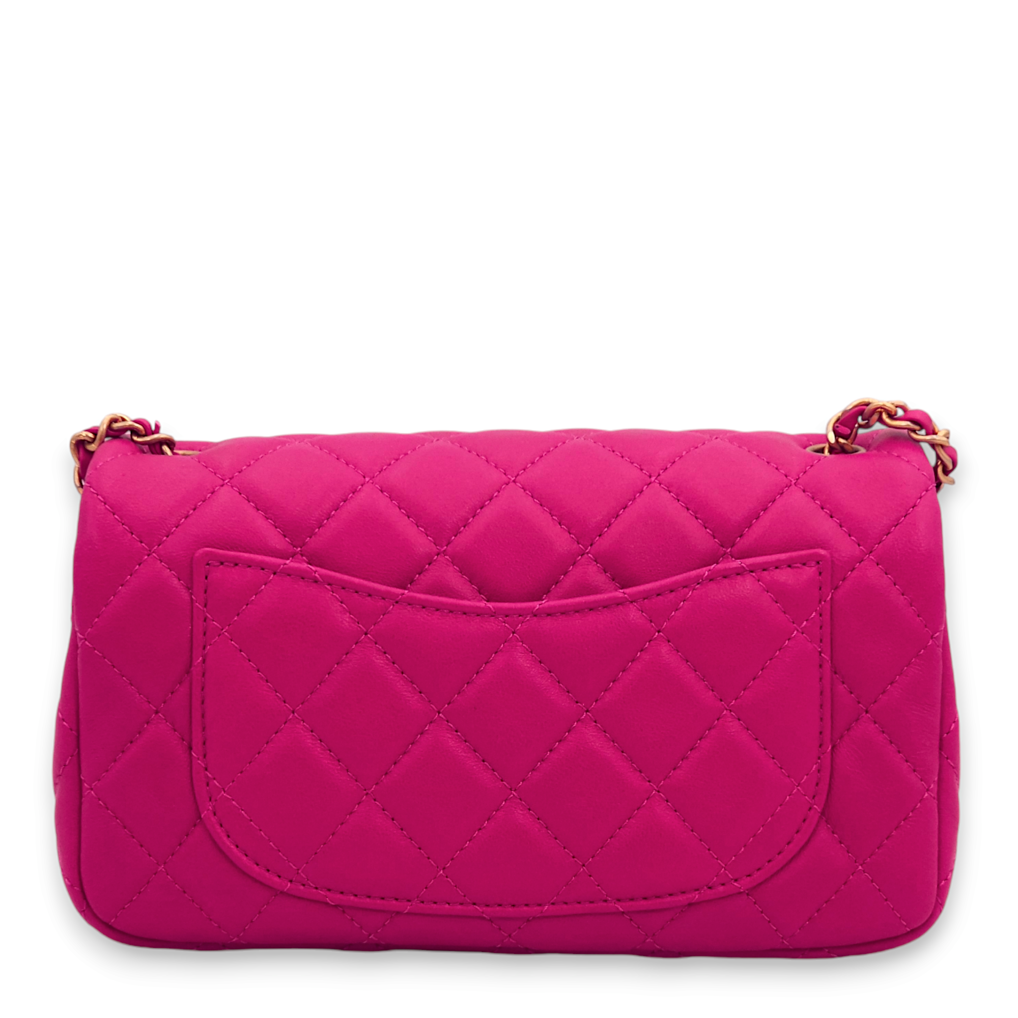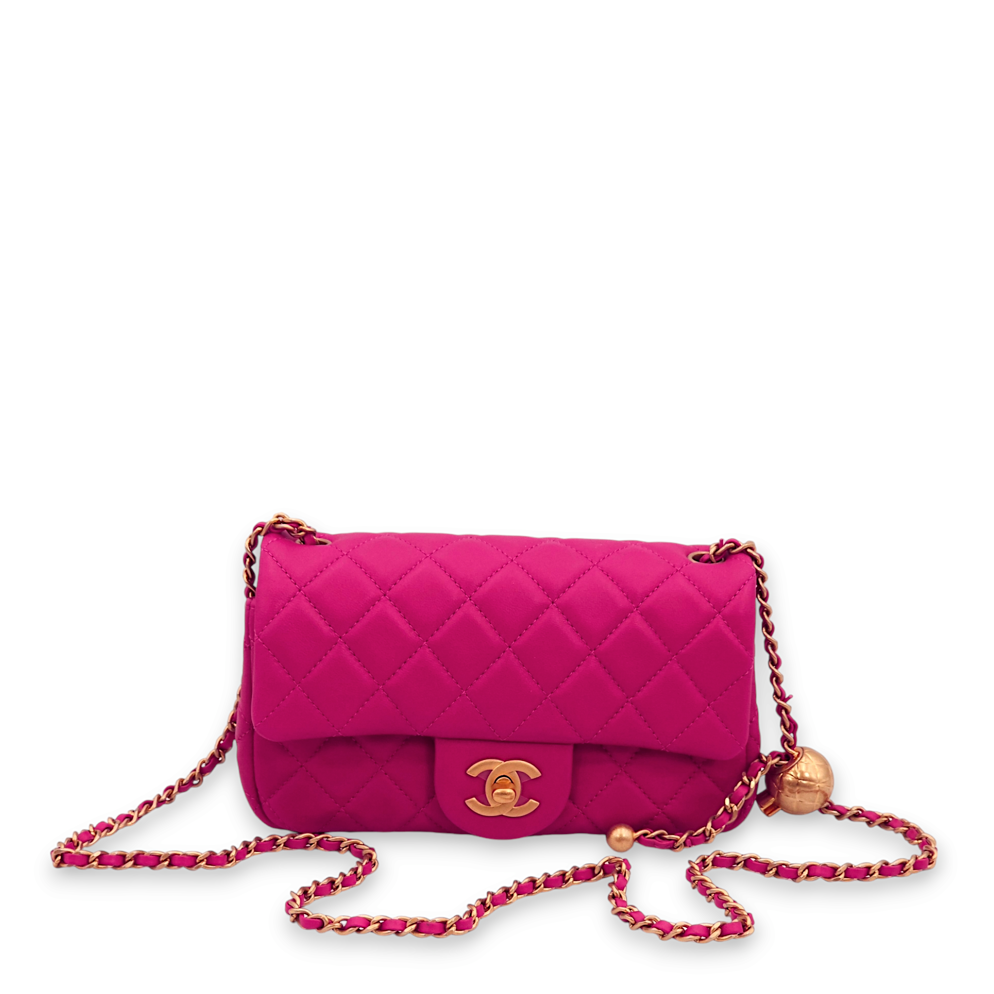 Pearl Crush Rectangle Mini Magenta Pink Crossbody Bag in Lambskin, Gold hardware