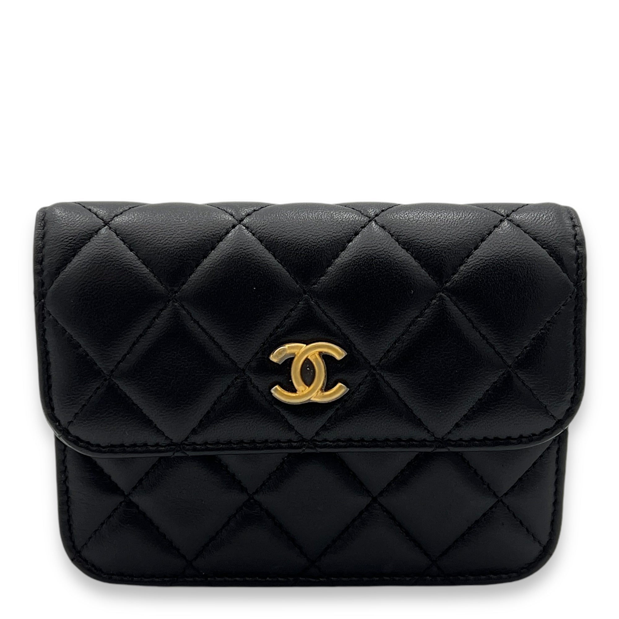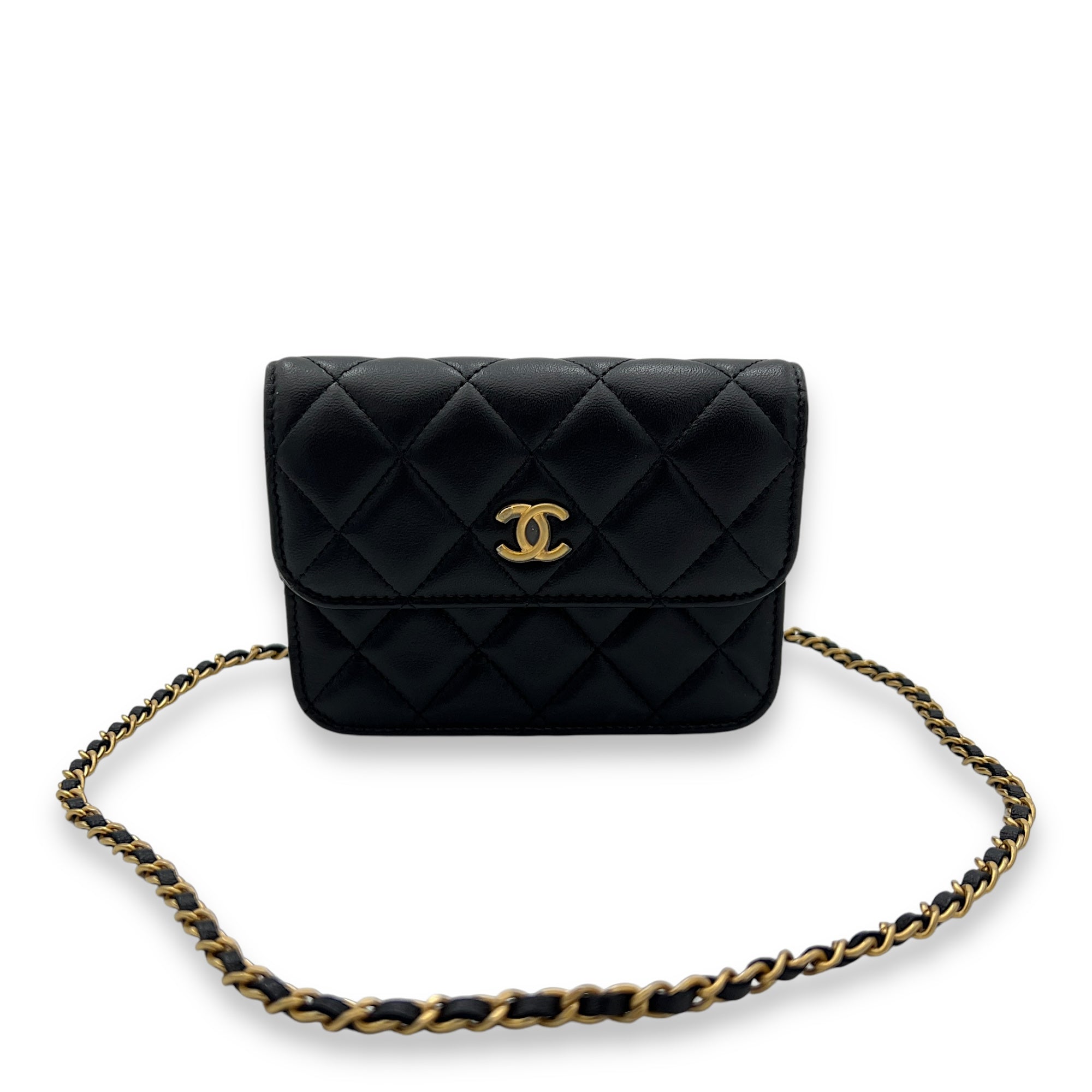 Bags Chanel Pearl Crush Wallet On Chain Black in Lambskin, Gold hardware Very Good Condition Black Wallet On Chain Women Lady Girl