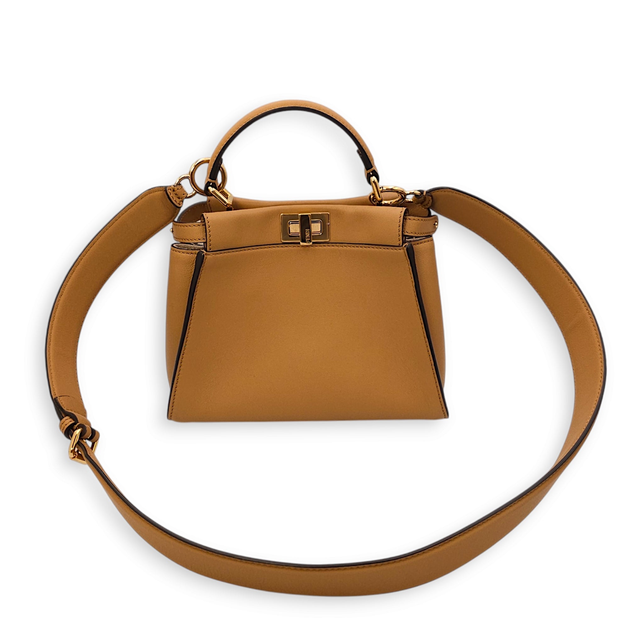 Fendi Peekaboo ISeeU Mini Dark Honey Crossbody Bag in Calfskin, Gold hardware Bags Crossbody Bag Dark Honey Brown Good condition