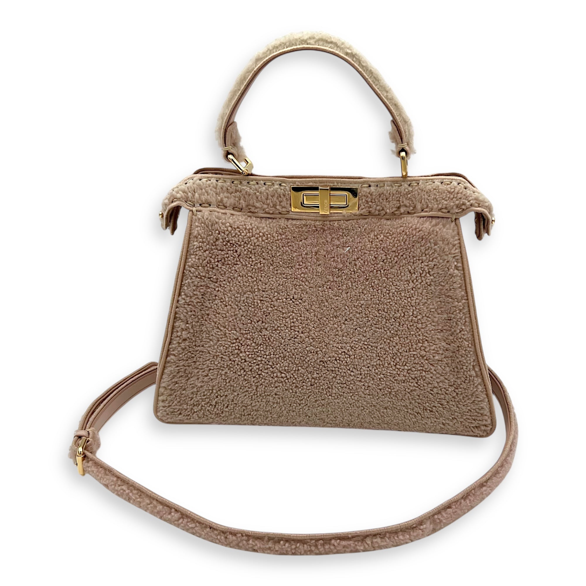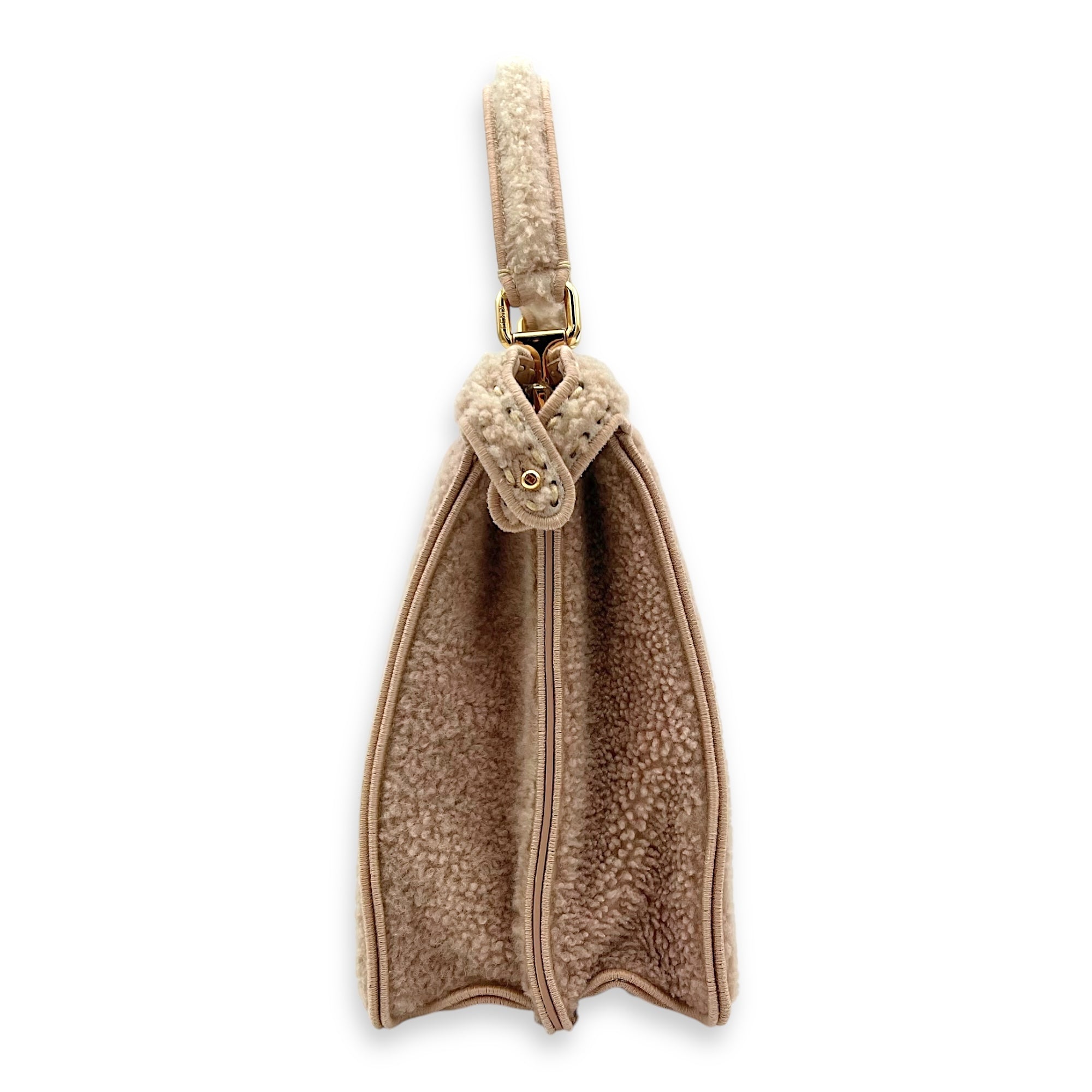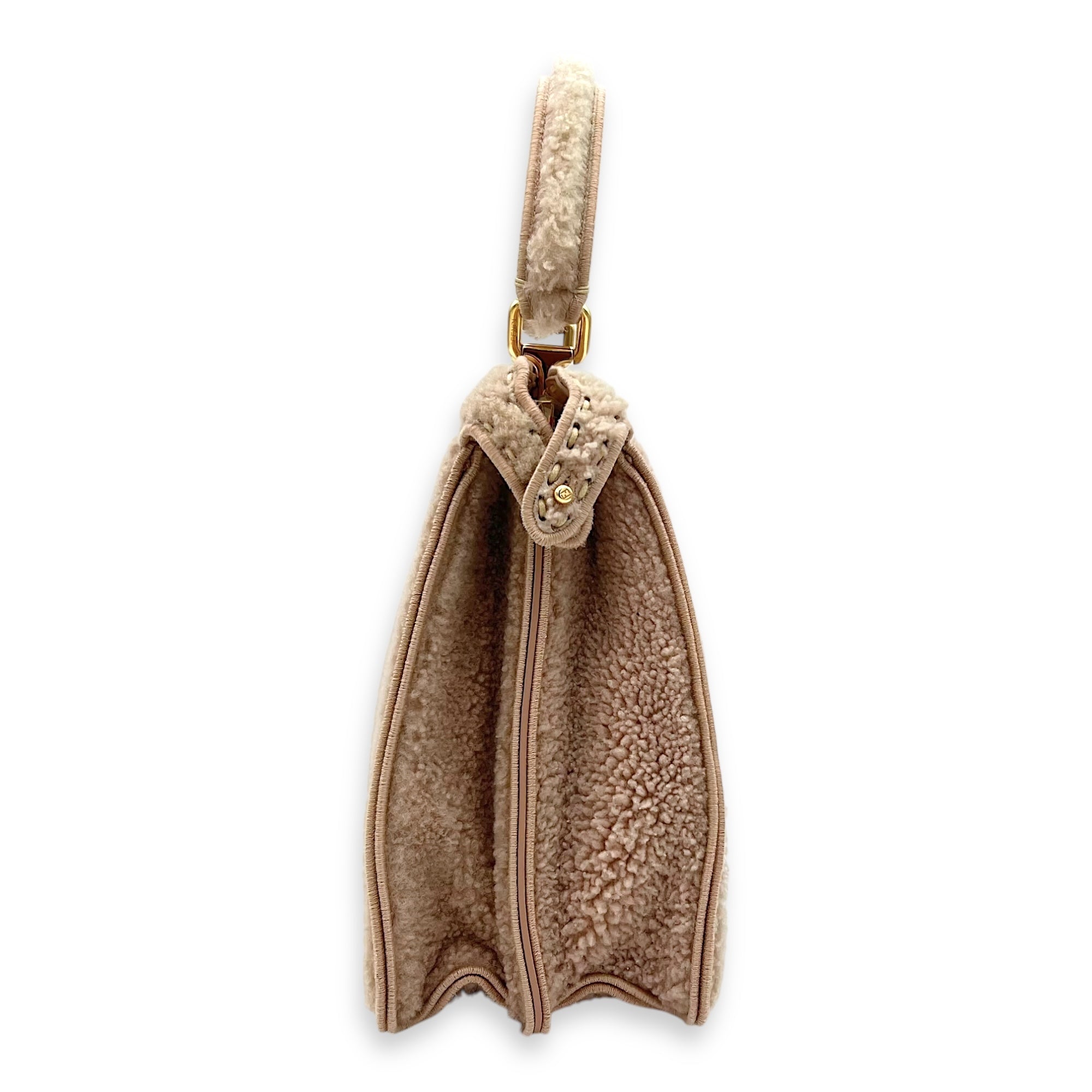 Bags Fendi Peekaboo Beige Top Handle Bag in Shearling, Gold hardware Very Good Condition Beige Top Handle Bag Women Lady Girl